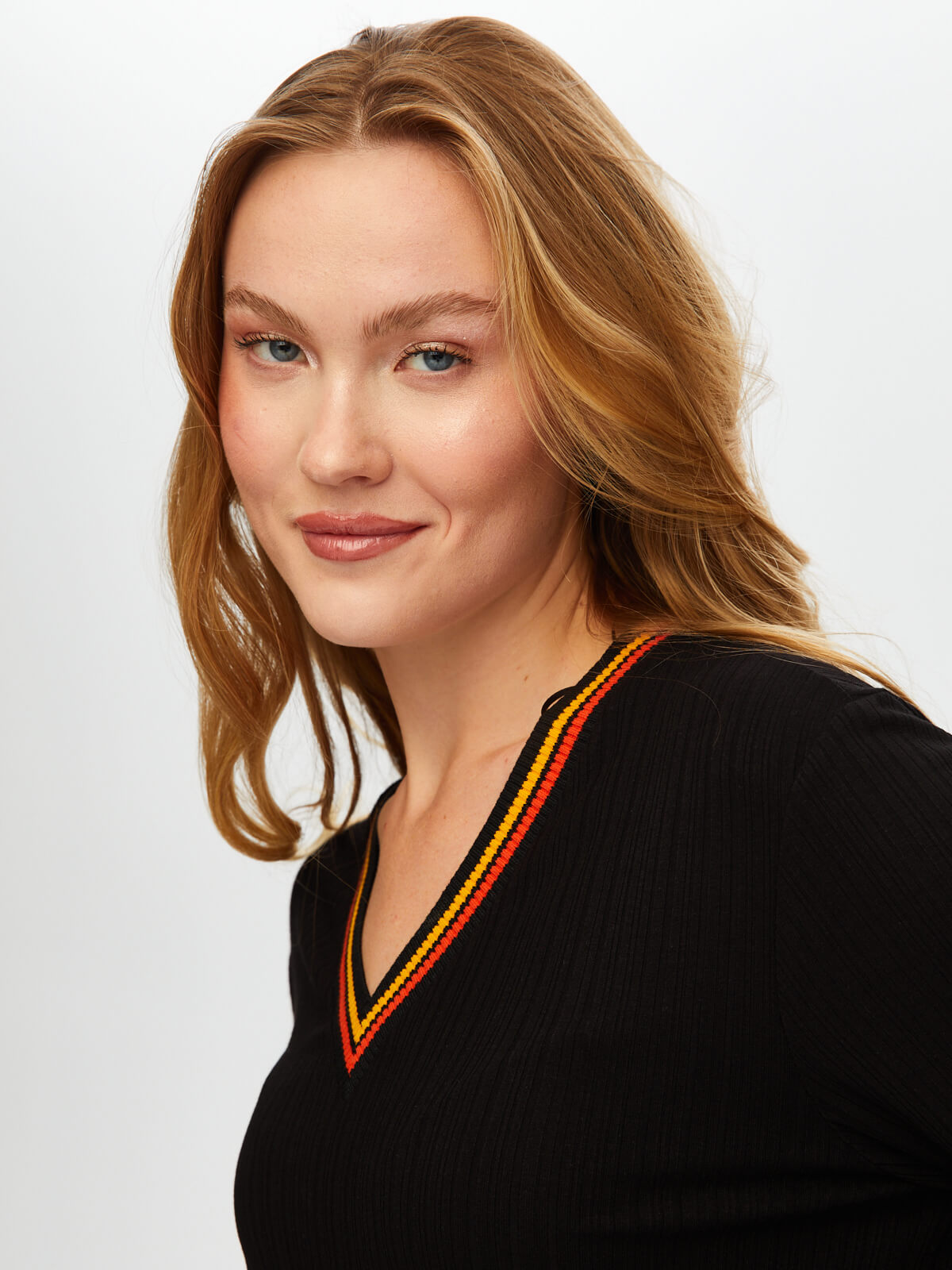 Ürün Adı : Çizgili Triko Yakalı Uzun Kol Kaşkorse Bluz S25BLZ023