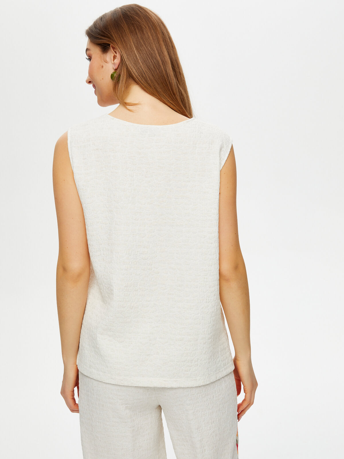 Yakası Renkli Nakışlı Kendinden Dokulu Kolsuz Bluz Faik Sönmez%54 Polyester %35 Viskon %8 Keten %3 Elastan