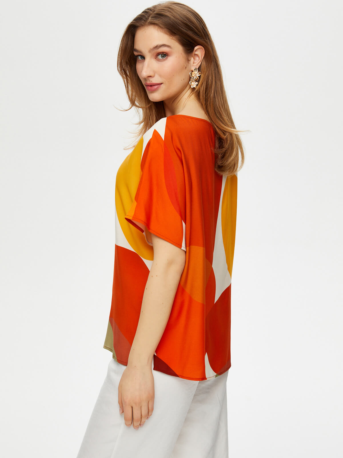 Faik Sönmez Kadın Geometrik Soyut Desen Viskon Bluz 25YUS25BLZ039%100 Viskon