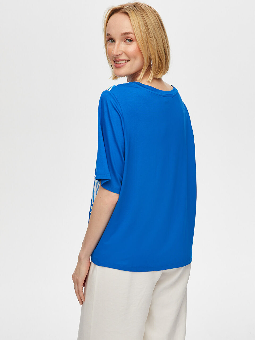 Ürün Adı : Arkası Örme Soyut Desen V Yaka Bluz S25BLZ040%96 Viskon %4 Elastan