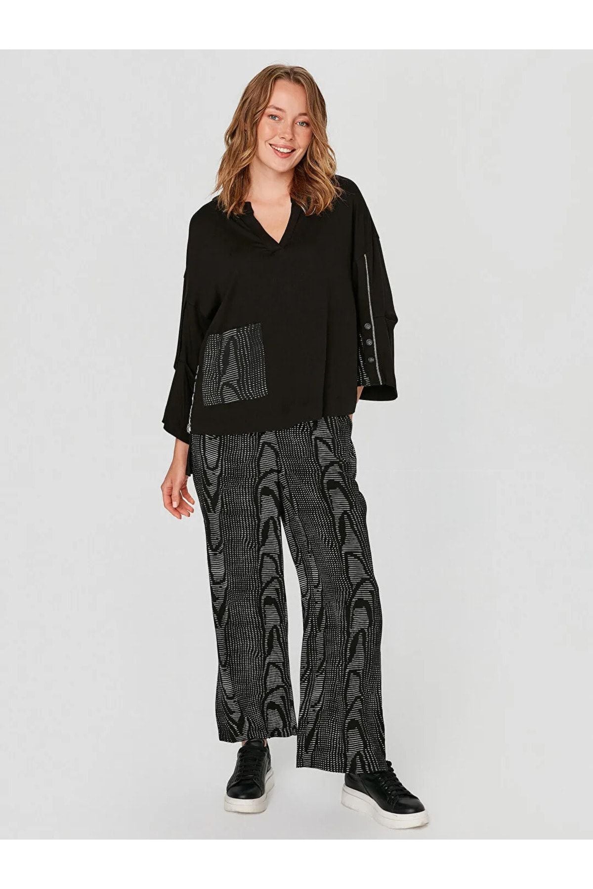 Manken Ölçüsü : Kilo : 52 kg / Boy : 1.73 cm / Göğüs : 86 cm / Bel : 65 cm / Basen : 92 cm / Beden : S; Kumaş İçeriği:%35 Pamuk %35 Viskon %20 Polyester %5 Likra %5 Naylon ;