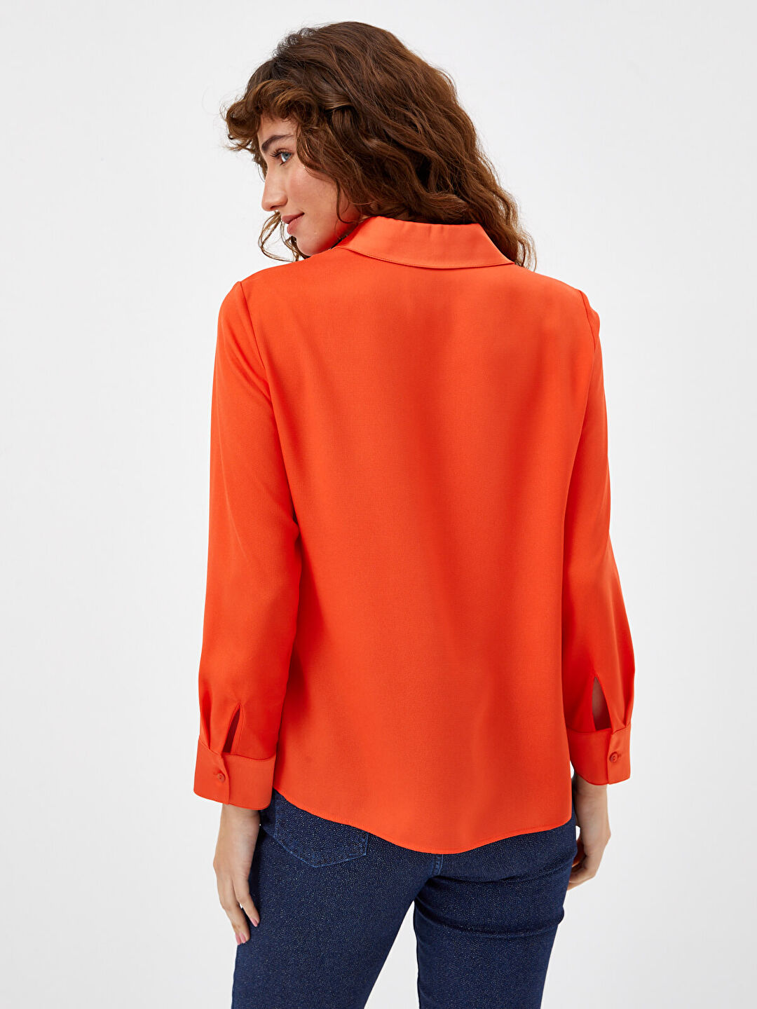 Faik Sönmez Kadın Saten Yaka Ve Pat Detaylı Uzun Kollu Bluz U68319