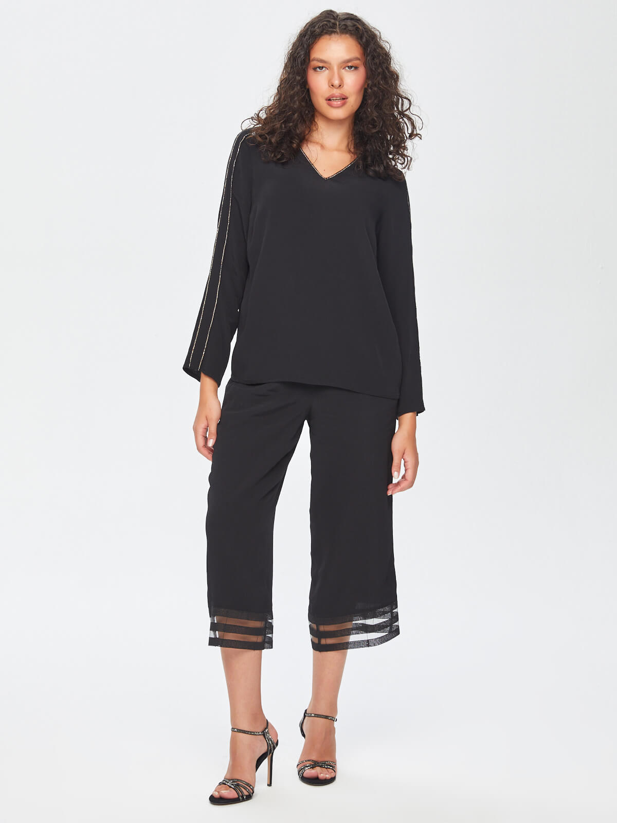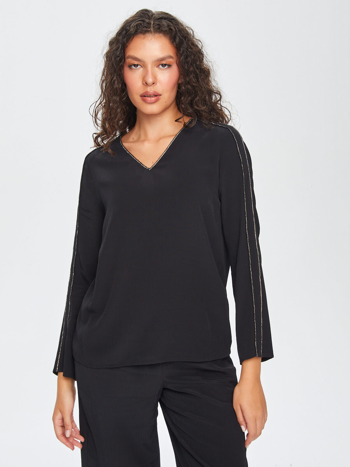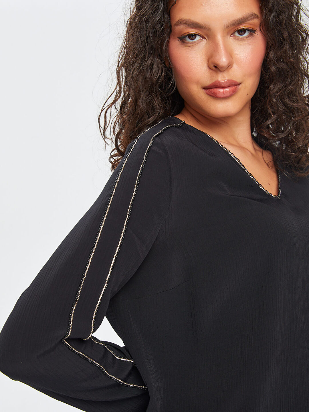 Faik Sönmez Kadın Taş Ve Boncuk Şerit Detaylı V Yaka Bluz U69140