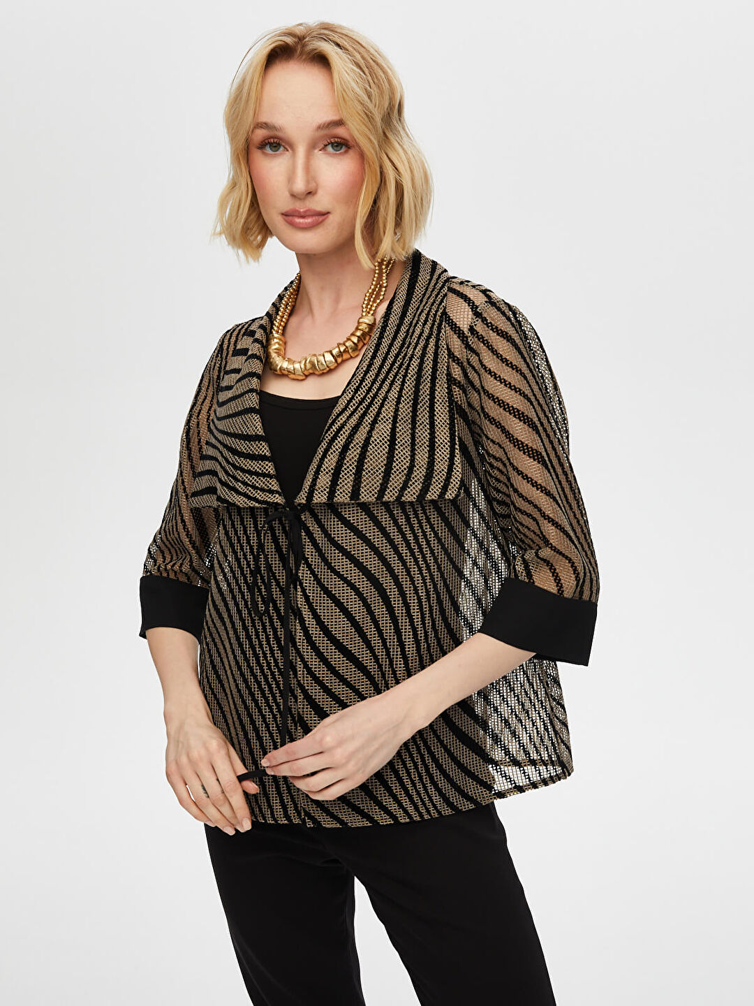 Ürün Adı : Dalga Desen Baskılı 3/4 Kol File Ceket S25CKT046