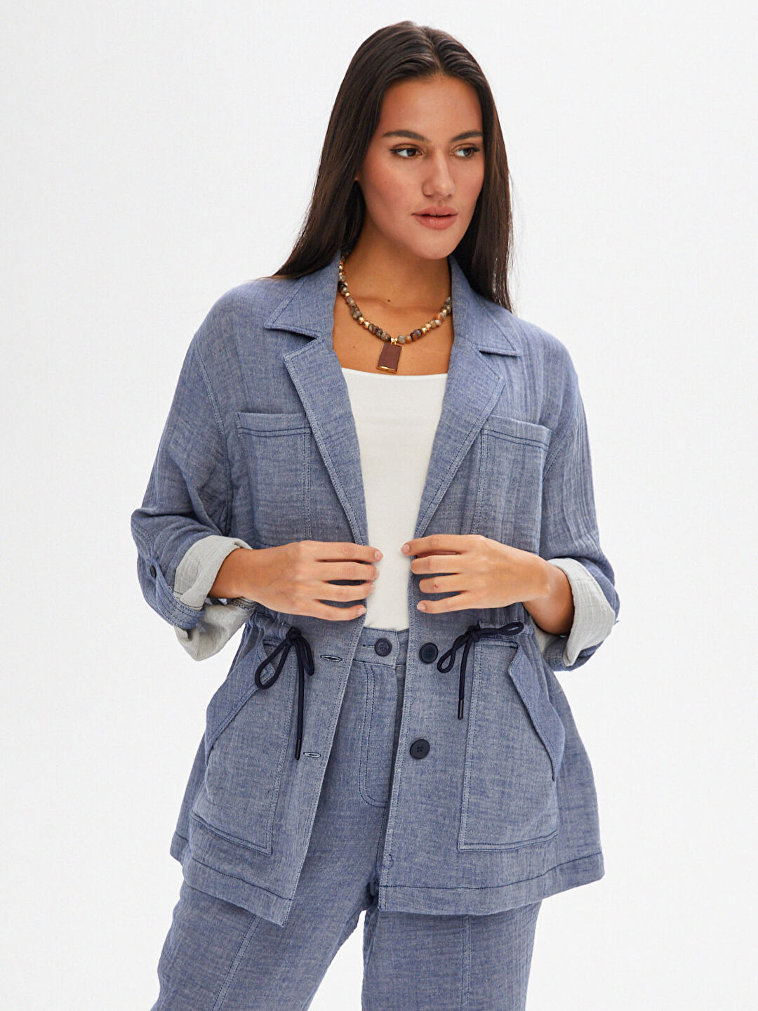Faik Sönmez Kadın Beli Tünelli Kemerli Müslin Ceket U68208%100 Pamuk