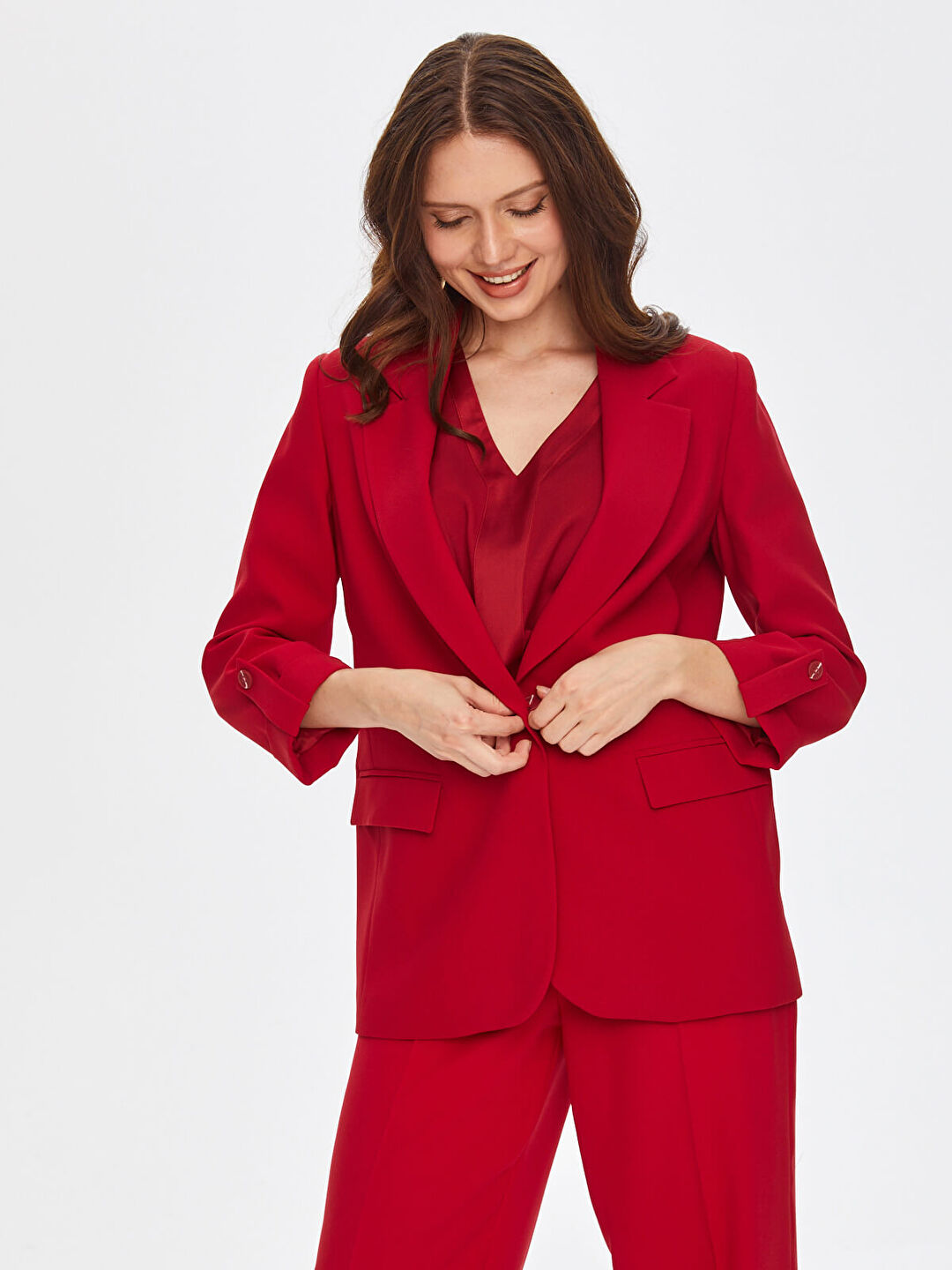 Faik Sönmez Kadın Kolu Apoletli Şık Krep Ceket U69204%100 Polyester