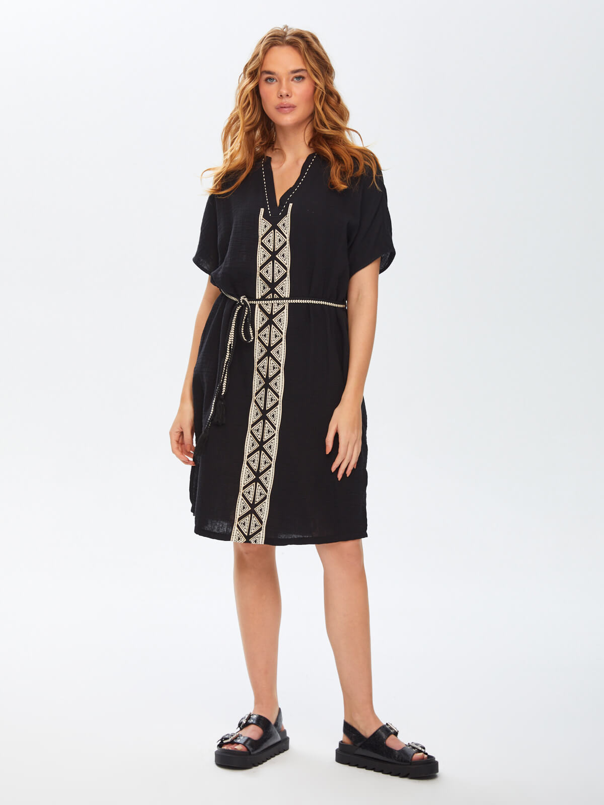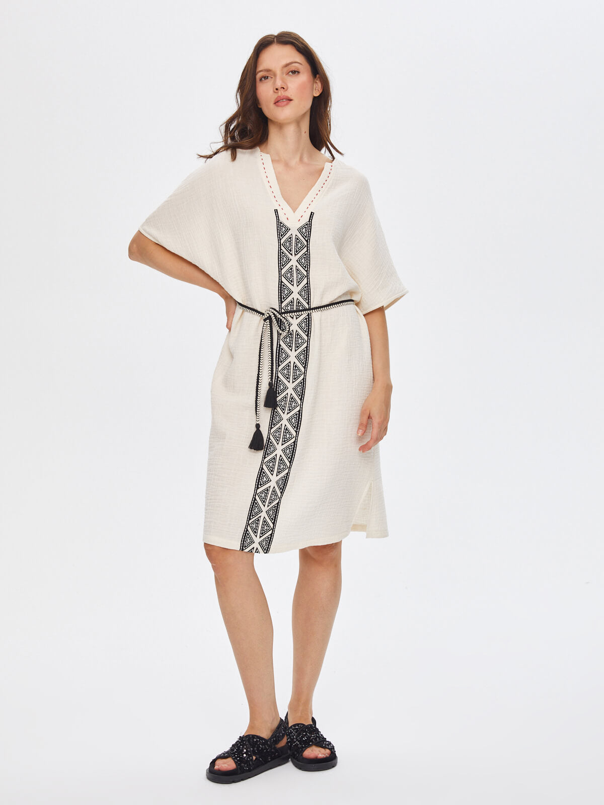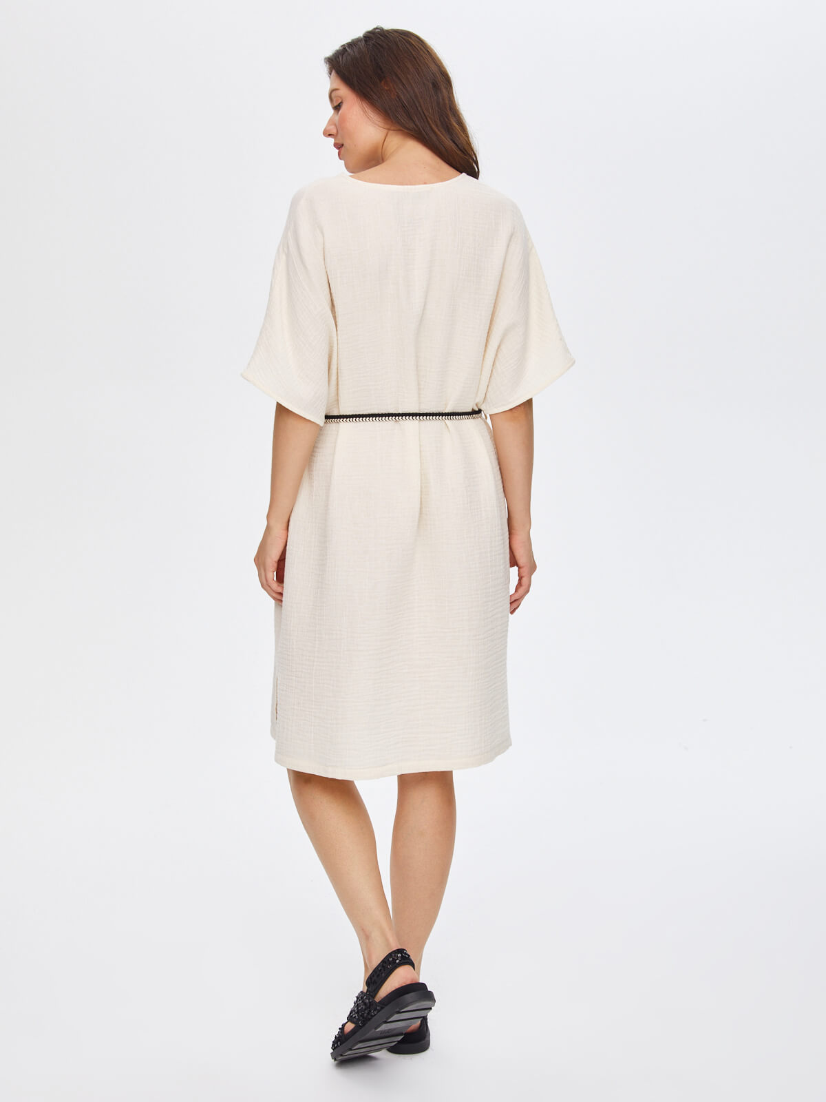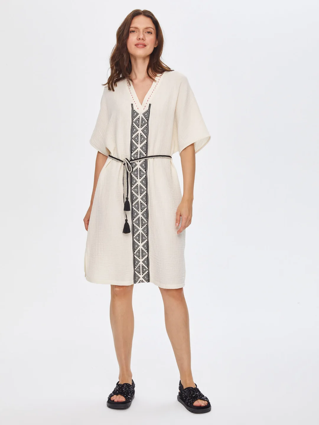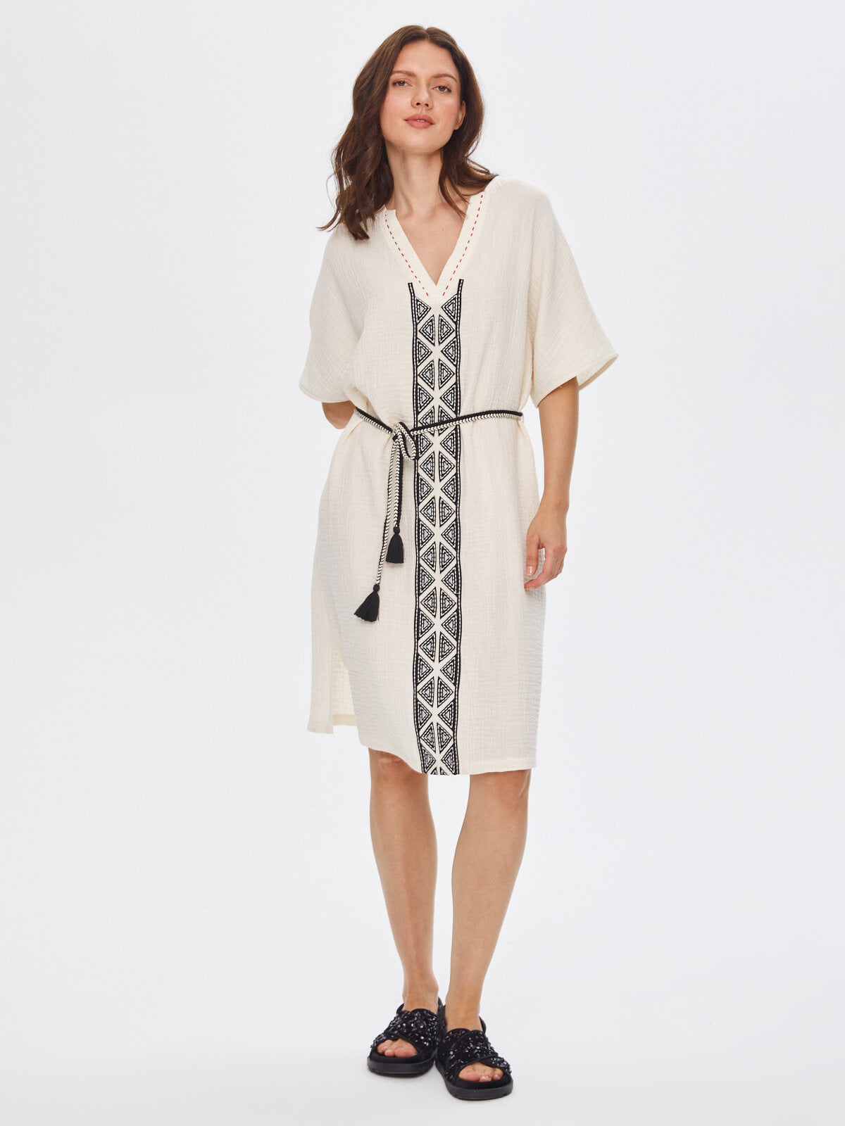 Ürün Adı : Resort Kontrast Yakalı Önü Nakış İşli Müslin Elbise 68791