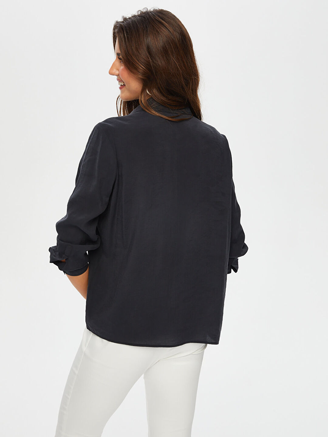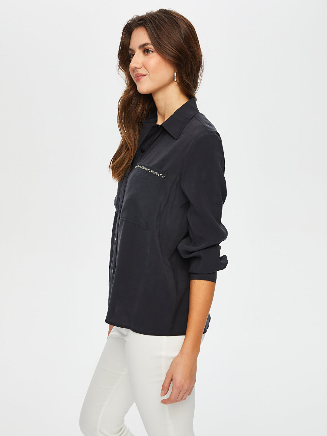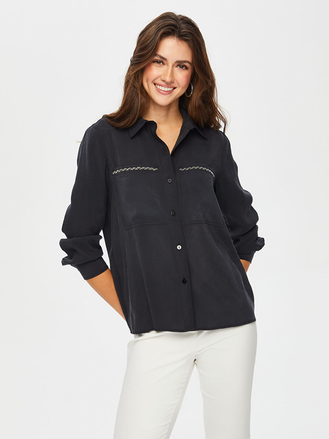 Faik Sönmez Kadın Zincir Şerit Detaylı Modallı Gömlek 25YUS25GML040%84 Modal %16 Polyester
