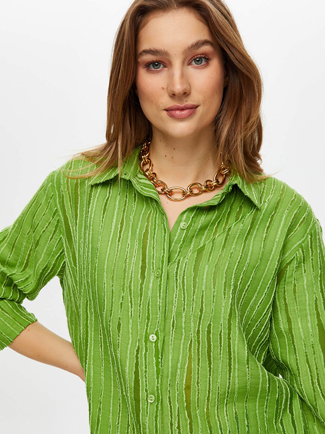 Faik Sönmez Kadın Kendinden Jakarlı 3/4 Kol Gömlek 25YUS25GML041