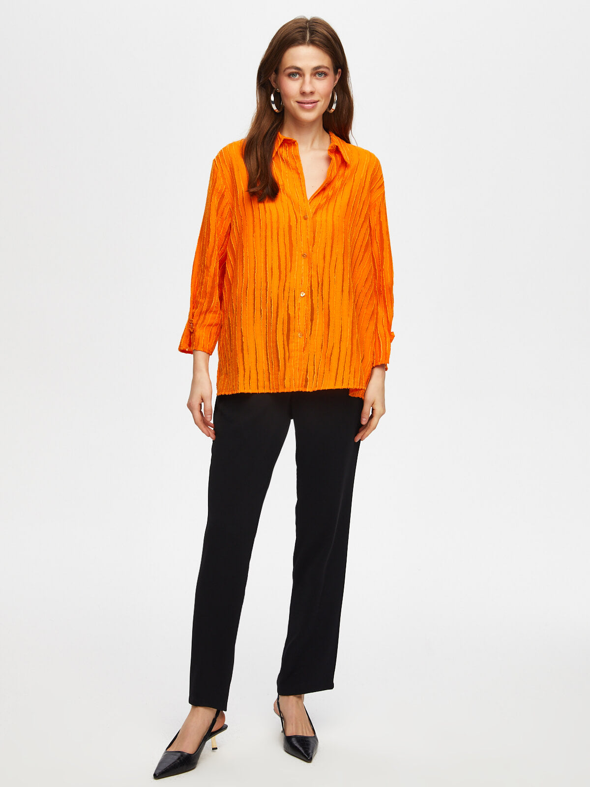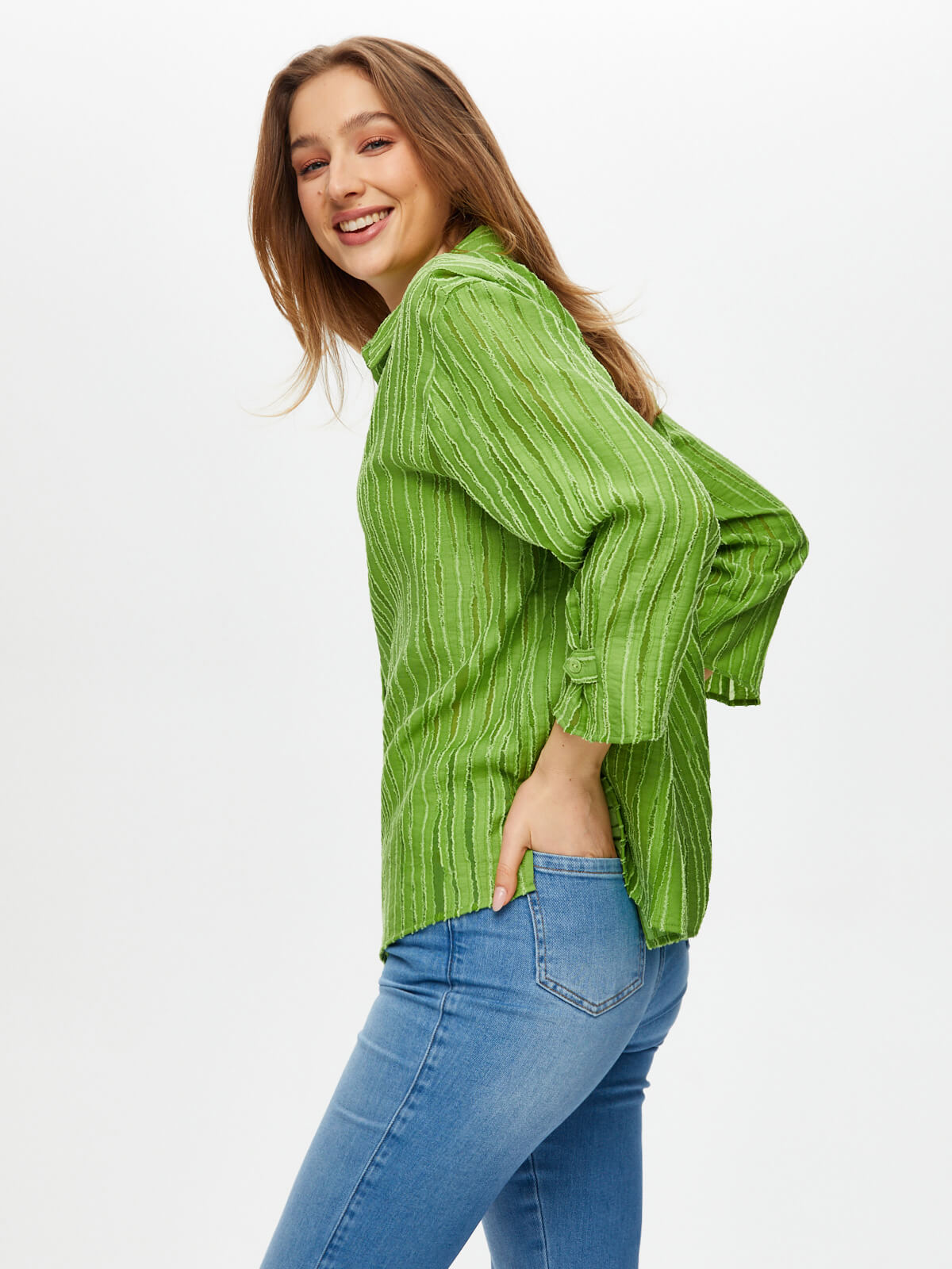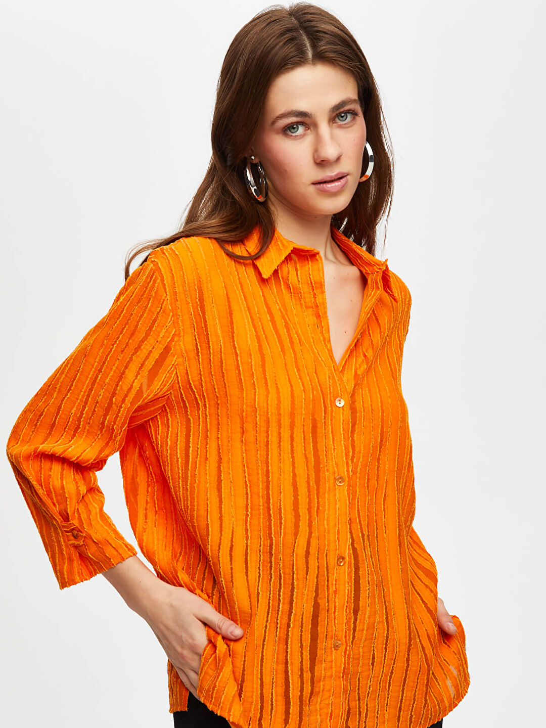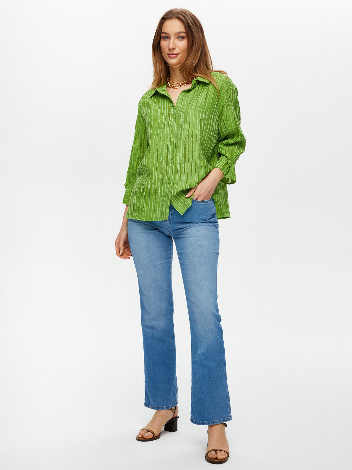 Faik Sönmez Kadın Kendinden Jakarlı 3/4 Kol Gömlek 25YUS25GML041%60 Viskon %20 Naylon %17 Polyester %3 Elastan
