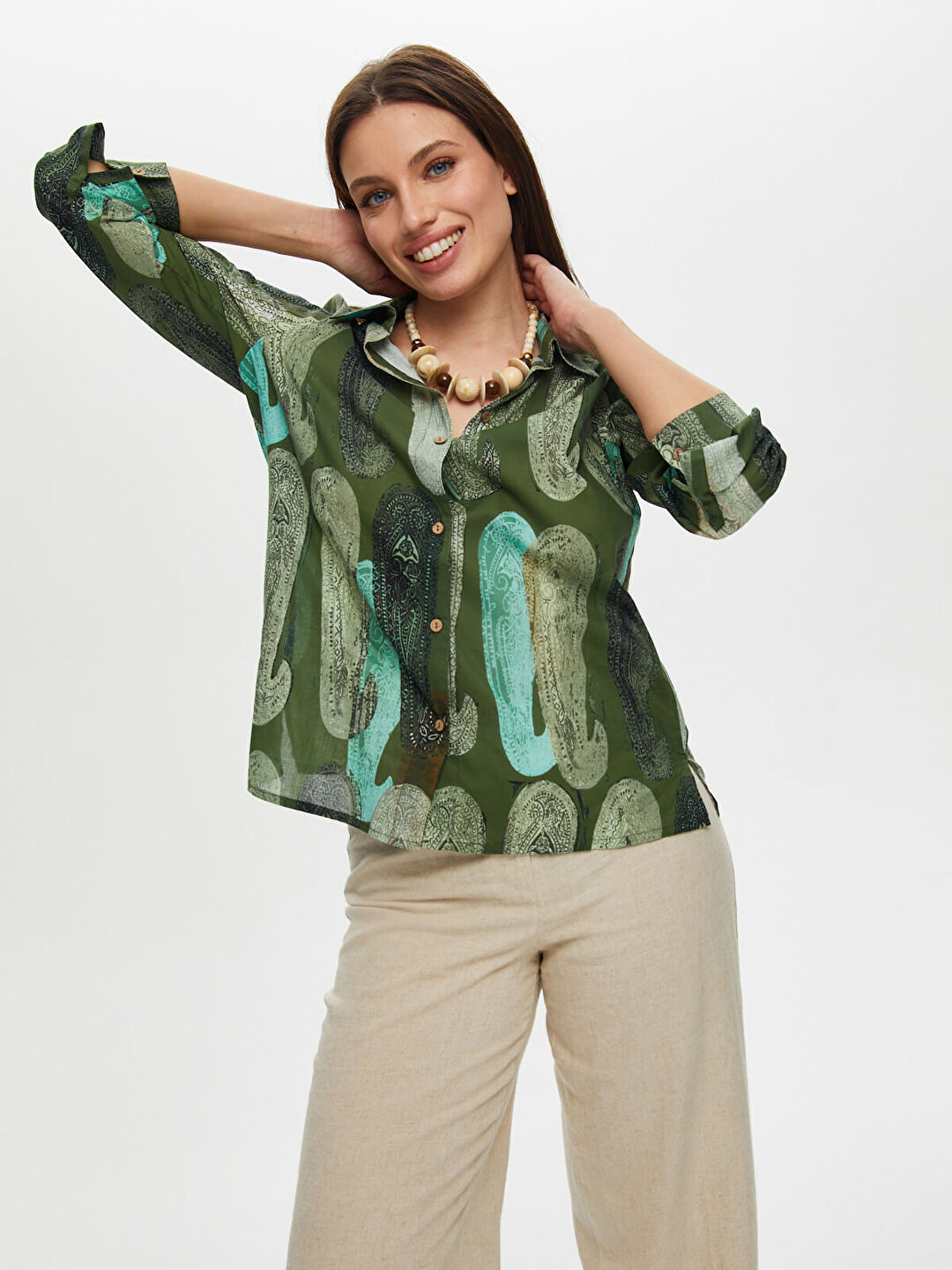Faik Sönmez Kadın Şal Desen Pamuk Vual Gömlek 25YUS25GML056%100 Pamuk