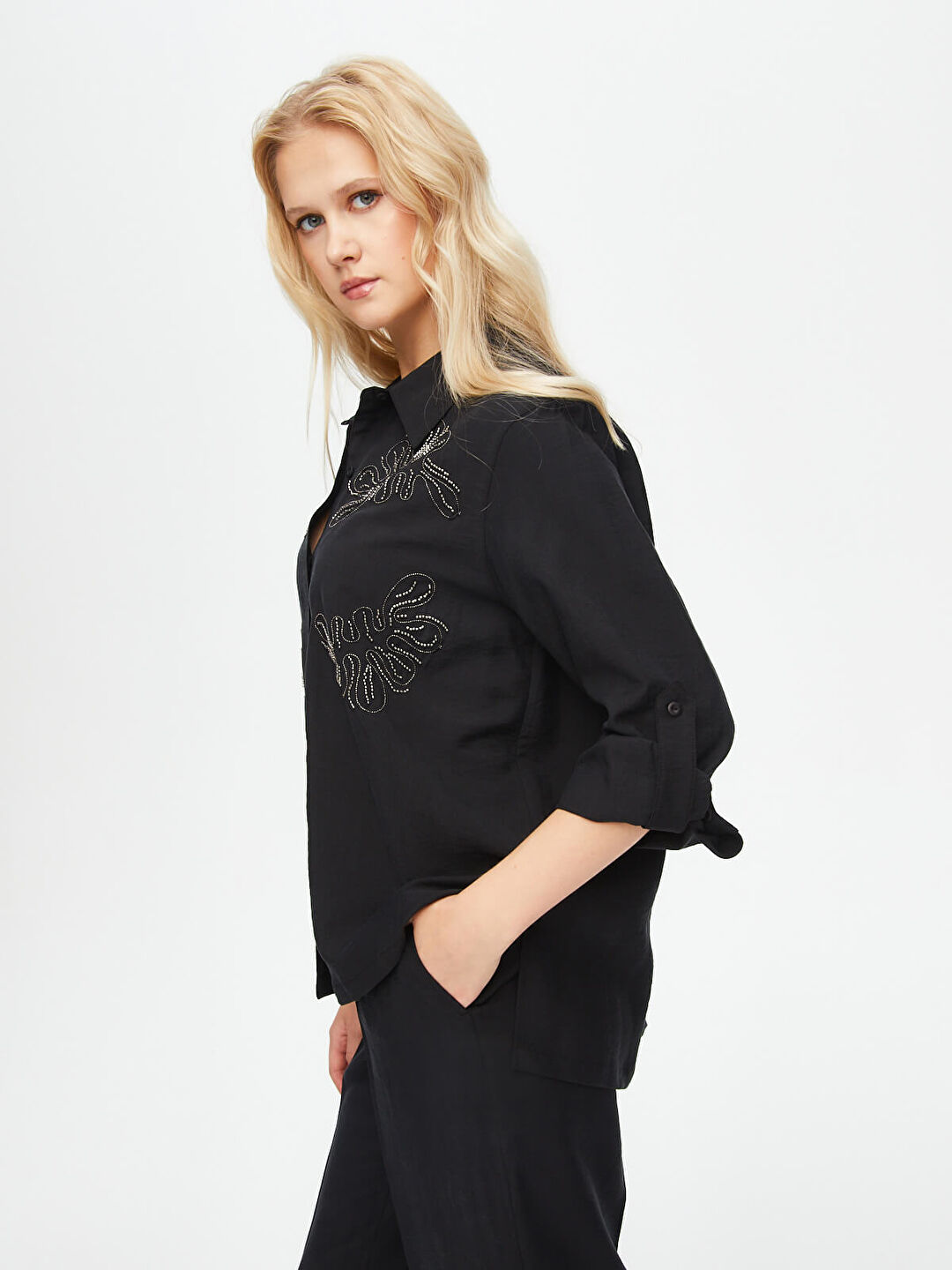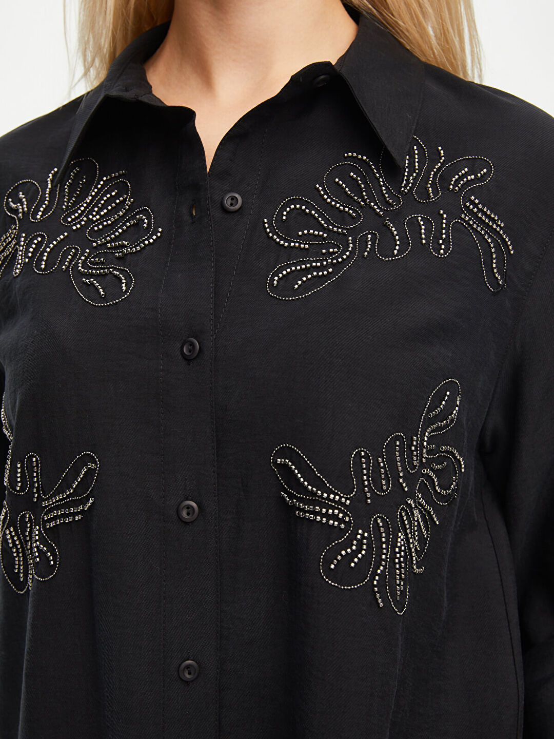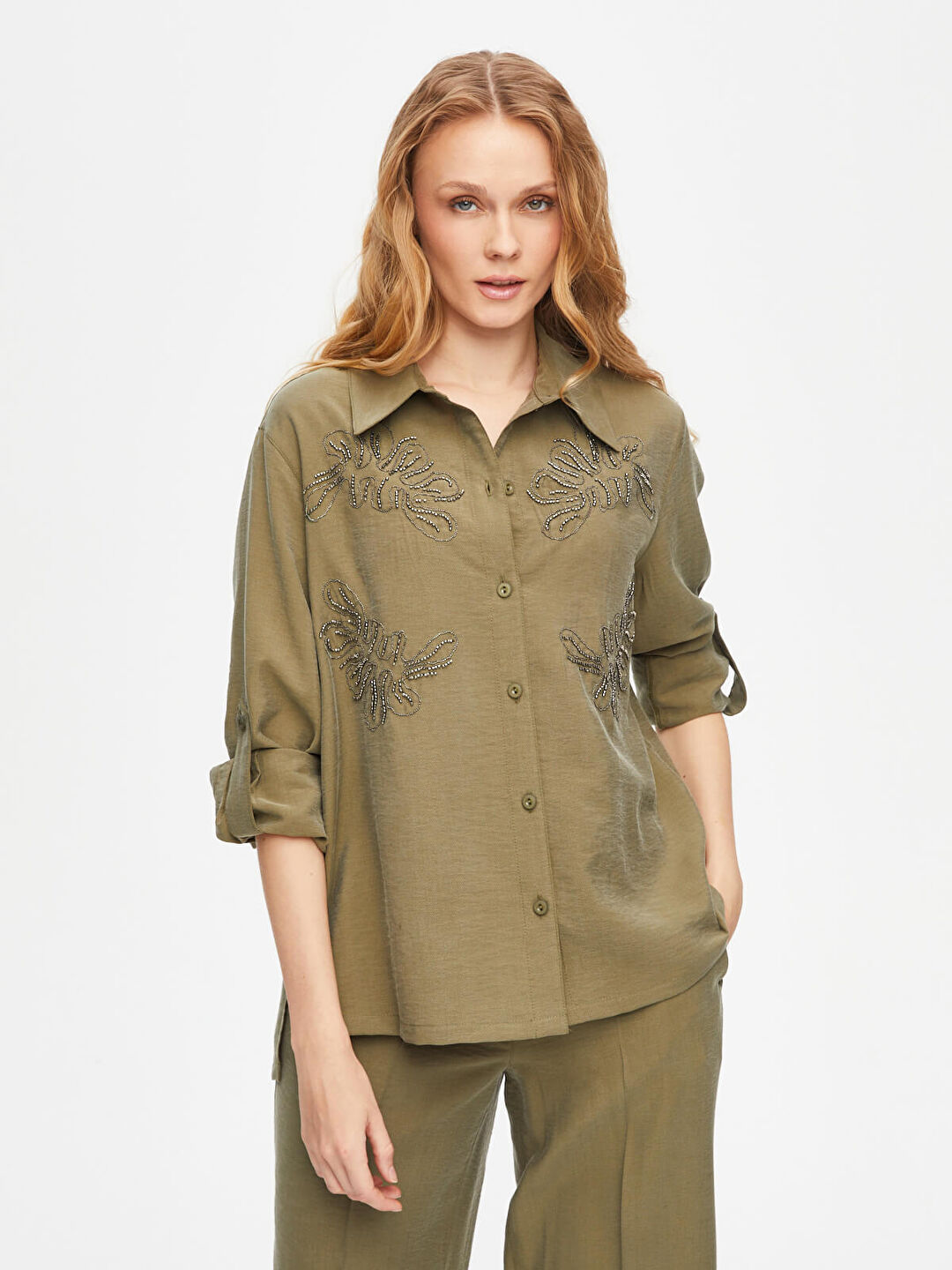 Faik Sönmez Kadın Zincir Ve Boncuk Nakışlı Liyoselli Gömlek U69300