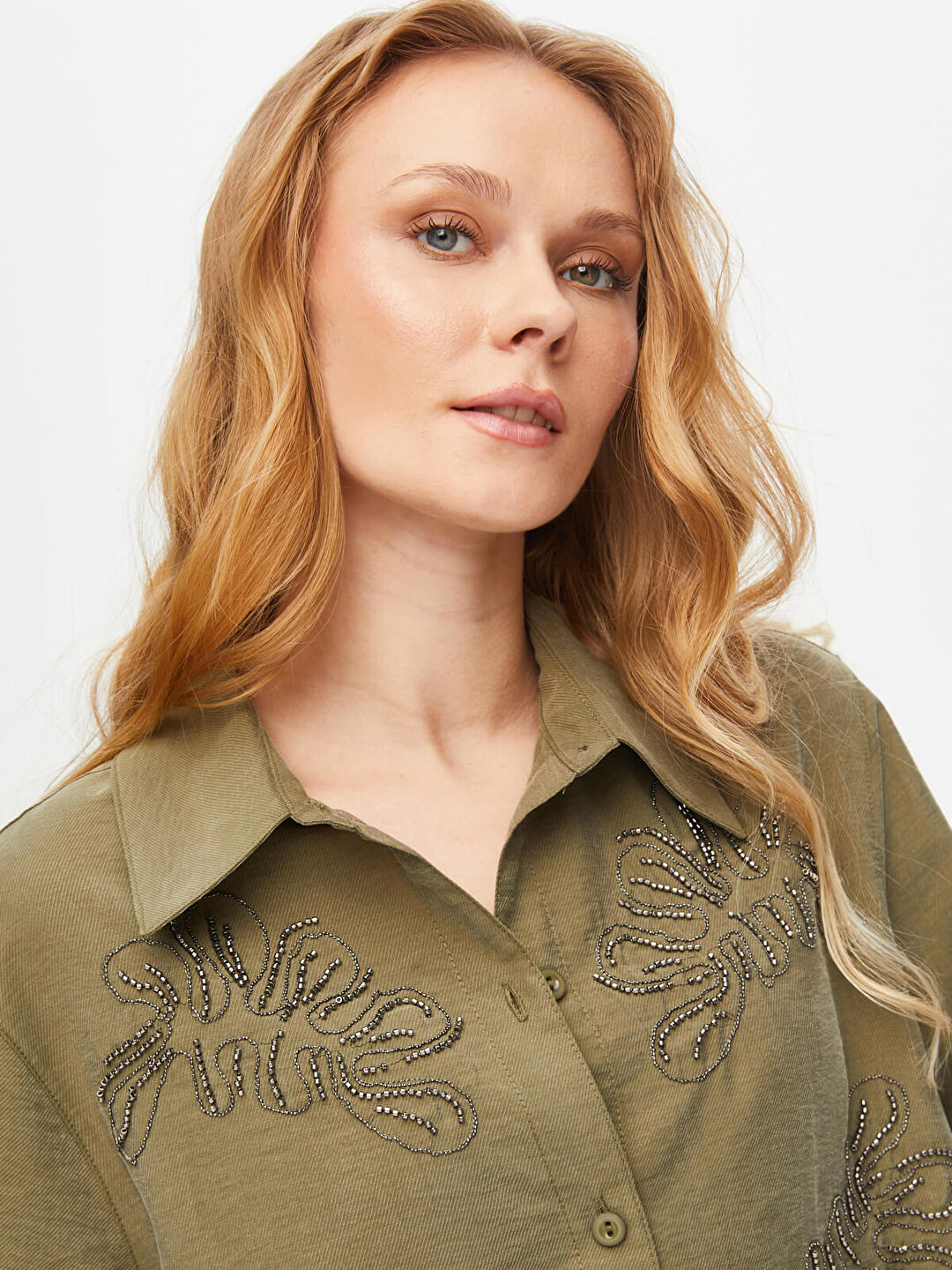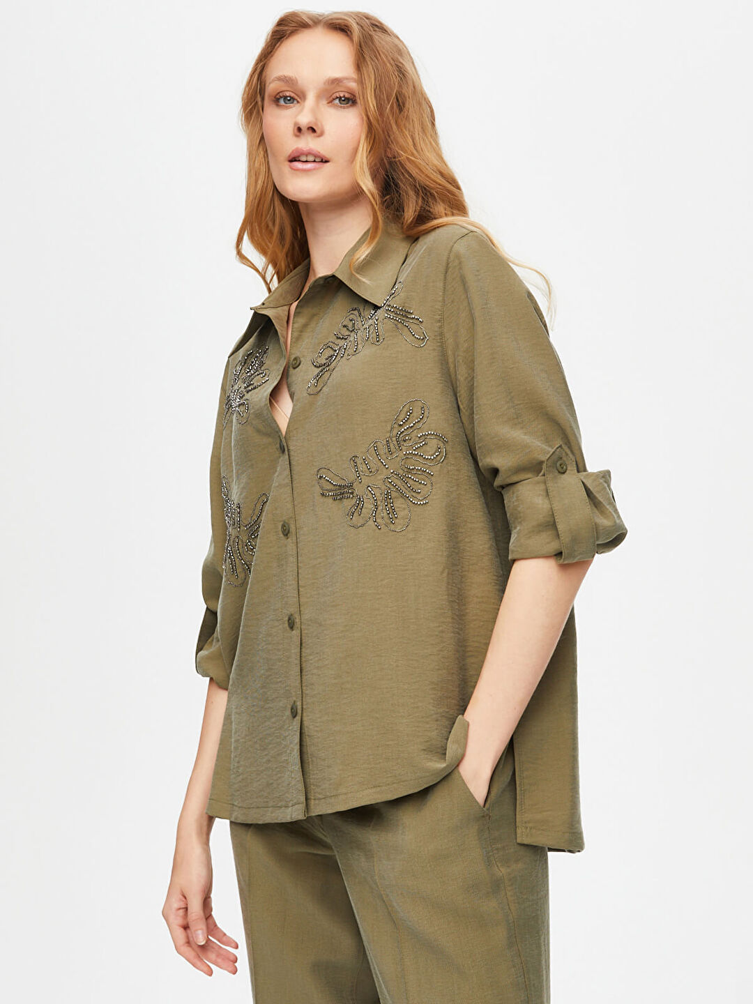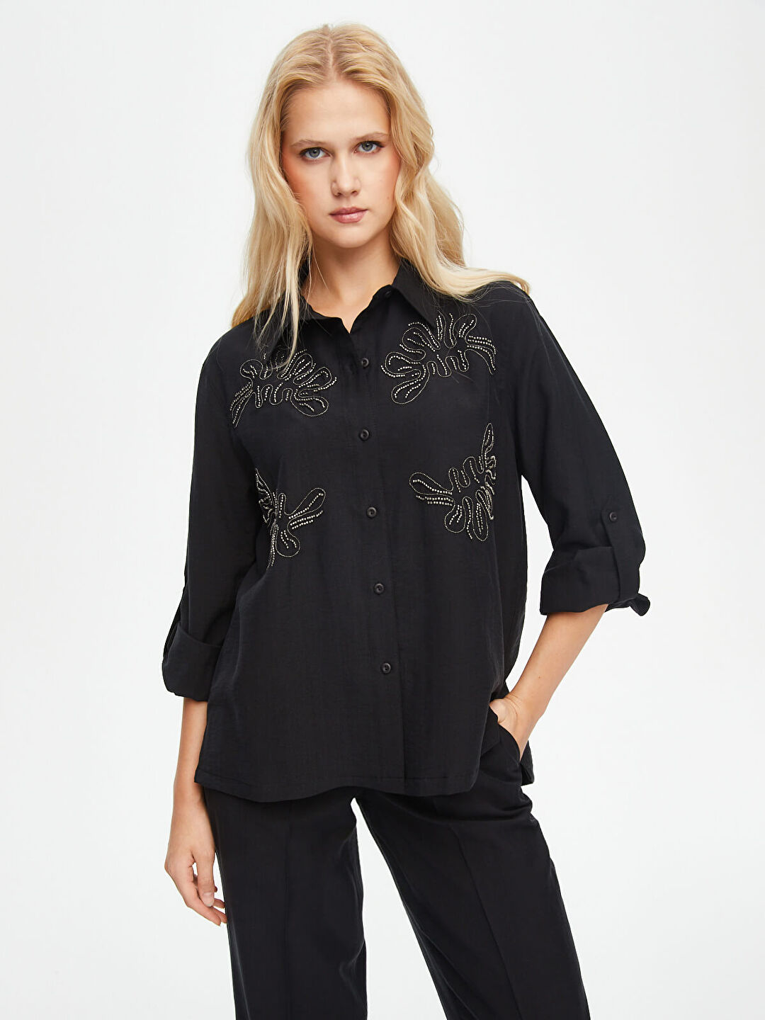 Faik Sönmez Kadın Zincir Ve Boncuk Nakışlı Liyoselli Gömlek U69300