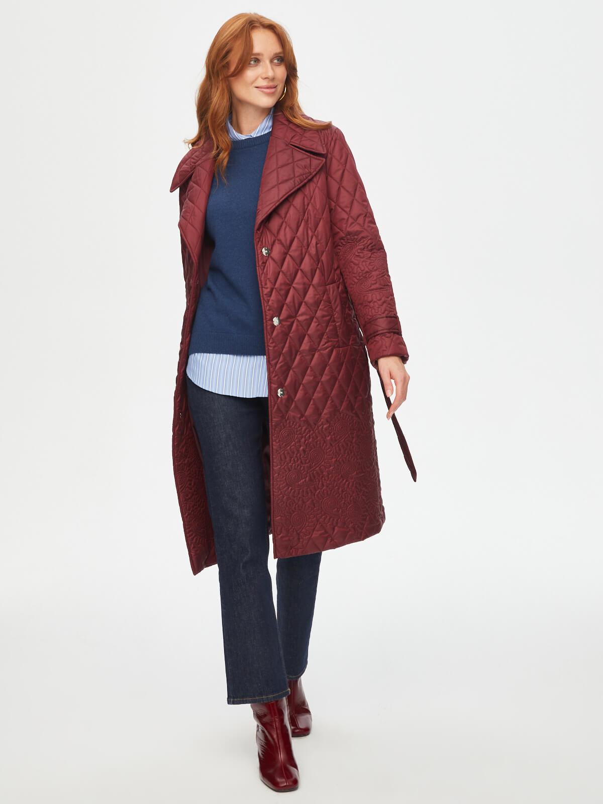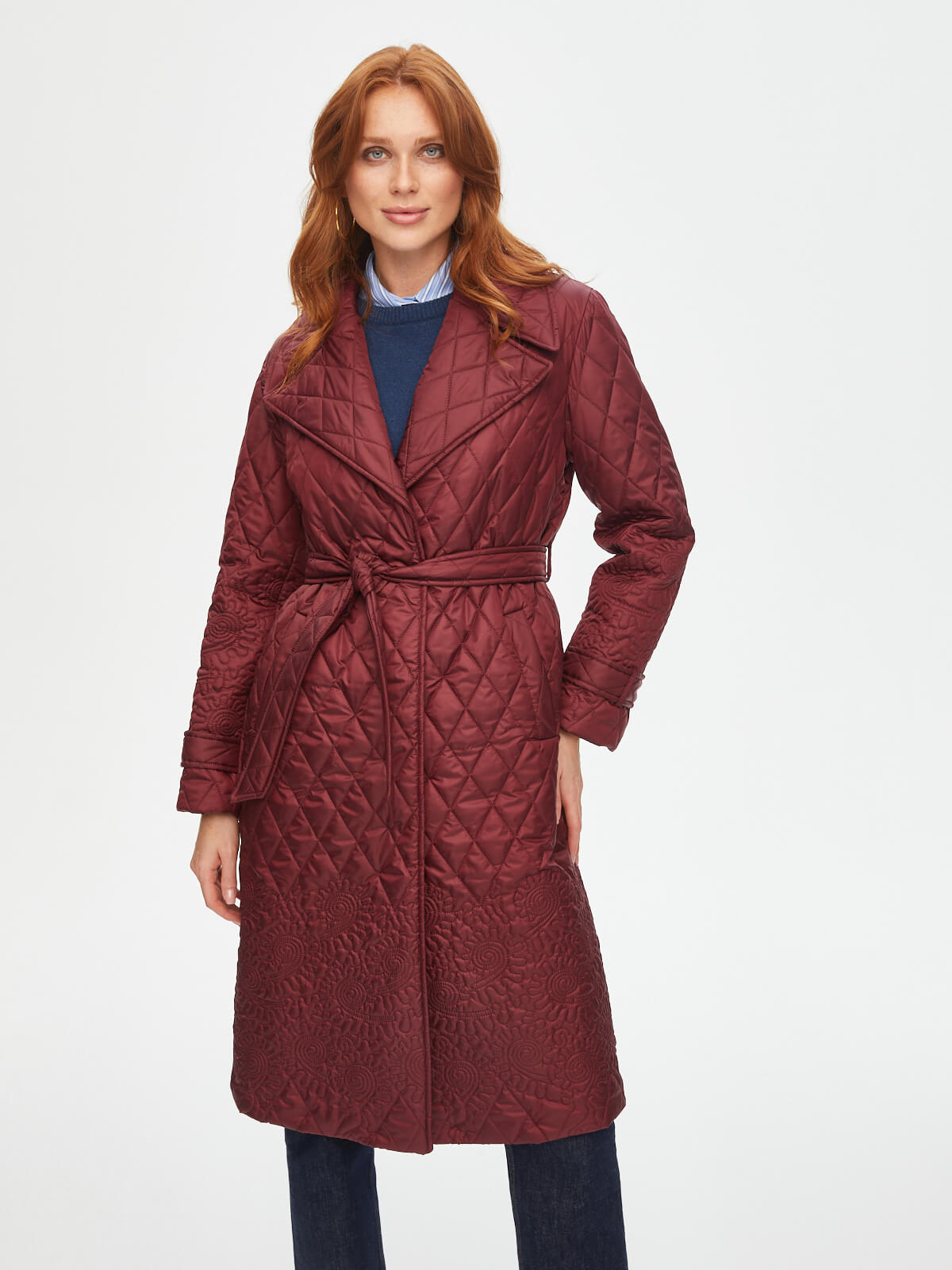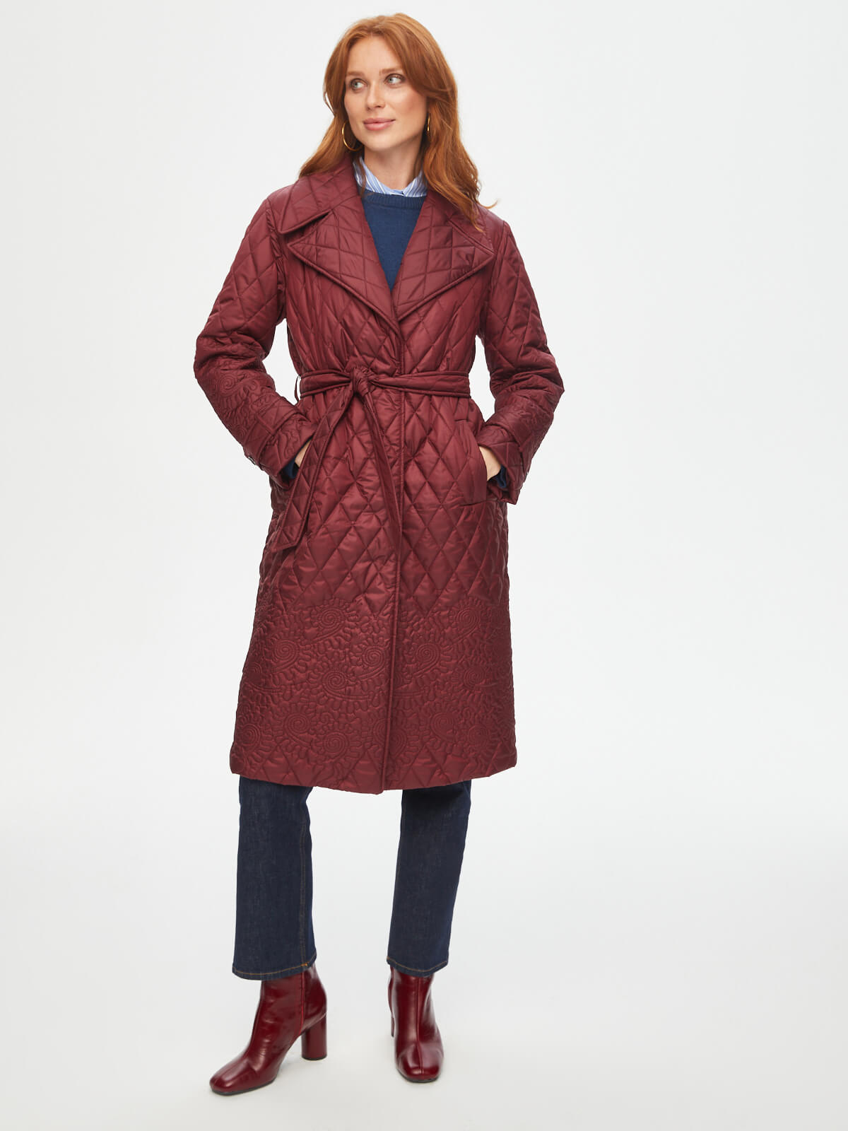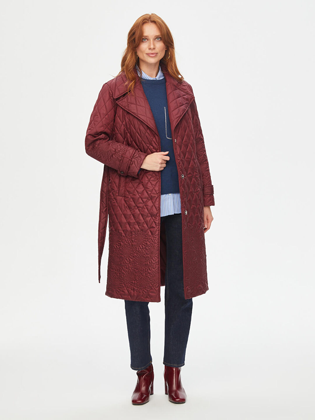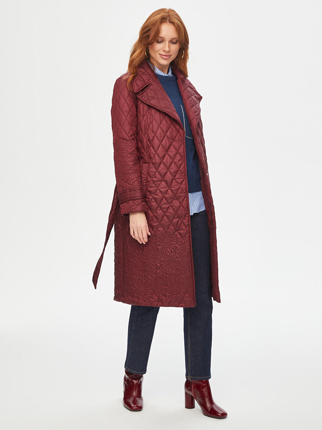 Faik Sönmez Kadın Çiçek Ve Baklava Desen Uzun Kapitone Kaban U69427