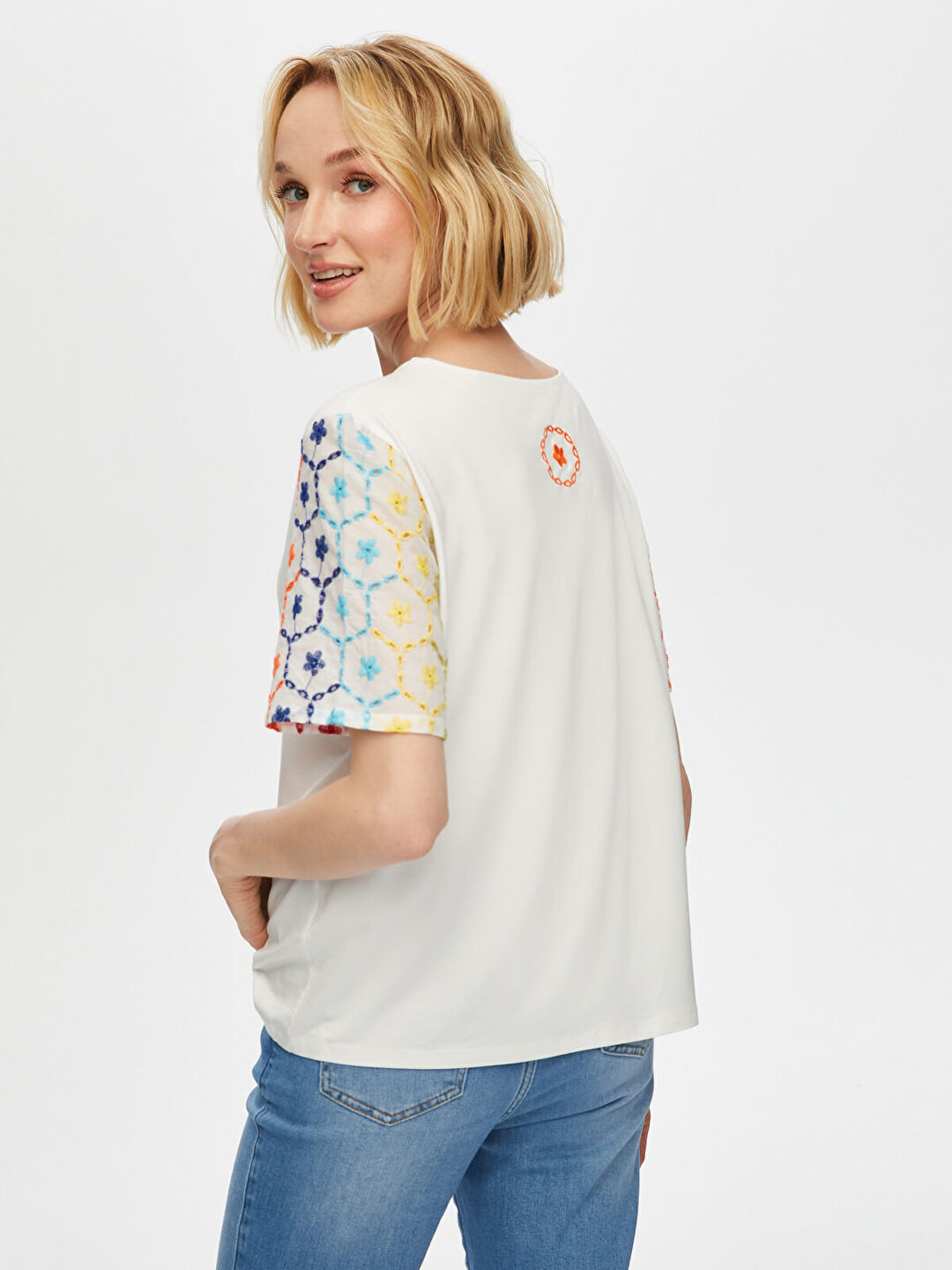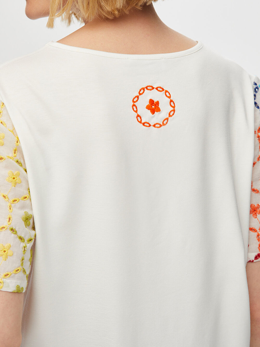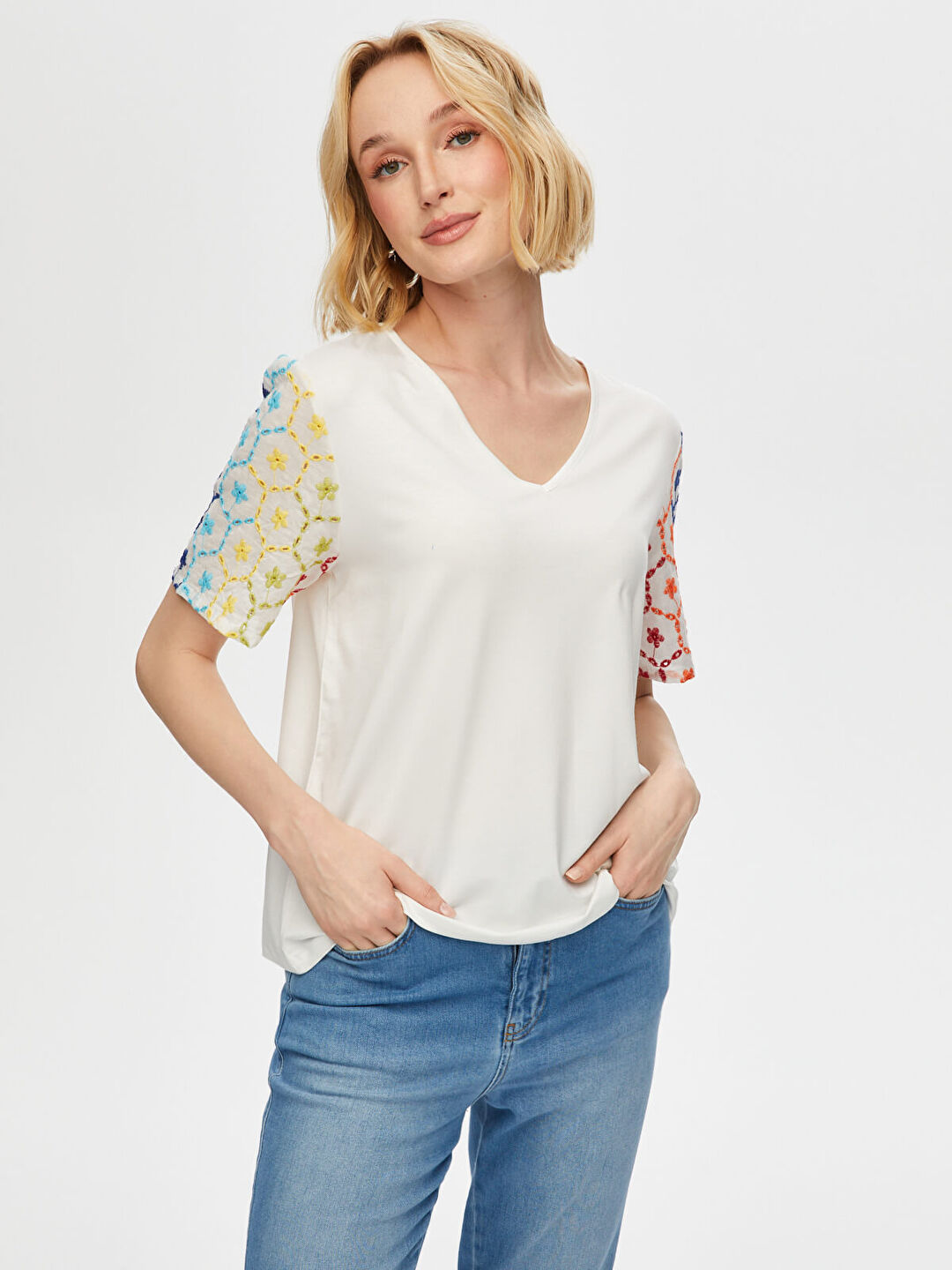 Ürün Adı : Renkli Brode Nakış Kollu V Yaka T-Shirt S25TSH066