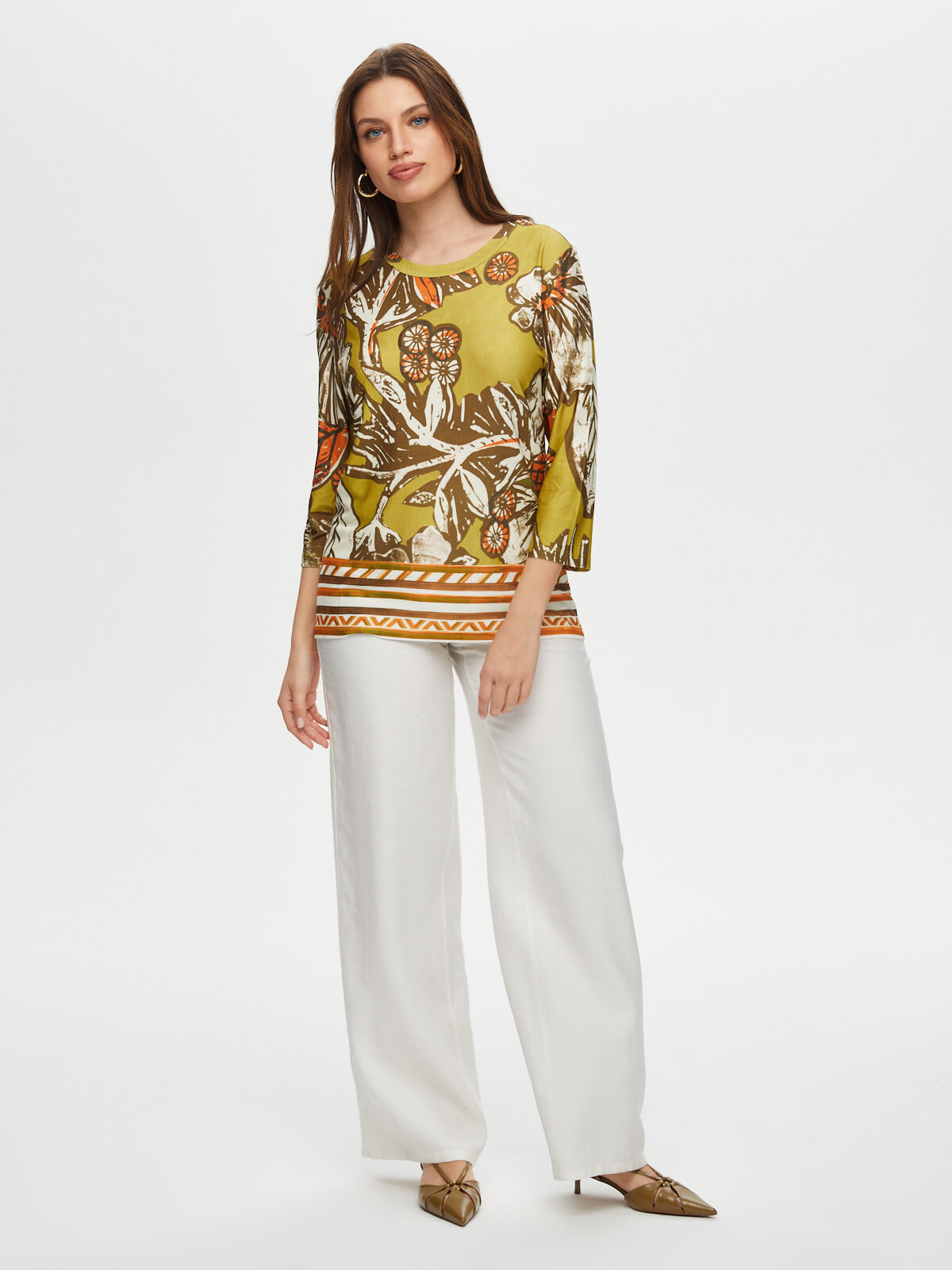 Faik Sönmez Kadın Çiçek Desen Yuvarlak Yaka T-Shirt 25YUS25TSH097