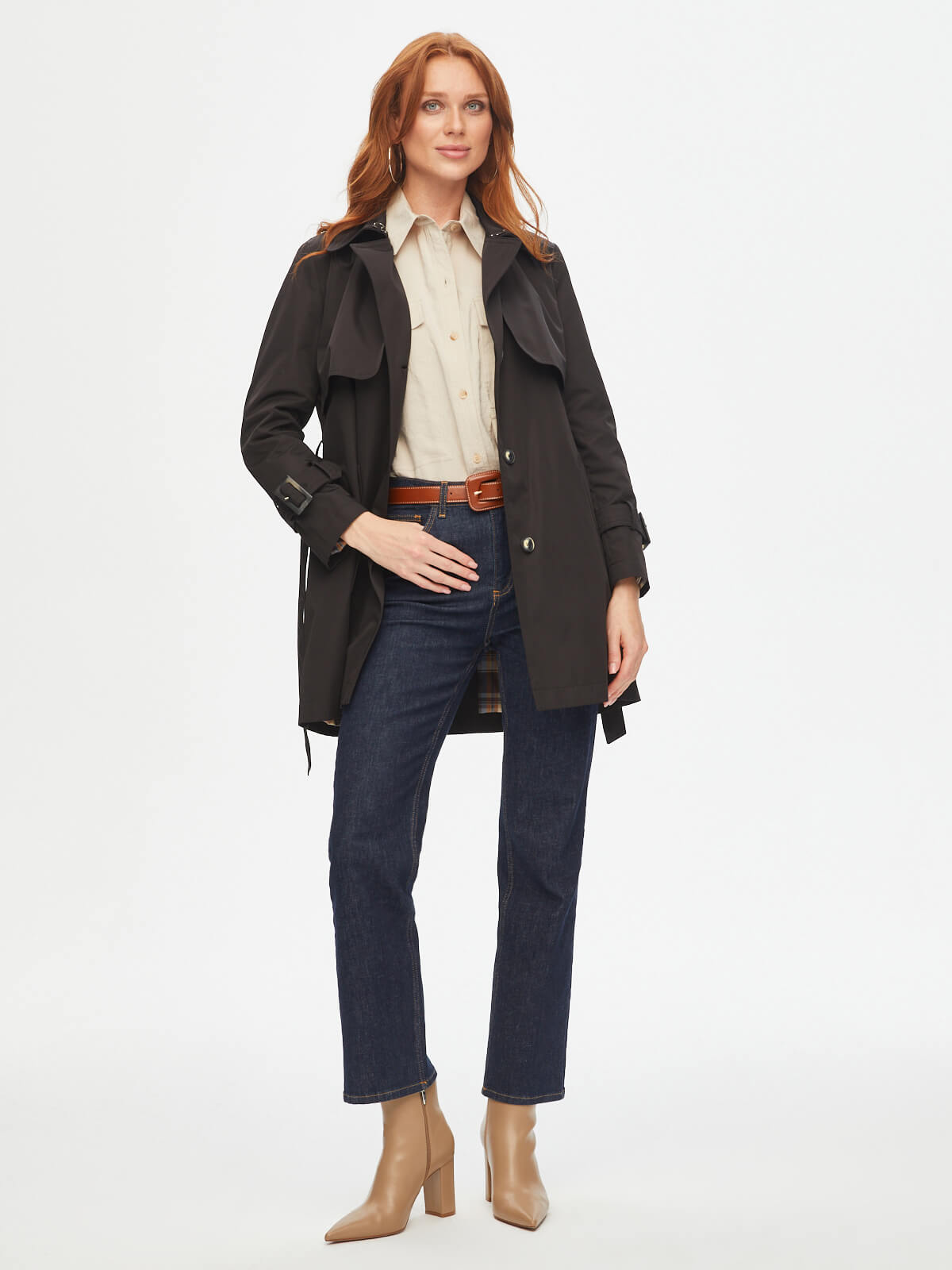 Faik Sönmez Kadın Kareli Astarlı Trençkot U69527