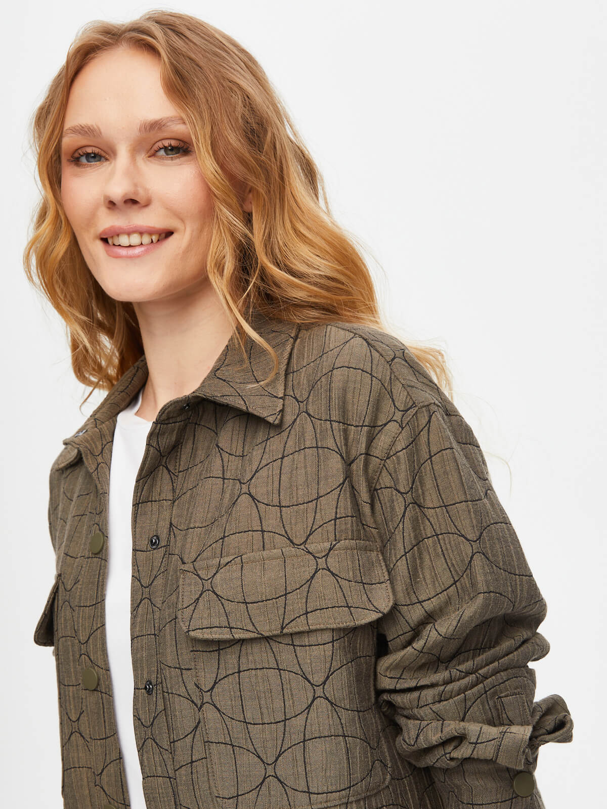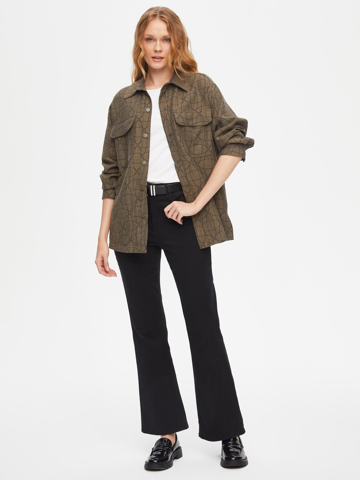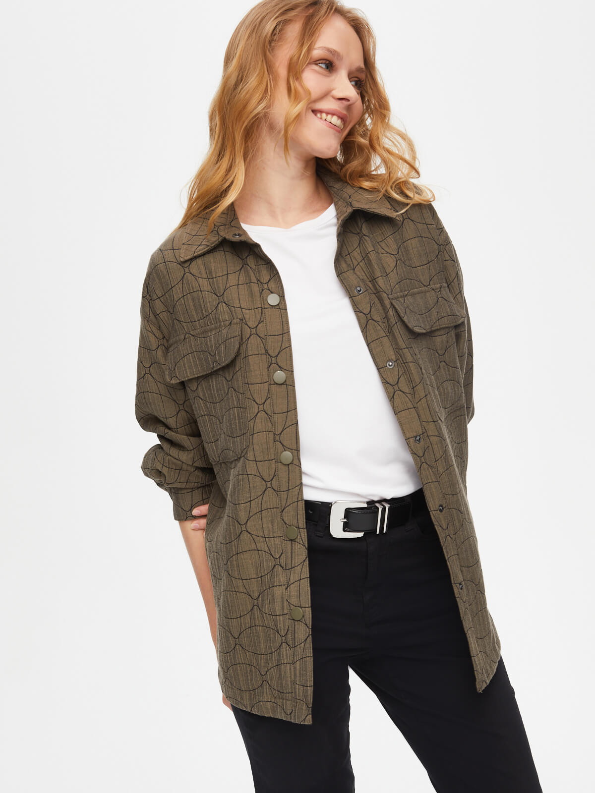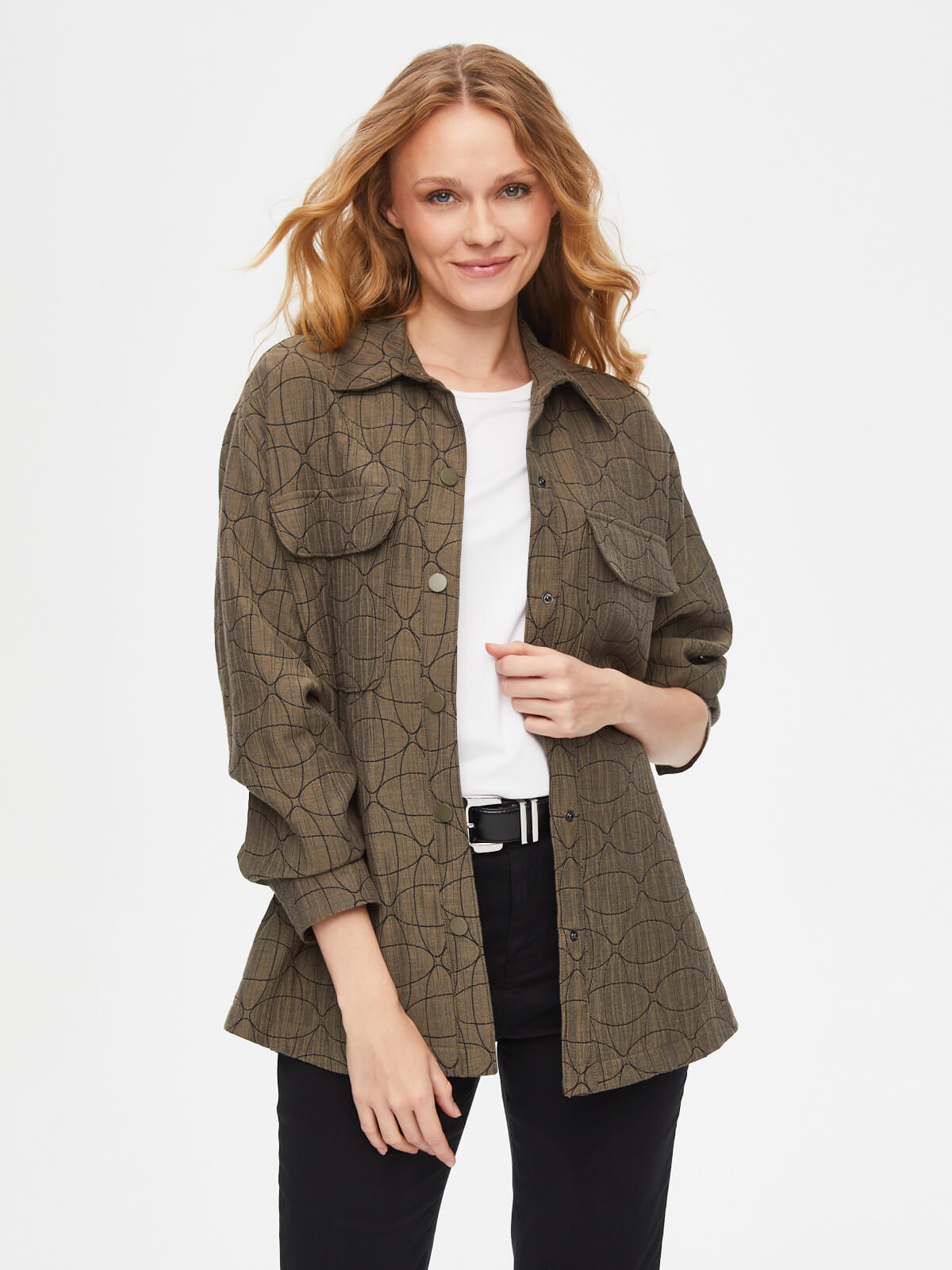 Faik Sönmez Kadın Kendinden Jakarlı Overshırt Tunik U69611%60 Polyester %36 Pamuk %4 Elastan