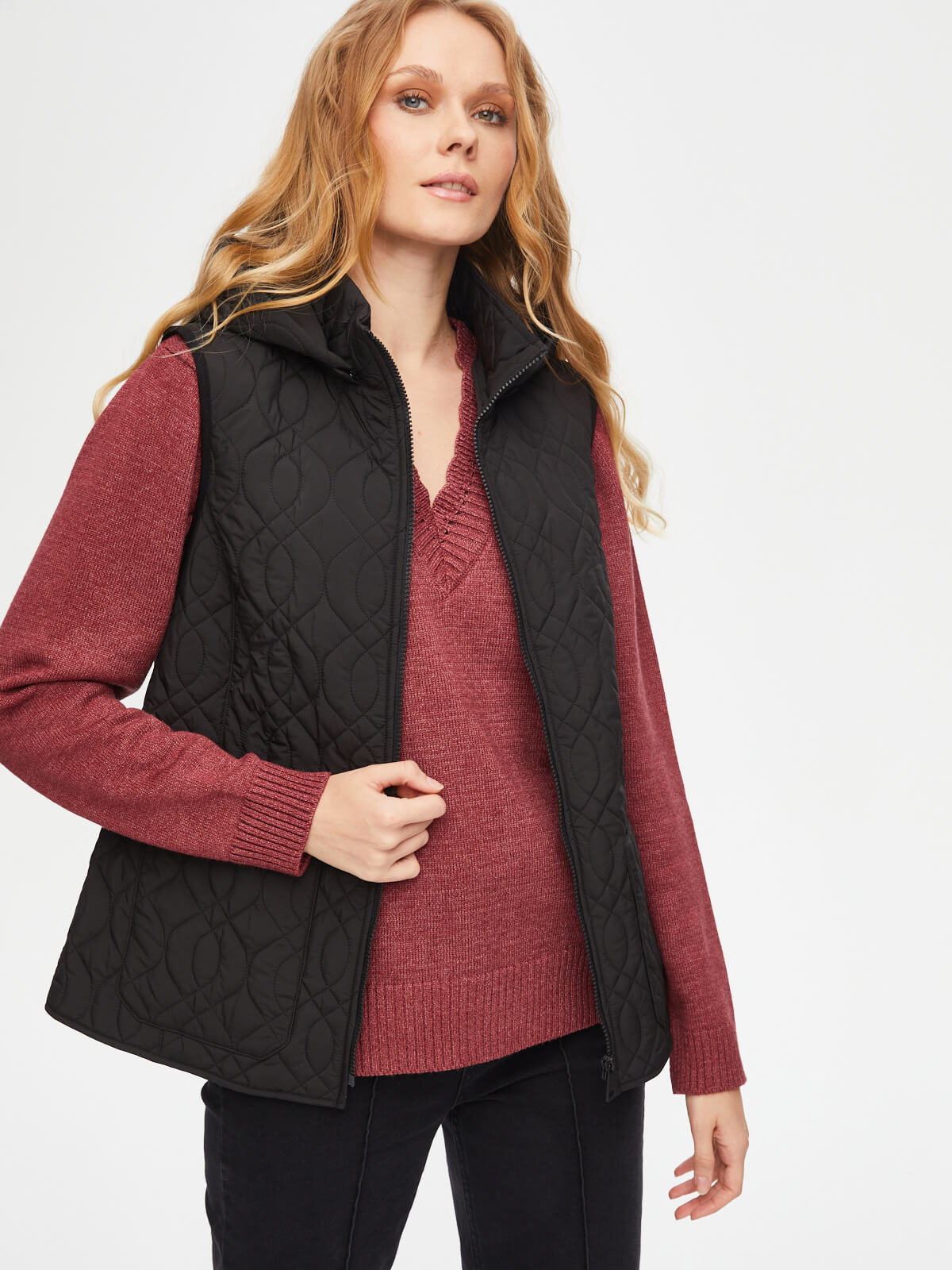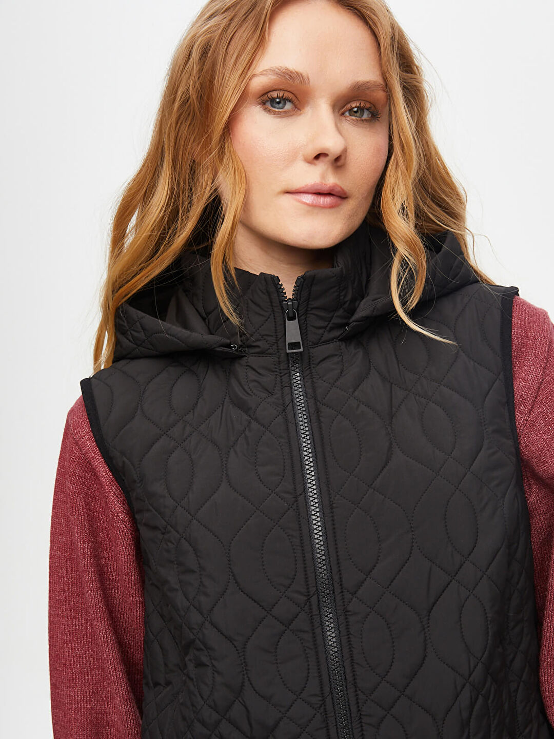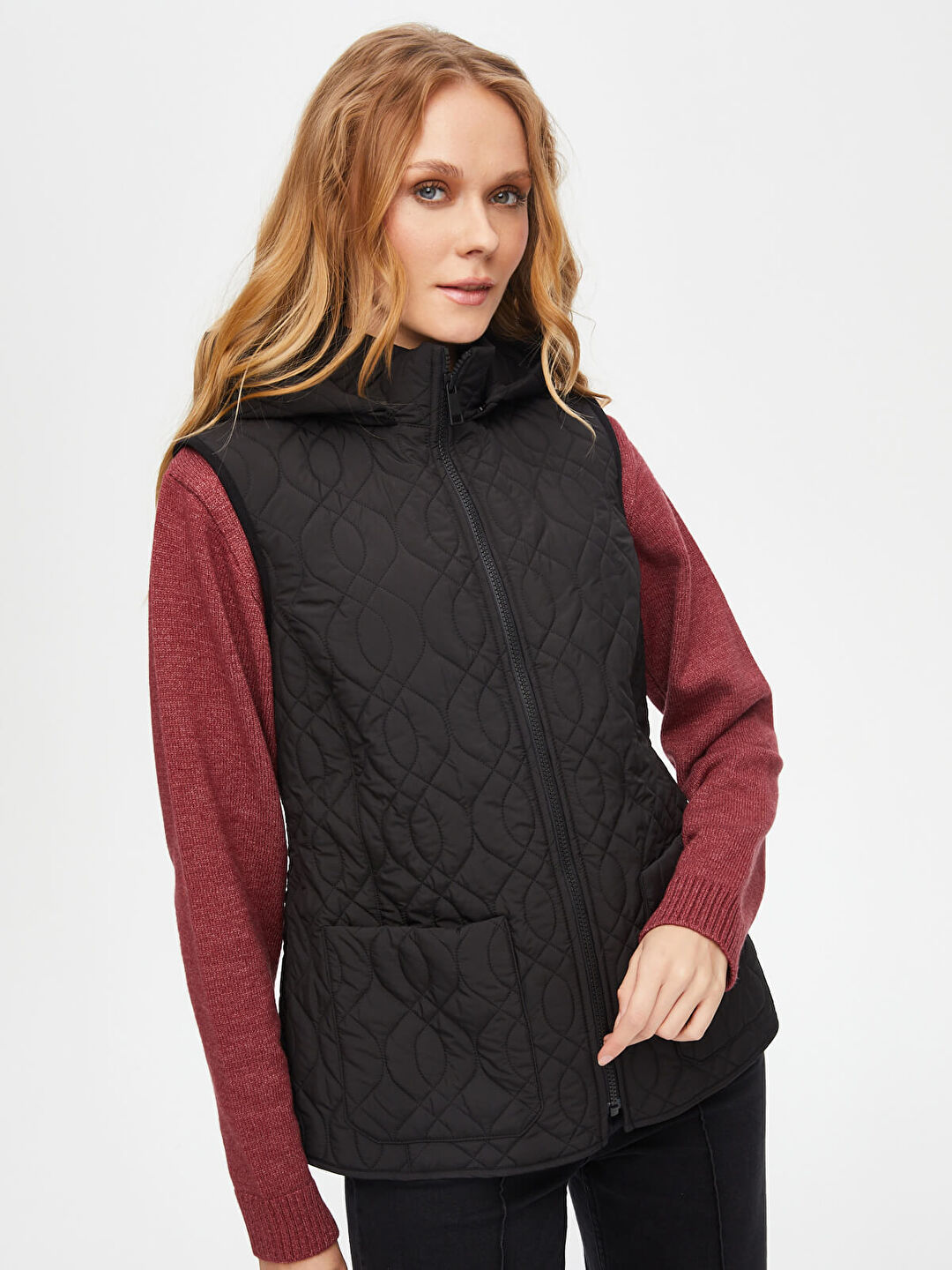 Faik Sönmez Kadın Patch Cep Detaylı Kapüşonlu Kapitone Yelek U69456
