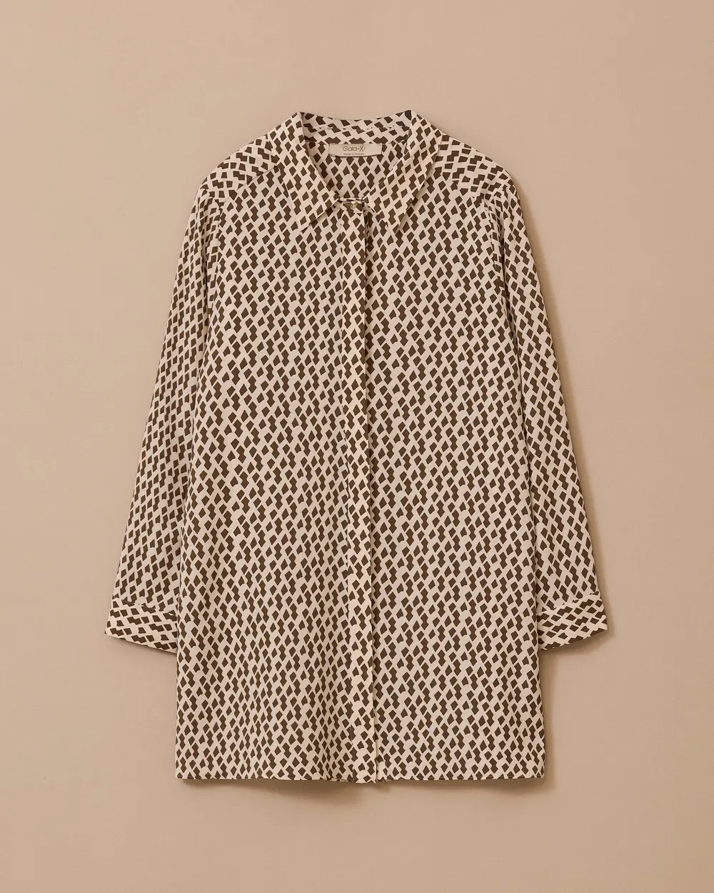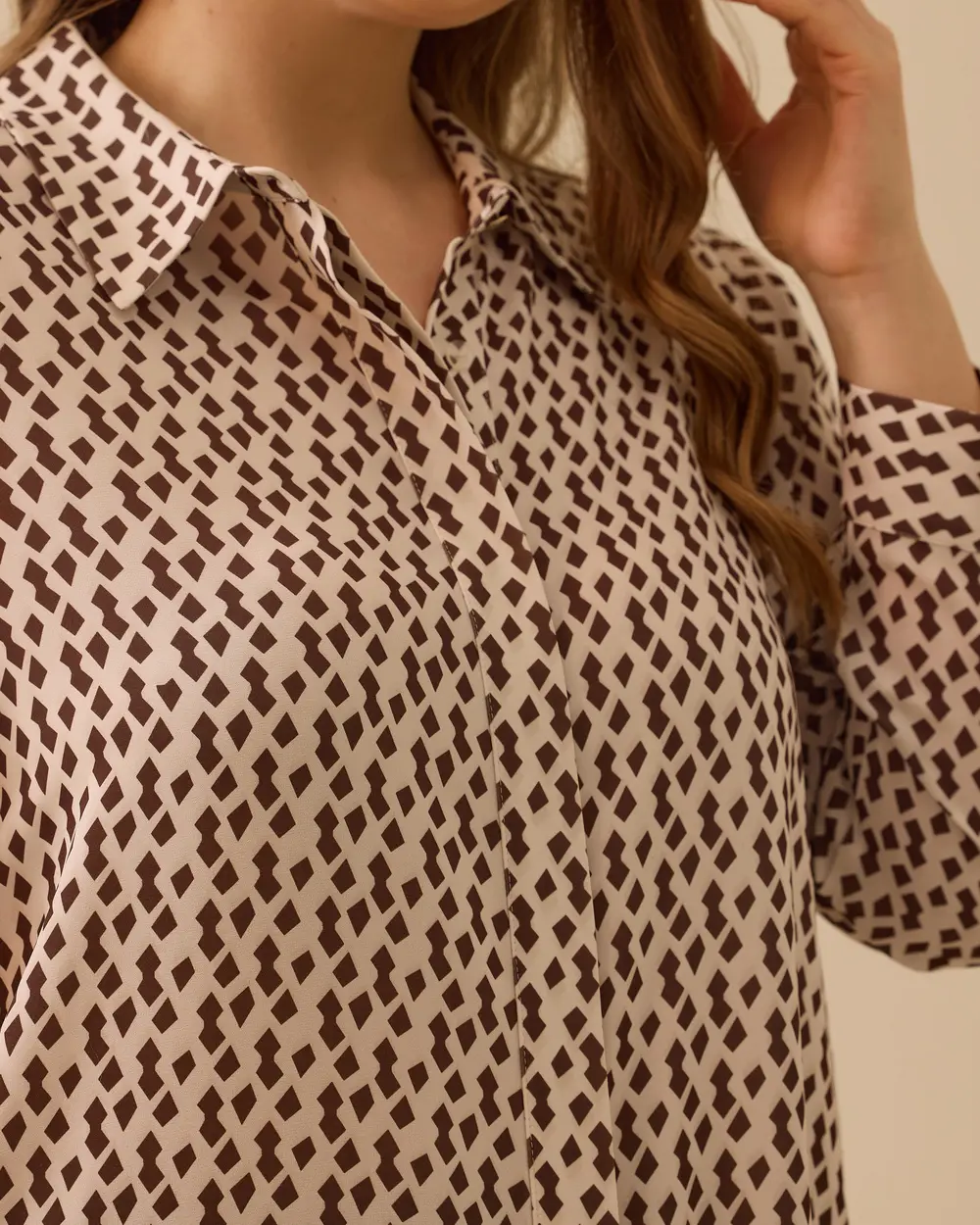 Büyük Beden Desenli Dökümlü Gömlek, hafif yapısı ve rahat kesimiyle gün boyu konfor ve şıklık sunar.