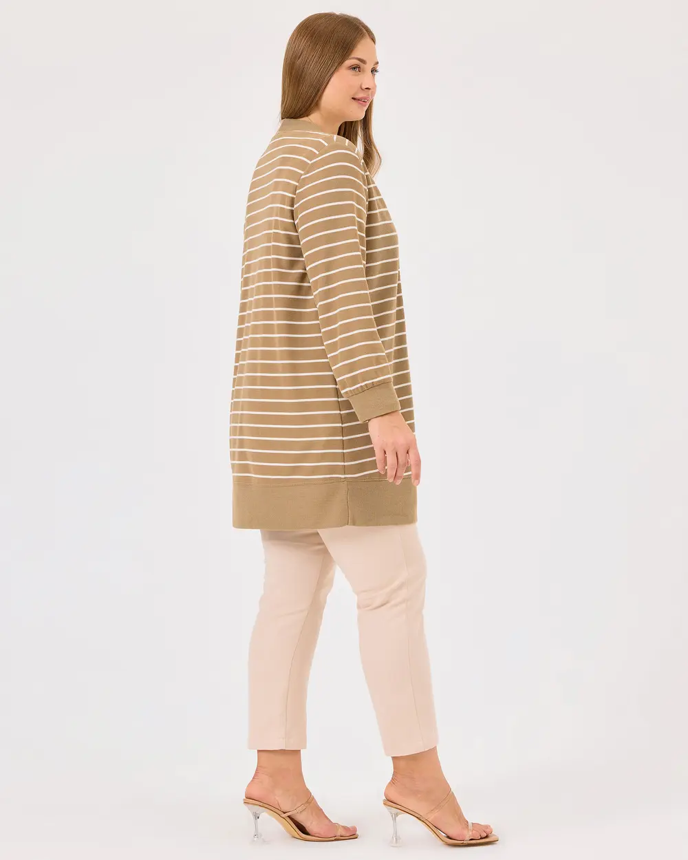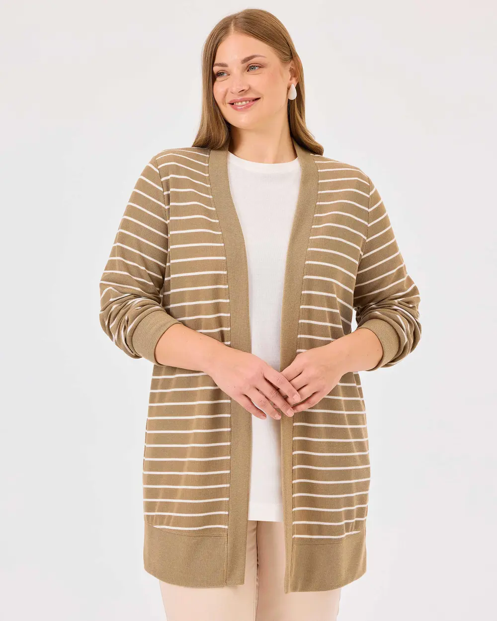 Büyük Beden Çizgili Üst Takım, modern çizgili tasarımı ve rahat kesimiyle şıklığınızı vurgular, günlük şıklığınızı tamamlayan ideal bir seçimdir.