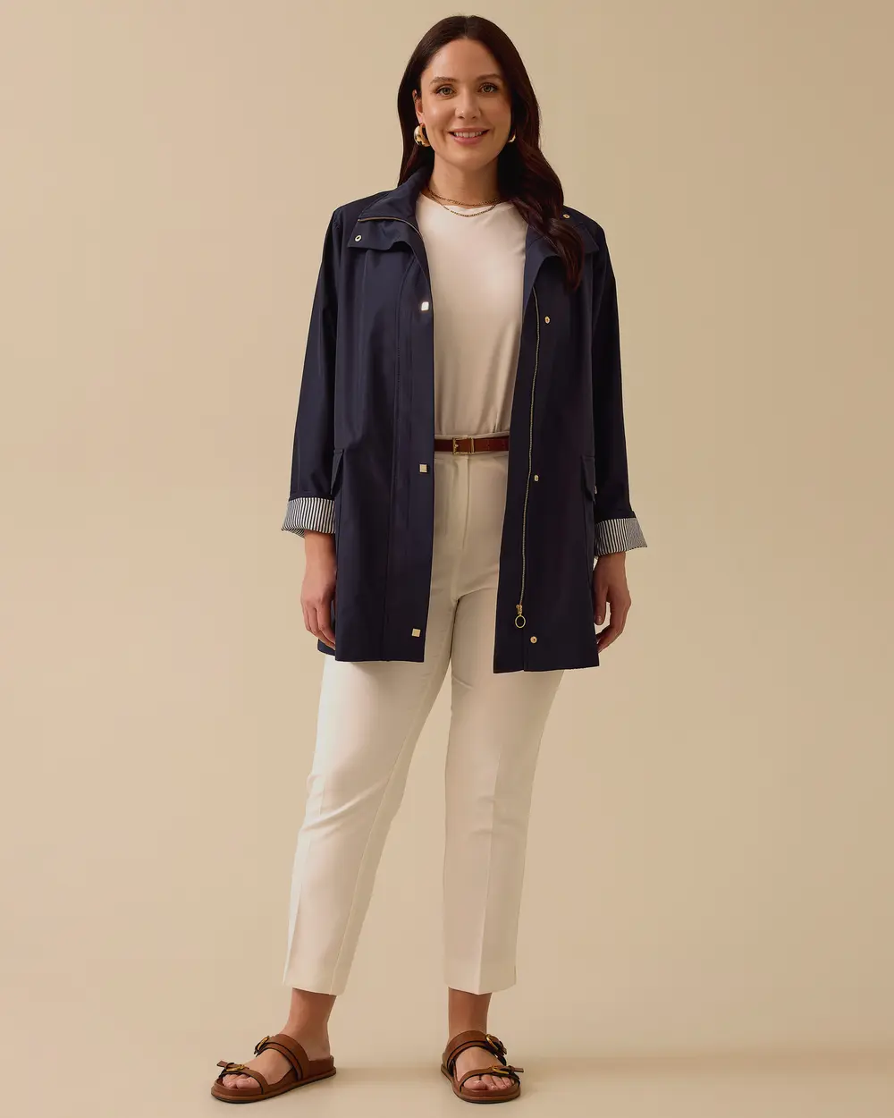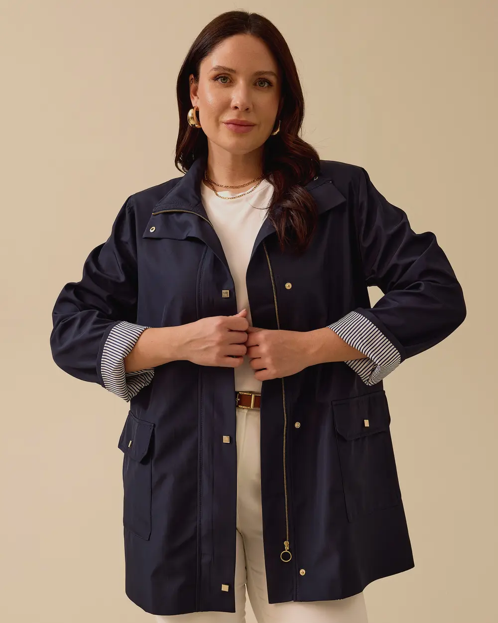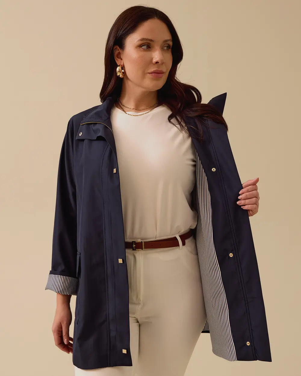 Büyük Beden Şerit Astarlı Cepli Trençkot, çizgili astarı ve kullanışlı cepleriyle şıklık ve fonksiyonelliği bir araya getirir. Hafif yapısıyla mevsim geçişleri için idealdir.