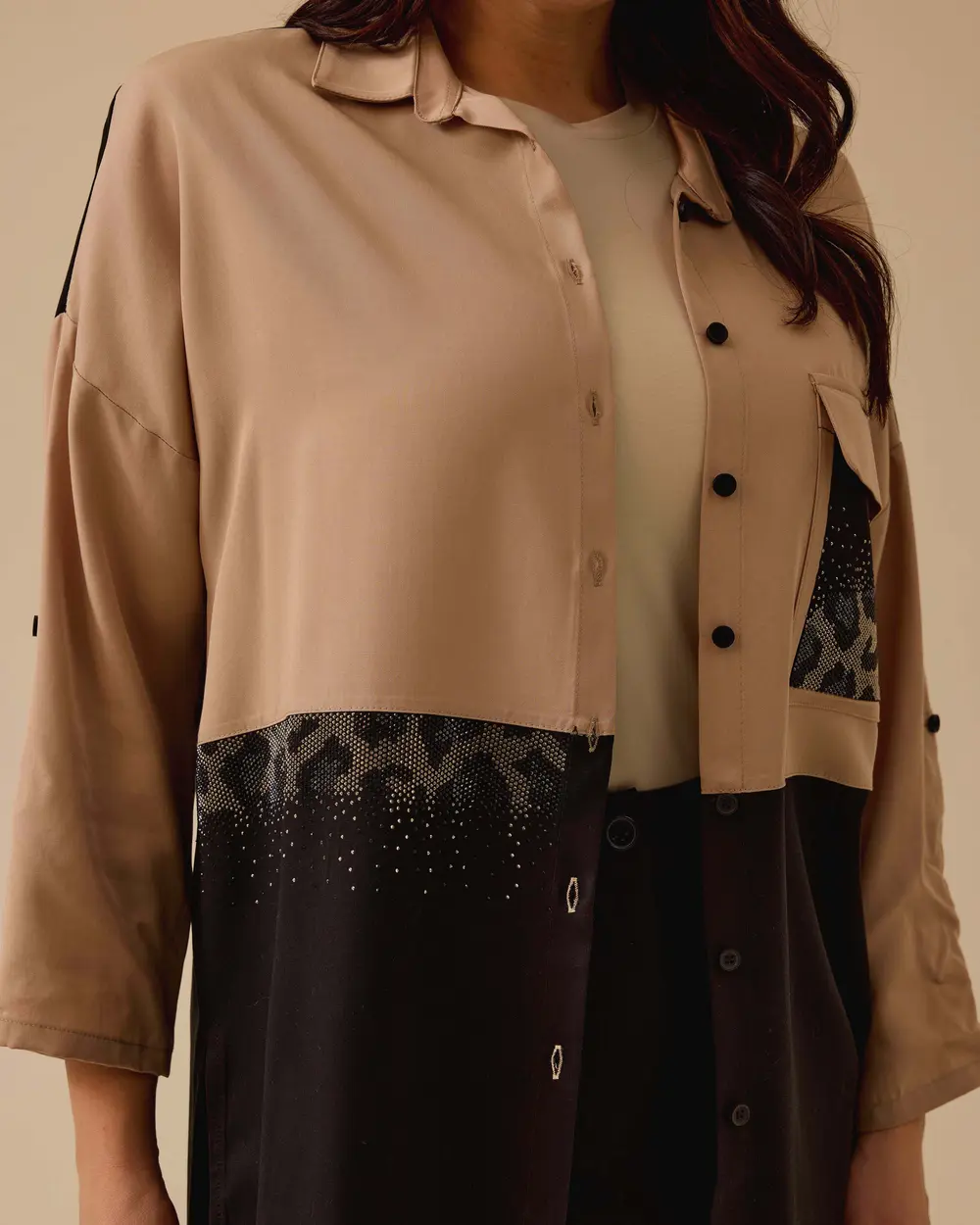 Büyük Beden Taş Detaylı Düğmeli Tunik, şık taş detayları ve düğmeli tasarımıyla göz alıcı bir görünüm sunar. Hem özel günlerde hem de günlük kullanım için idealdir.