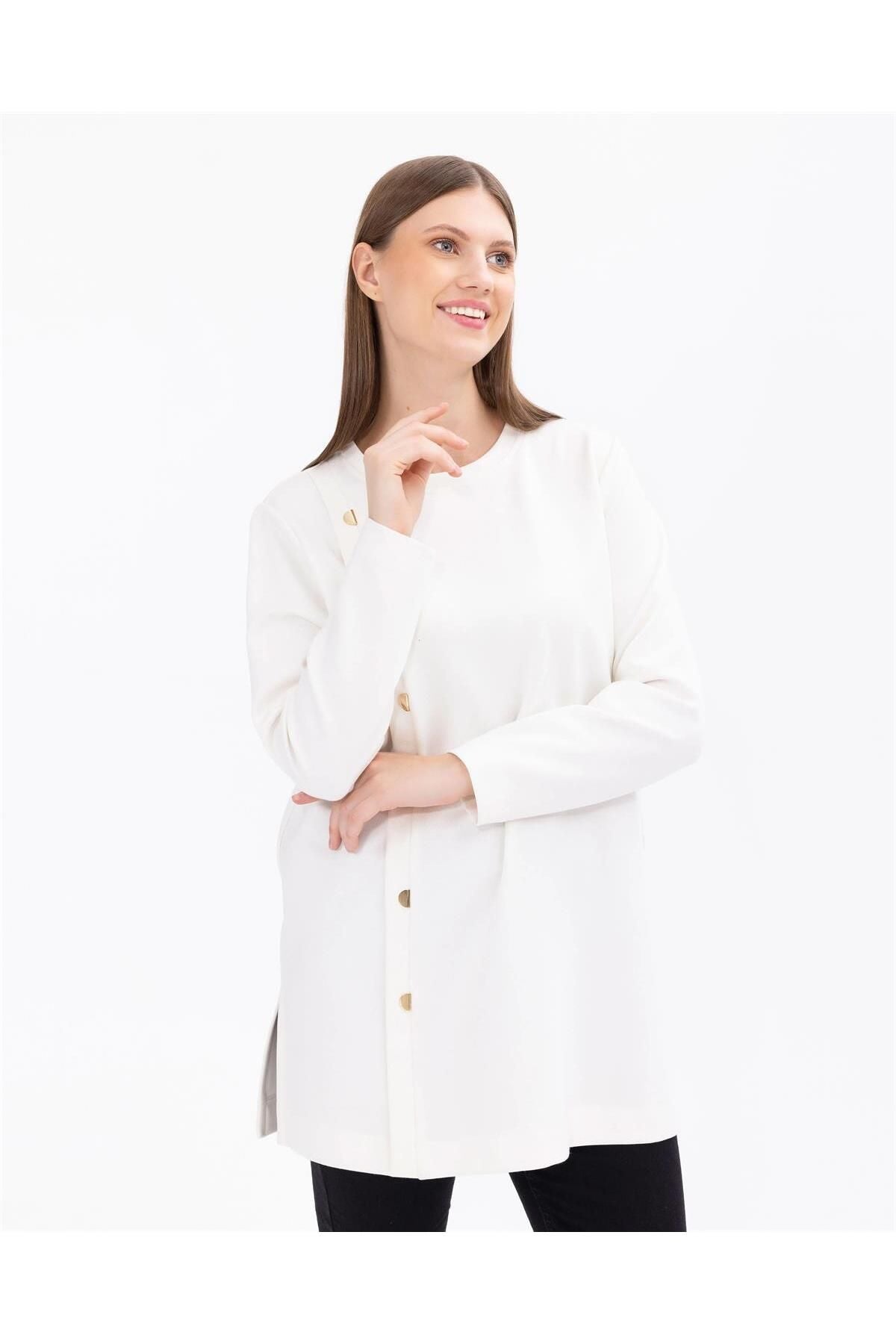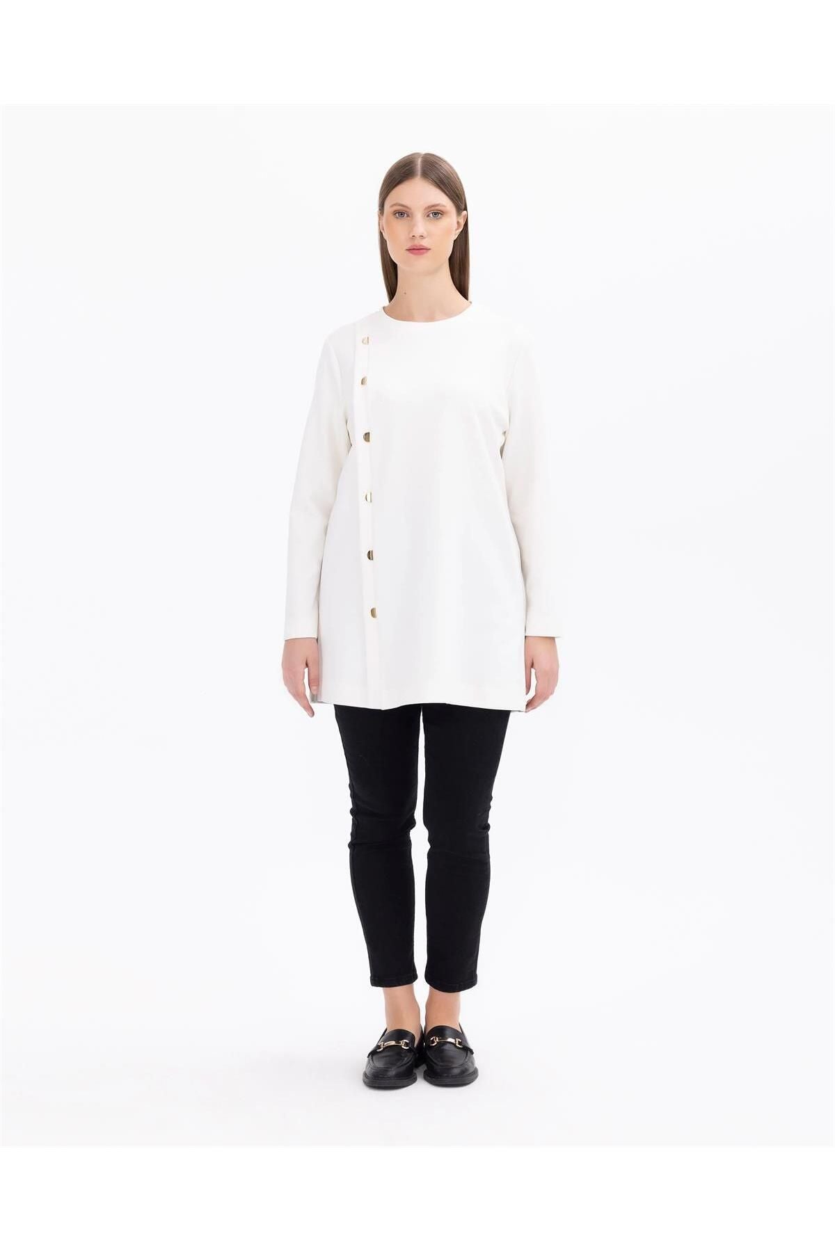 Büyük beden düğme detaylı sıfır yakalı tunik, şıklığı ve konforu bir araya getiren mükemmel bir seçenektir. Zarif...