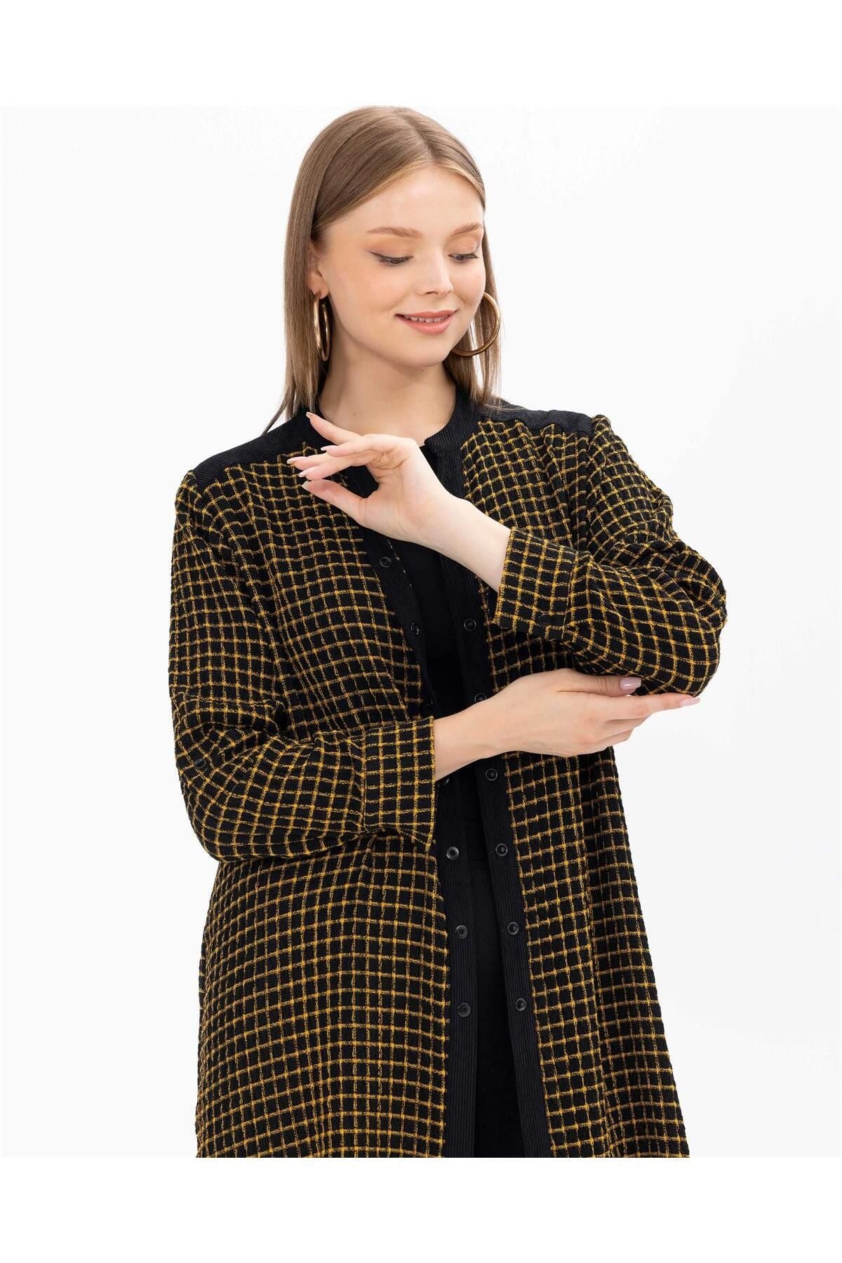 Bu büyük beden tunik, kareli deseni ve gofre kumaşı ile hem şık hem de rahat bir seçenek sunuyor. İnce detayları ve geniş kesimi, günlük giyimden özel anlara kadar her durum için mükemmel bir stil sağlar. Büyük beden giyimde şıklık ve rahatlık arayanlar için idealdir.:; Ürün Özellikleri:; Hakim Yaka; Uzun Kol; Takma Kol; Düz Kesim; Basen Altı Boy; Kareli; Gofre; Düz Form; Kumaş İçeriği:20 Akrilik 20 Viskoz 60 Poliester; Örnek Beden: 44; Manken Boyu 180; Ölçüler: 102 / 80 / 104;