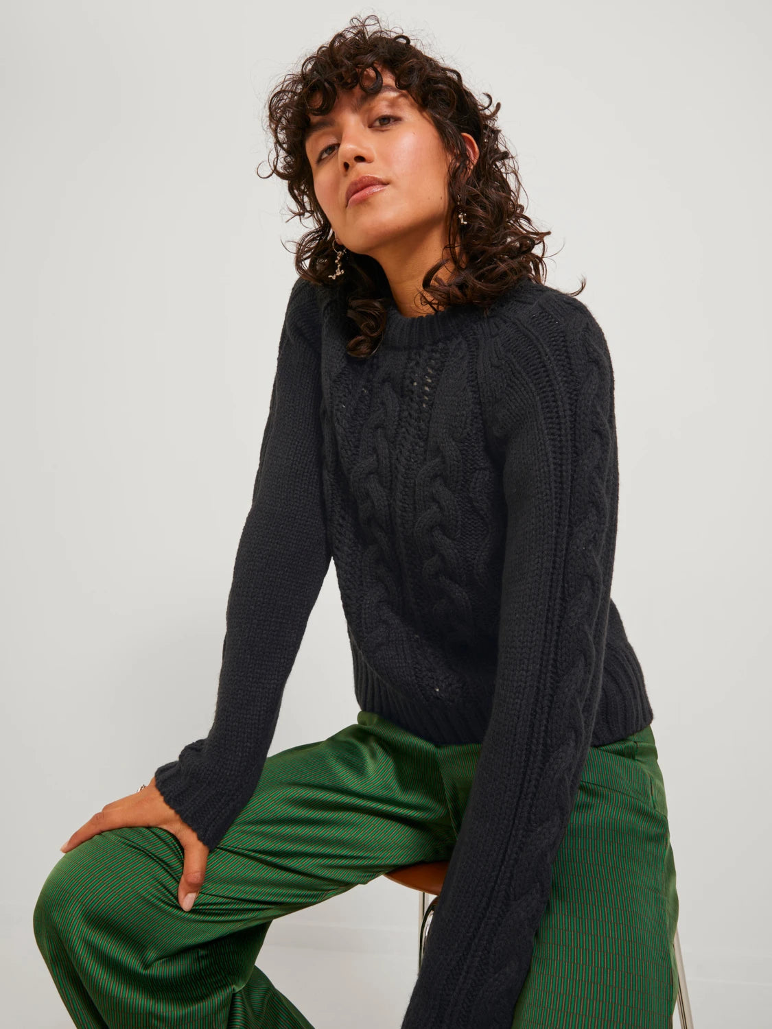 Bu basic örgü gardırobunuzdaki her şeyle uyumludur; Kablo örgüsü, zamana meydan okuyan bir görünüm, yumuşak ve sıcak...