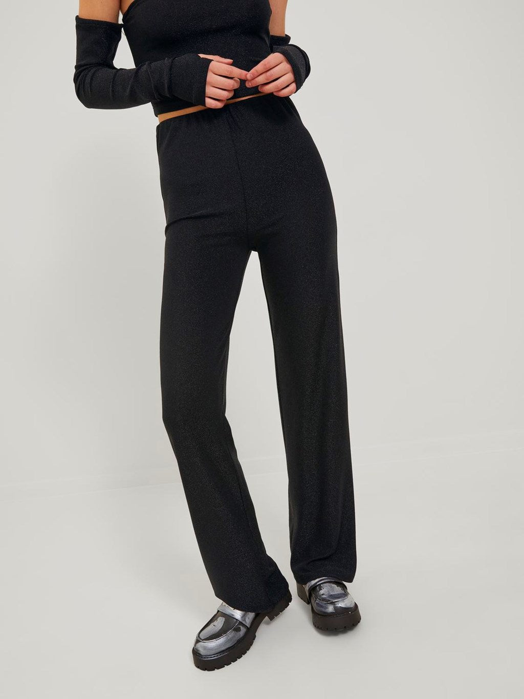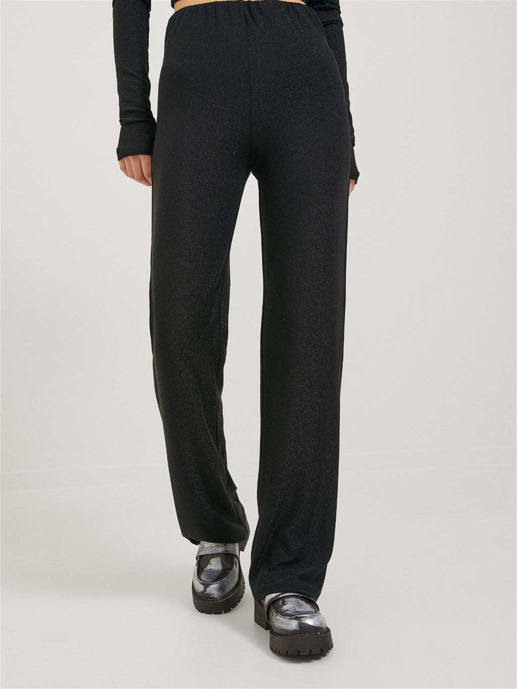 Jersey rahatlık sağlayan hafif ve esnek bir kumaştır; - Ürün Tipi : Pantolon; - Bel : Yüksek bel; - Uzunluk/boyut : Tam boy; - Ekstra detaylar: Elastik bel bandı; - Kalıp: Gevşek Kalıp; %70 Pamuk, %30 Metalik Elyaf, %5 Elastan, %65 Naylon;
