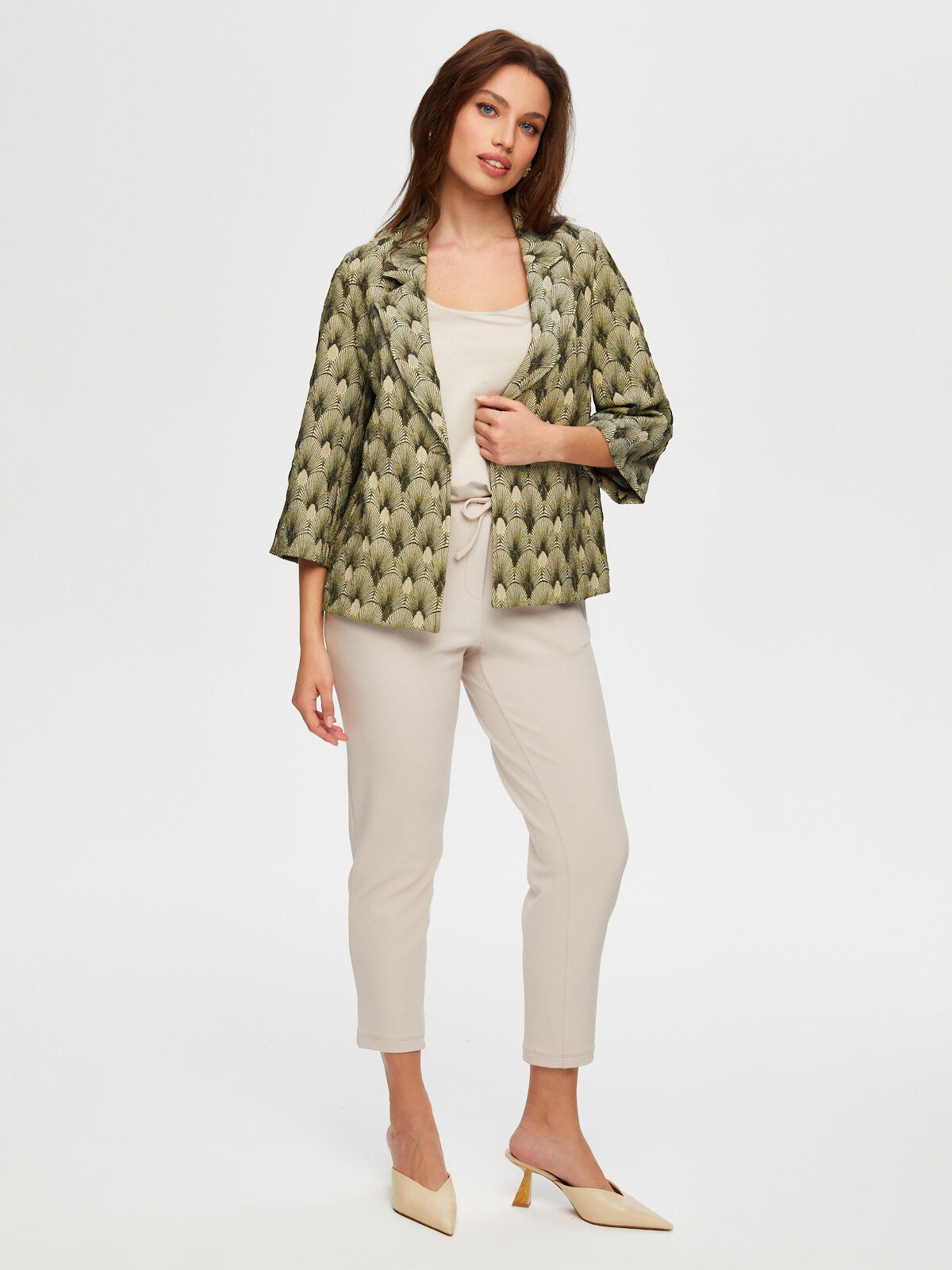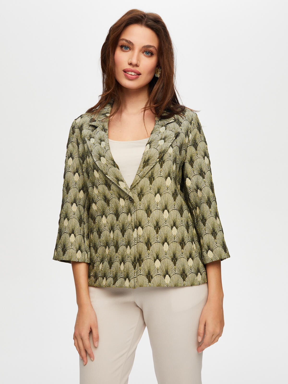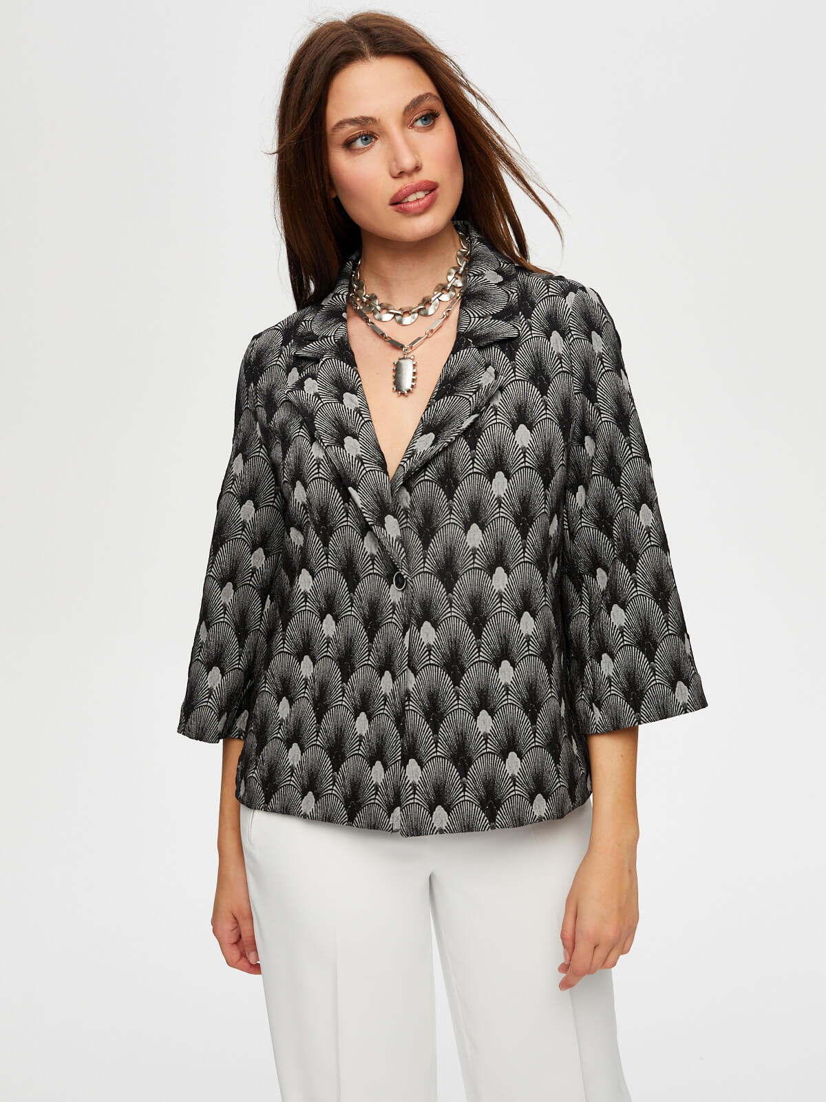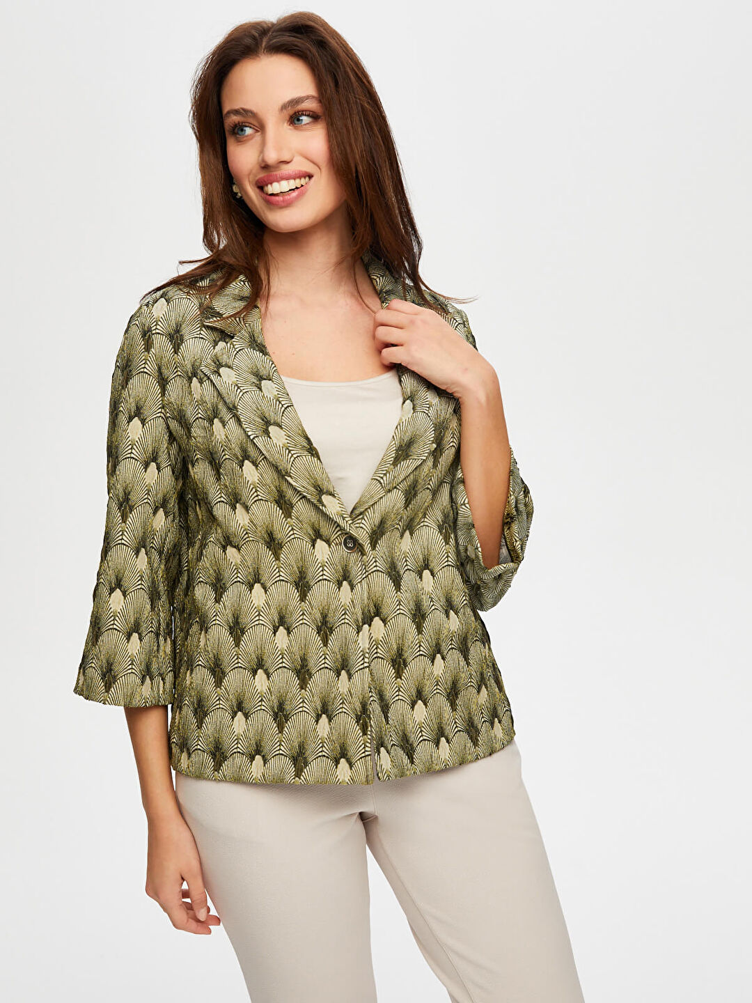 Ürün Adı : Kendinden Jakarlı 3/4 Kol Ceket %75 Polyester %23 Viskon %2 Elastan