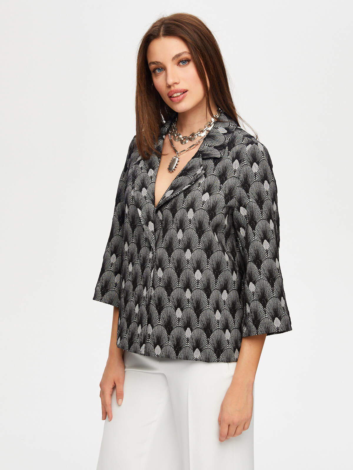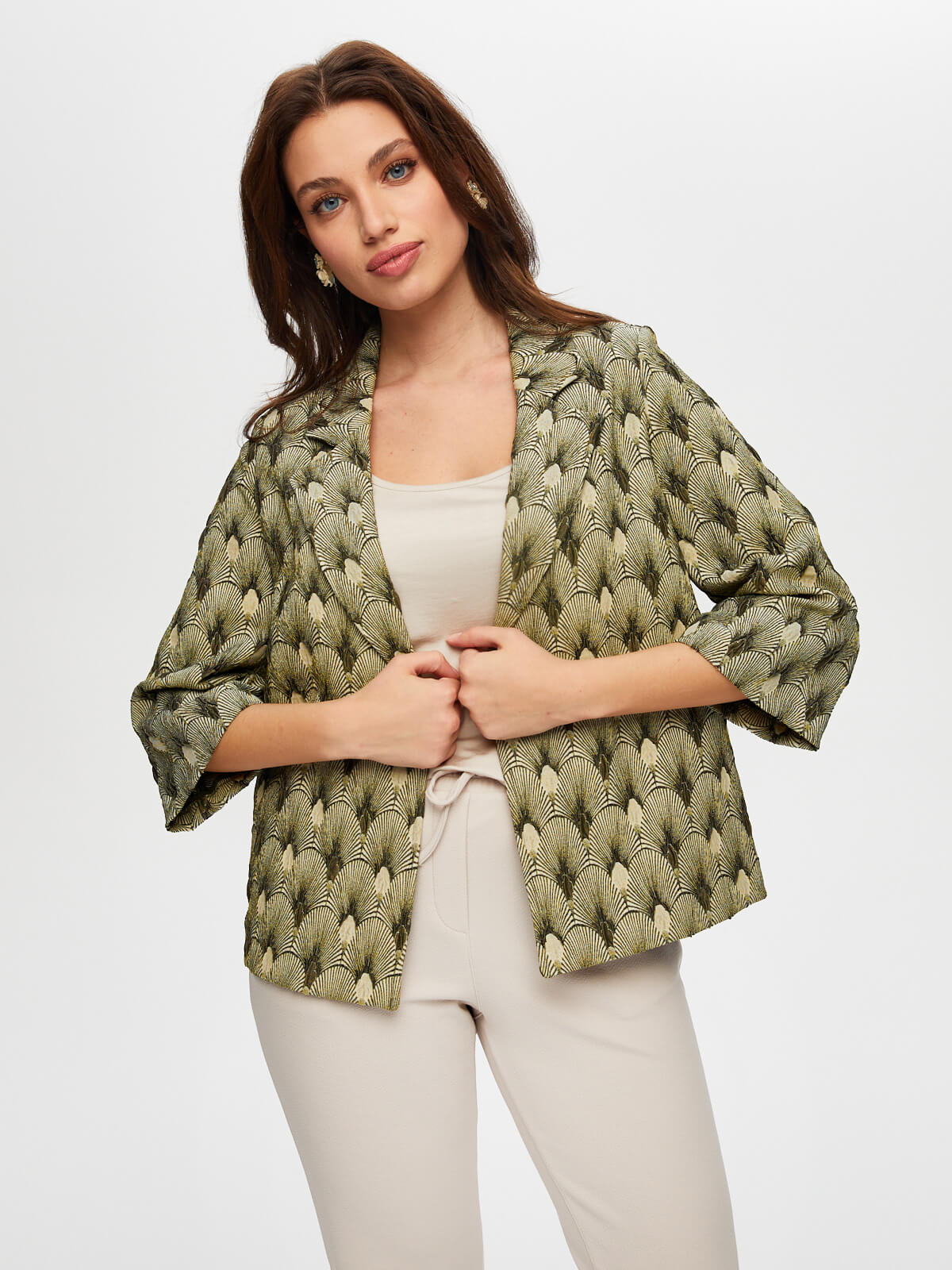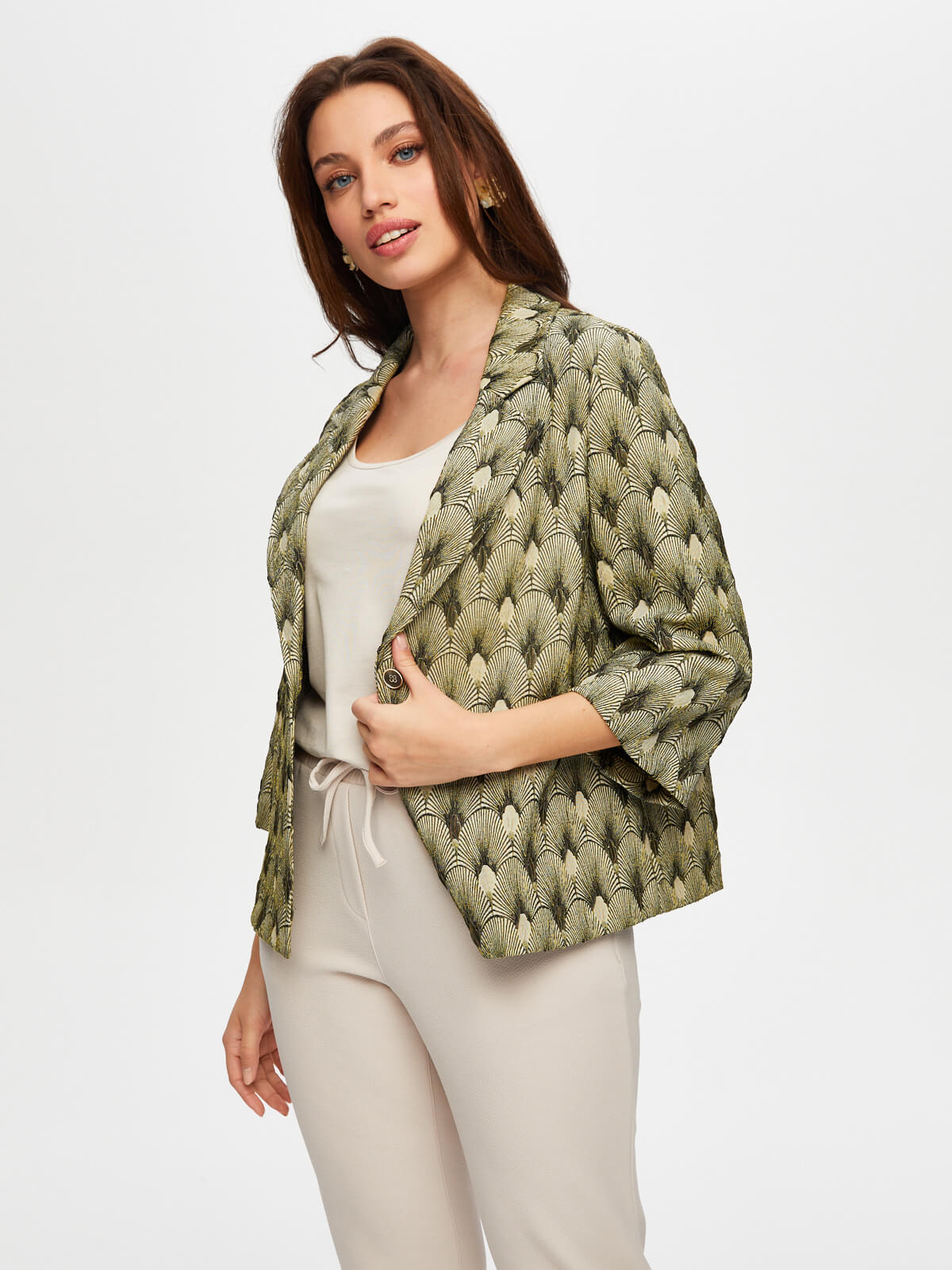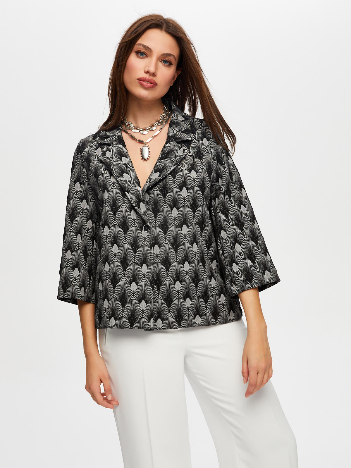 Ürün Adı : Kendinden Jakarlı 3/4 Kol Ceket %75 Polyester %23 Viskon %2 Elastan