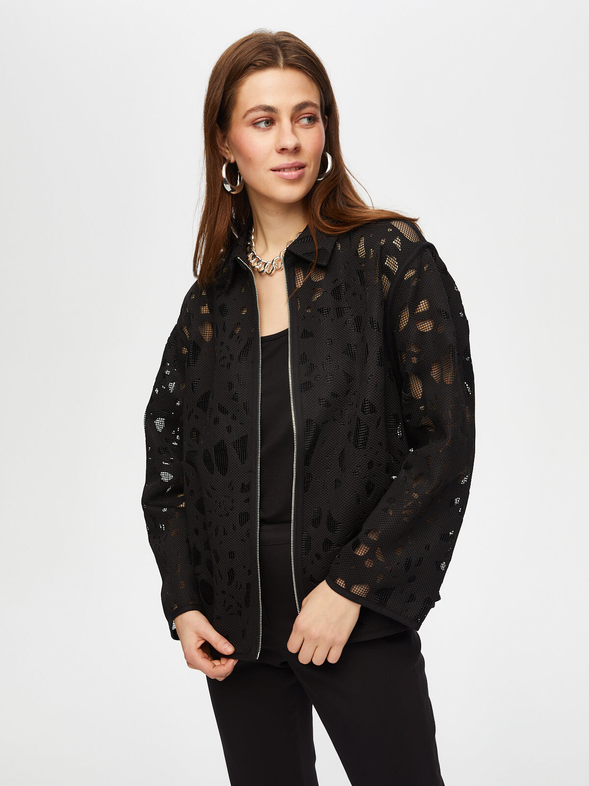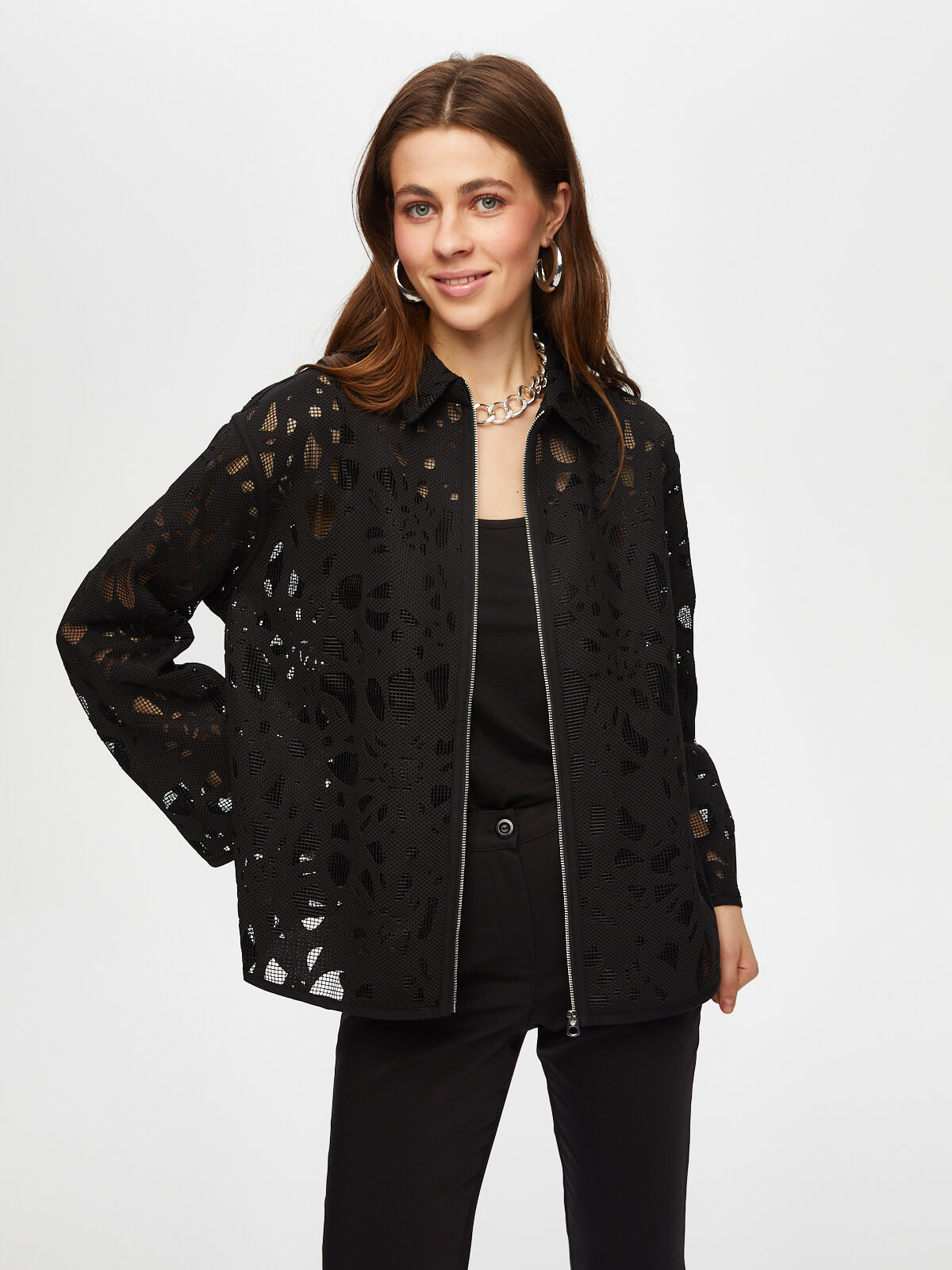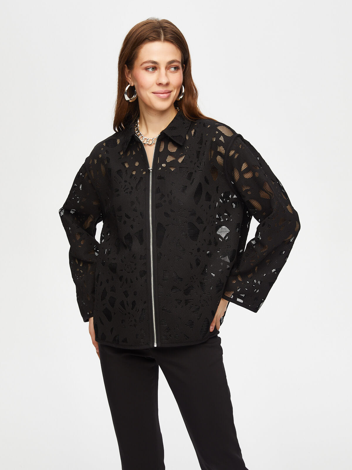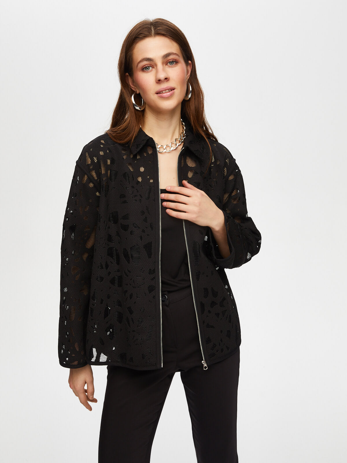 Ürün Adı : Kendinden Jakarlı Rahat Form Astarsız Ceket S25CKT035%100 Polyester