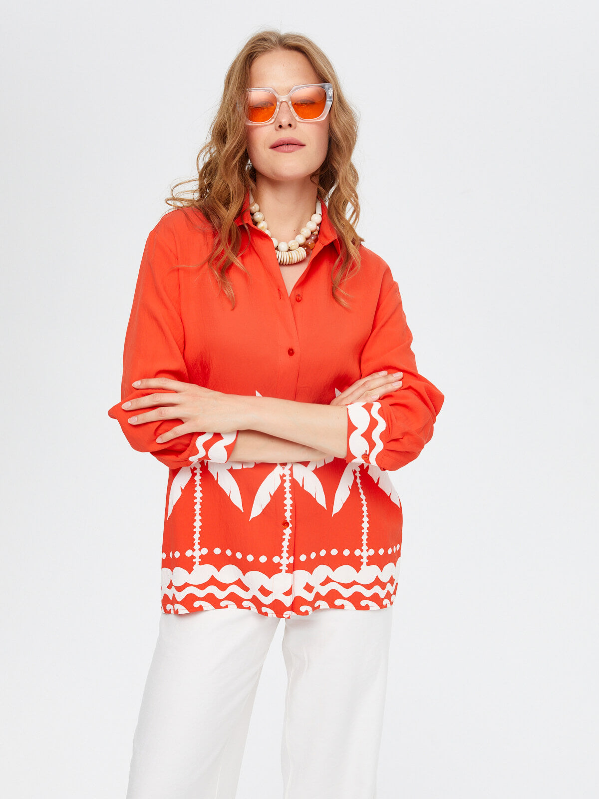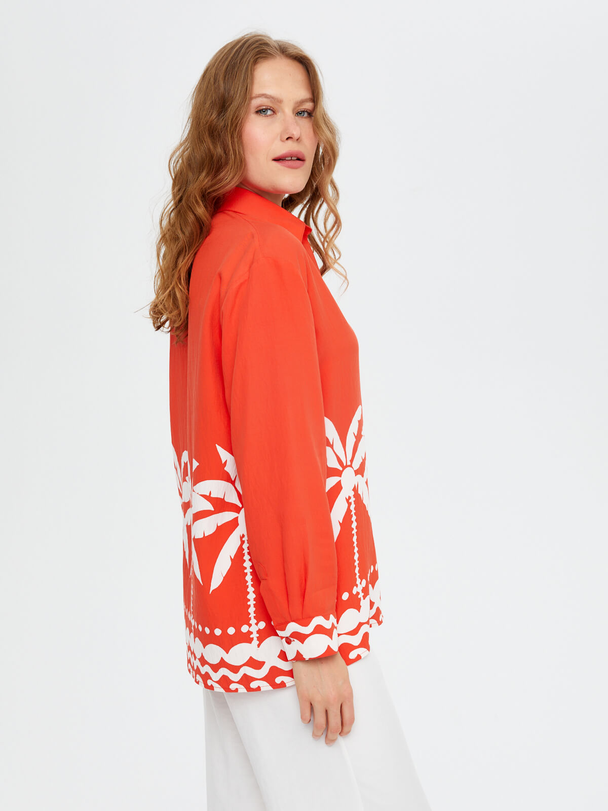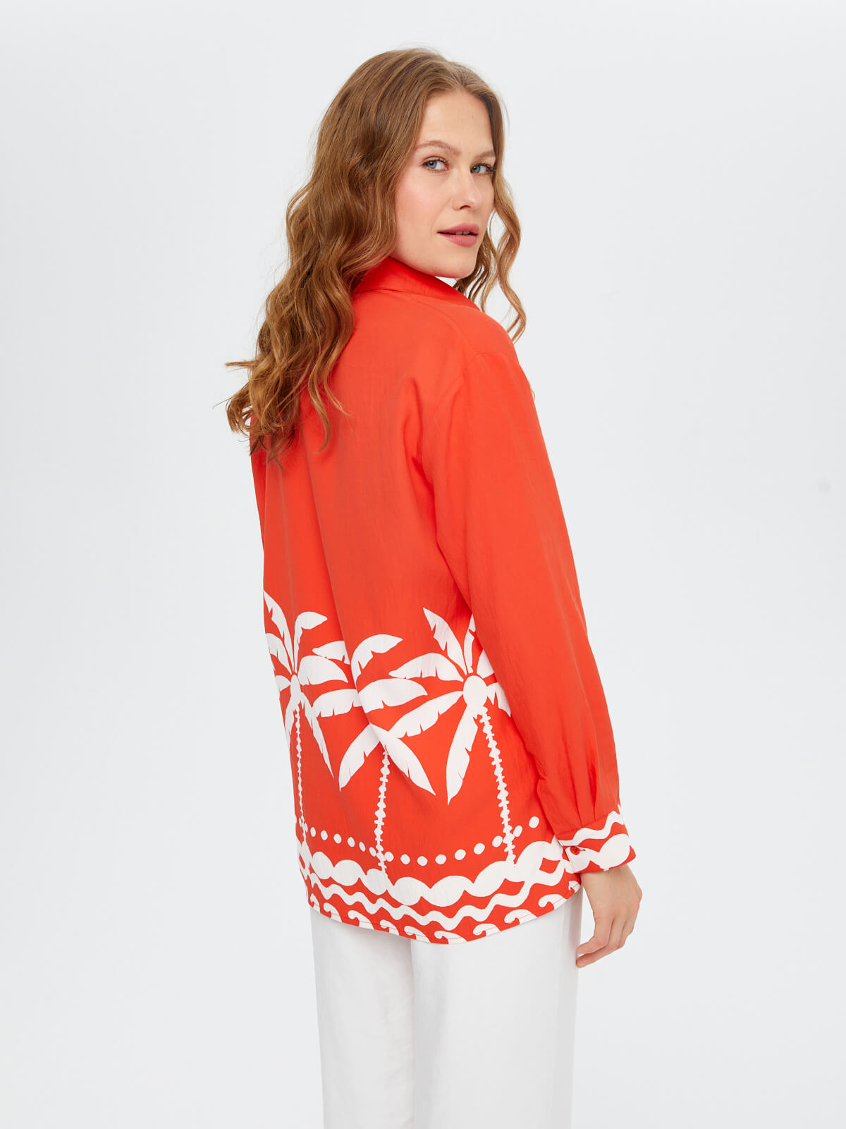 Kadın Resort Eteği Palmiye Desenli Monochrome Tunik Faik Sönmez