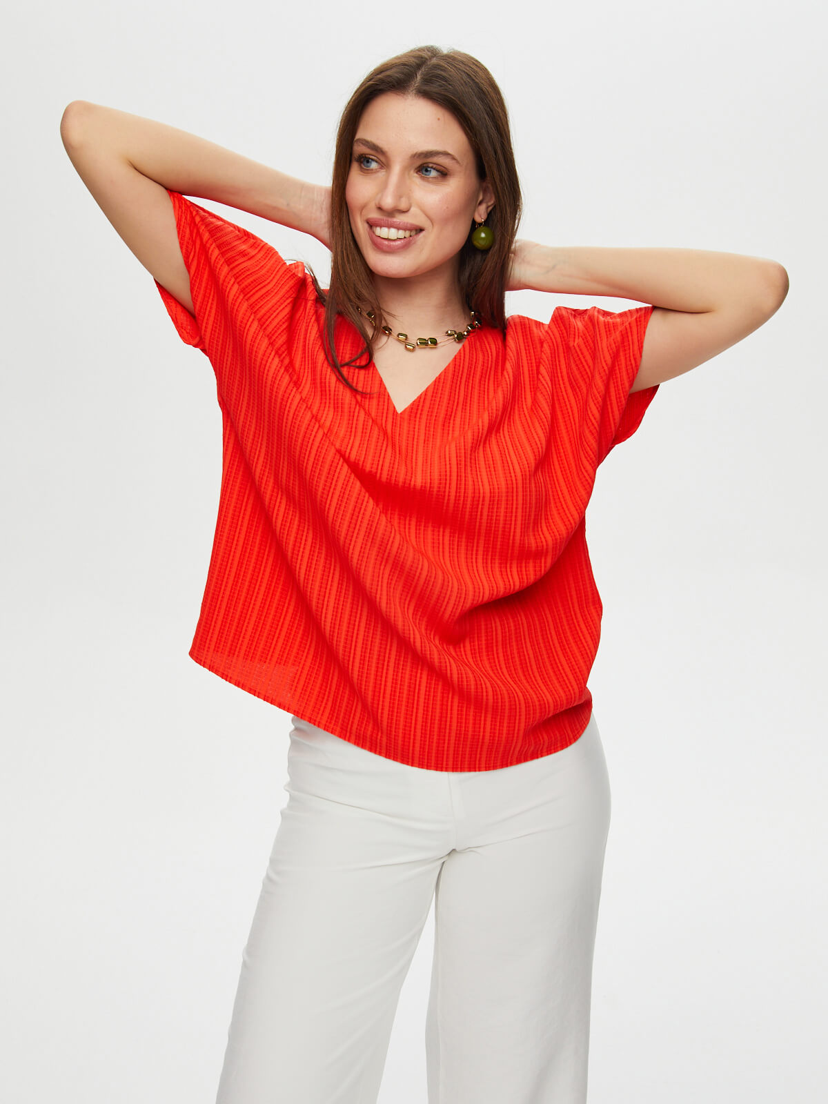 Kısa Kollu Kendinden Dokulu Bluz Faik Sönmez