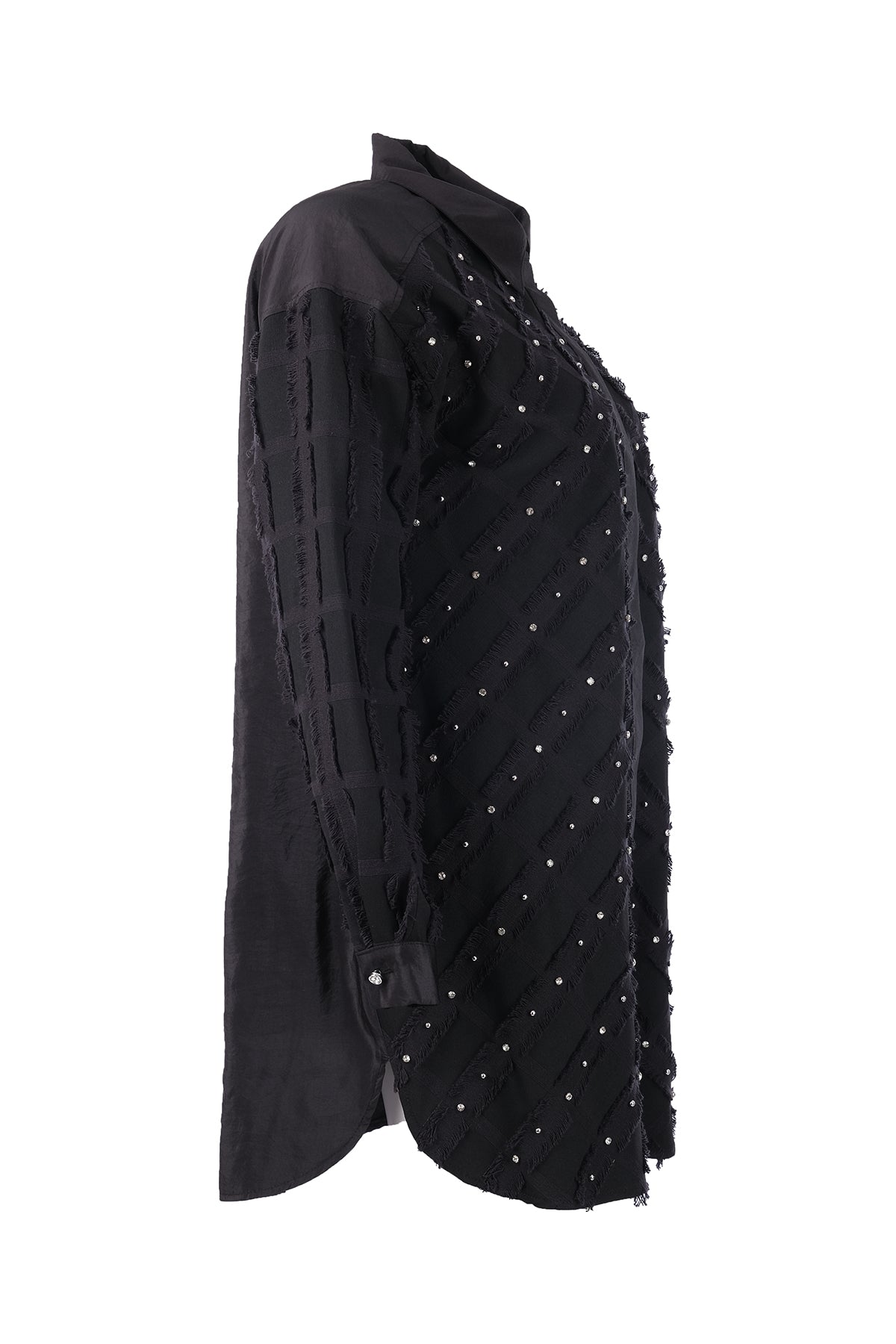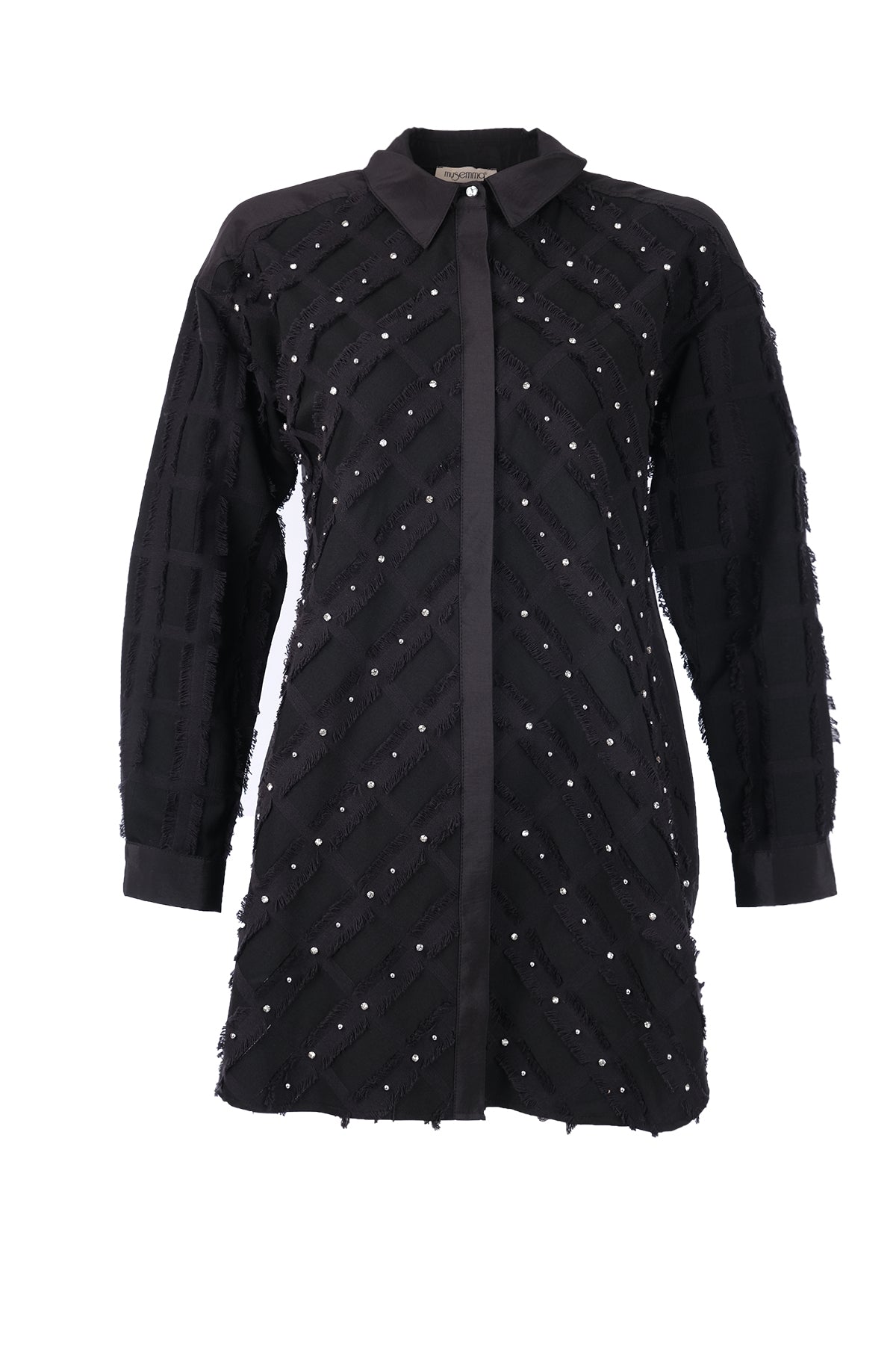 ÜRÜN AÇIKLAMASI:ithal dokuma kumaş Yapıştırma taş dizayn Gizli düğme kapamalı şık gömlek Tam kalıp Gömlek boyu 85 cm