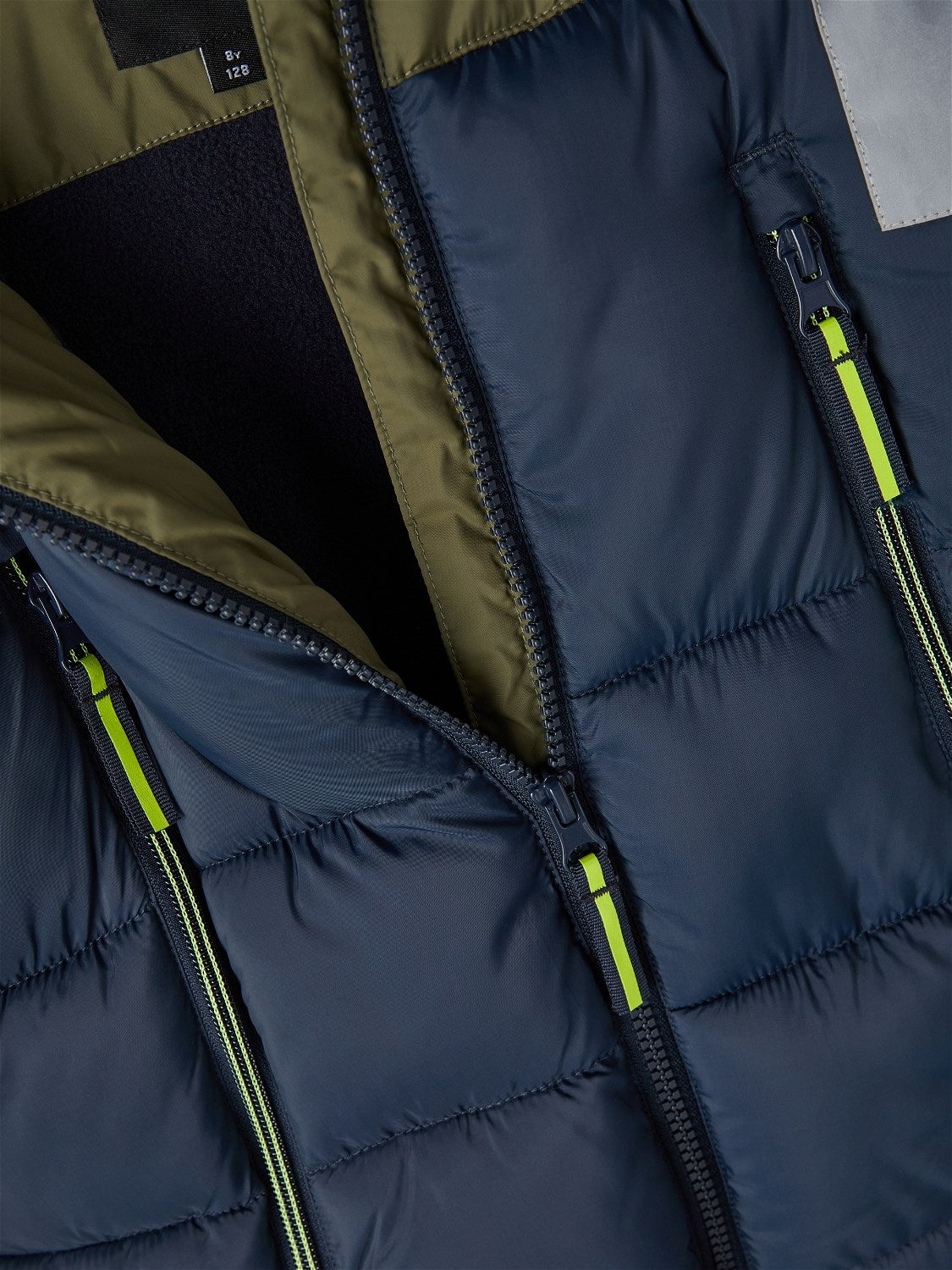 Satış Açıklaması:; Renk ve serin bir dokunuş katan modaya uygun dış giyim stilleri ile çocuğunuzu her mevsime hazırlayın.; Dokuma kumaş, temiz ve klasik bir görünüm için belirgin bir çapraz desene ve hafif dokulu bir yüzeye sahiptir.; İSİM İşlevselliğe ve güvenliğe özel önem vererek 1986 yılından beri kaliteli dış giyim üretmektedir. Çocuklar için rahat dış giyime dönüştürdüğümüz güncel moda trendlerinden haberdar oluyoruz.; -Detay Tipi: balon ceket; - Boyun: Başlık; -Kol: Uzun Kollu (L/S); - Manşetler: Elastik manşetler; - Kapanış: Fermuar kapatma; - Cepler: Fermuarlı ön cepler; - Ekstra detaylar: Rozet, Güvenlik için çıkarılabilir başlık; Kompozisyon:% 100 Polyester;