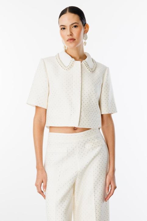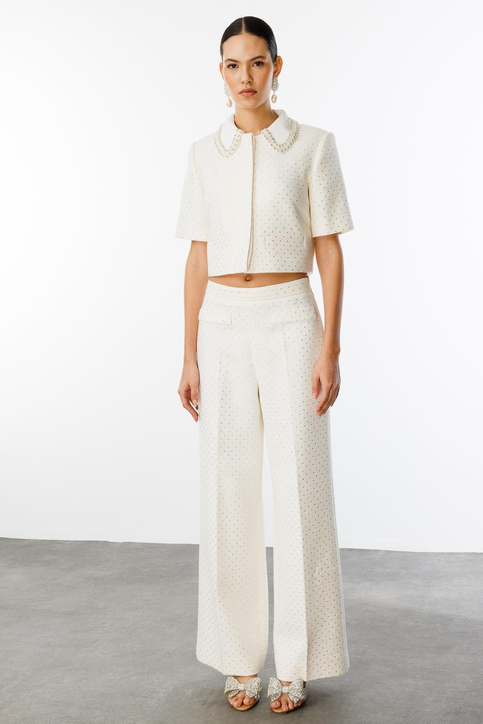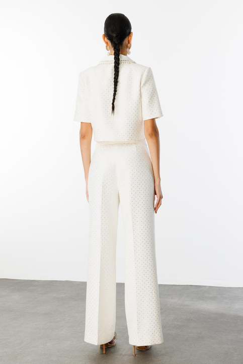 Göz Kamaştıran Detaylar: Bebe yaka ve pantolon üzerindeki taş detayları, her ortamda dikkatleri üzerinize çekecek.