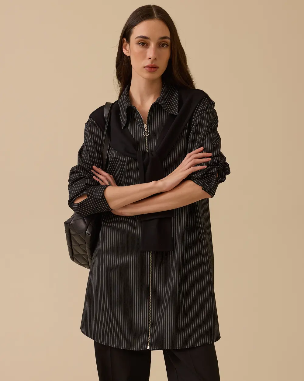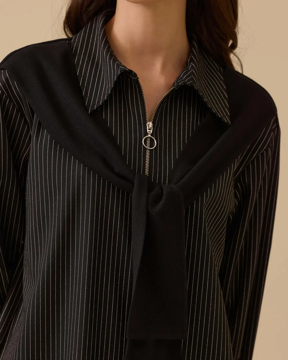 Omuz Bağlama Detaylı Çizgili Tunik, zarif çizgi deseni ve omuzdaki bağlama detayıyla modern şıklığı günlük stile taşıyan özgün bir tasarımdır.
