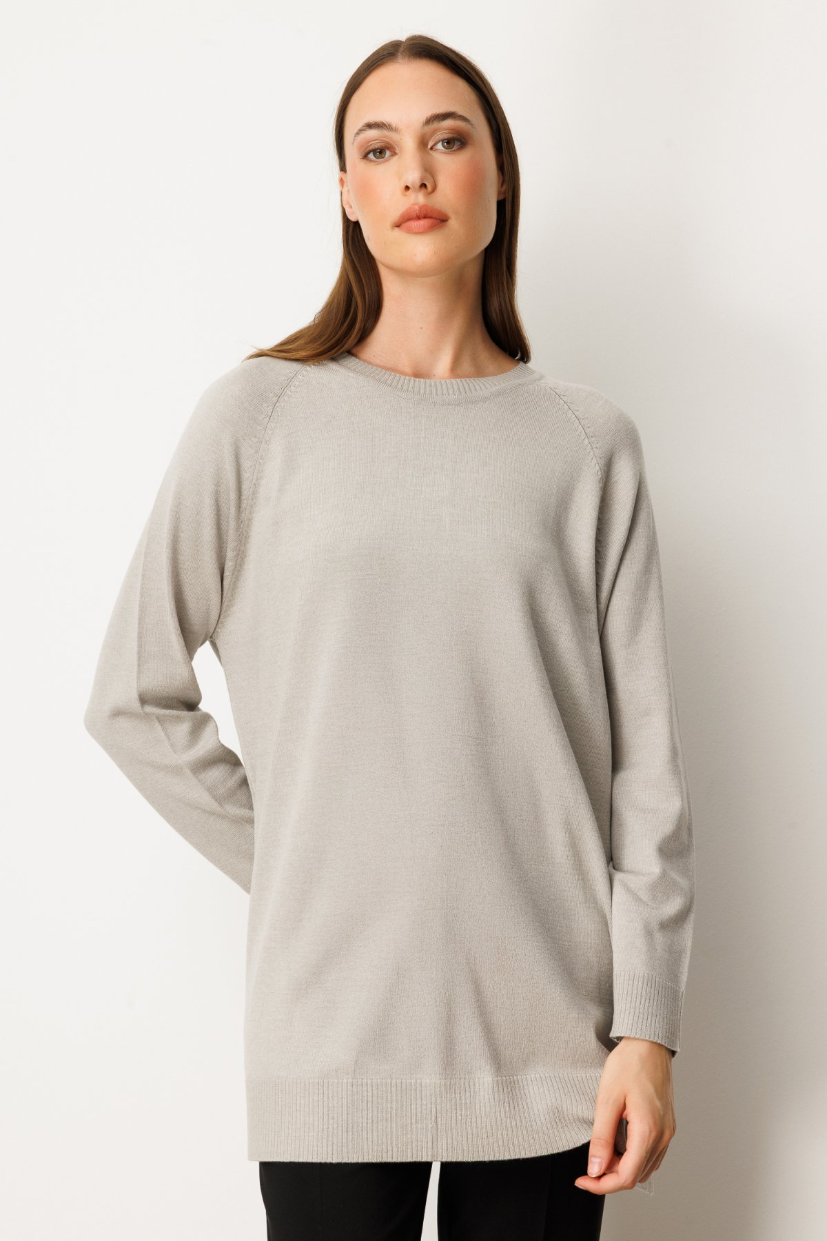 On Arkası Düğmeli Sıfır Yaka Kazak