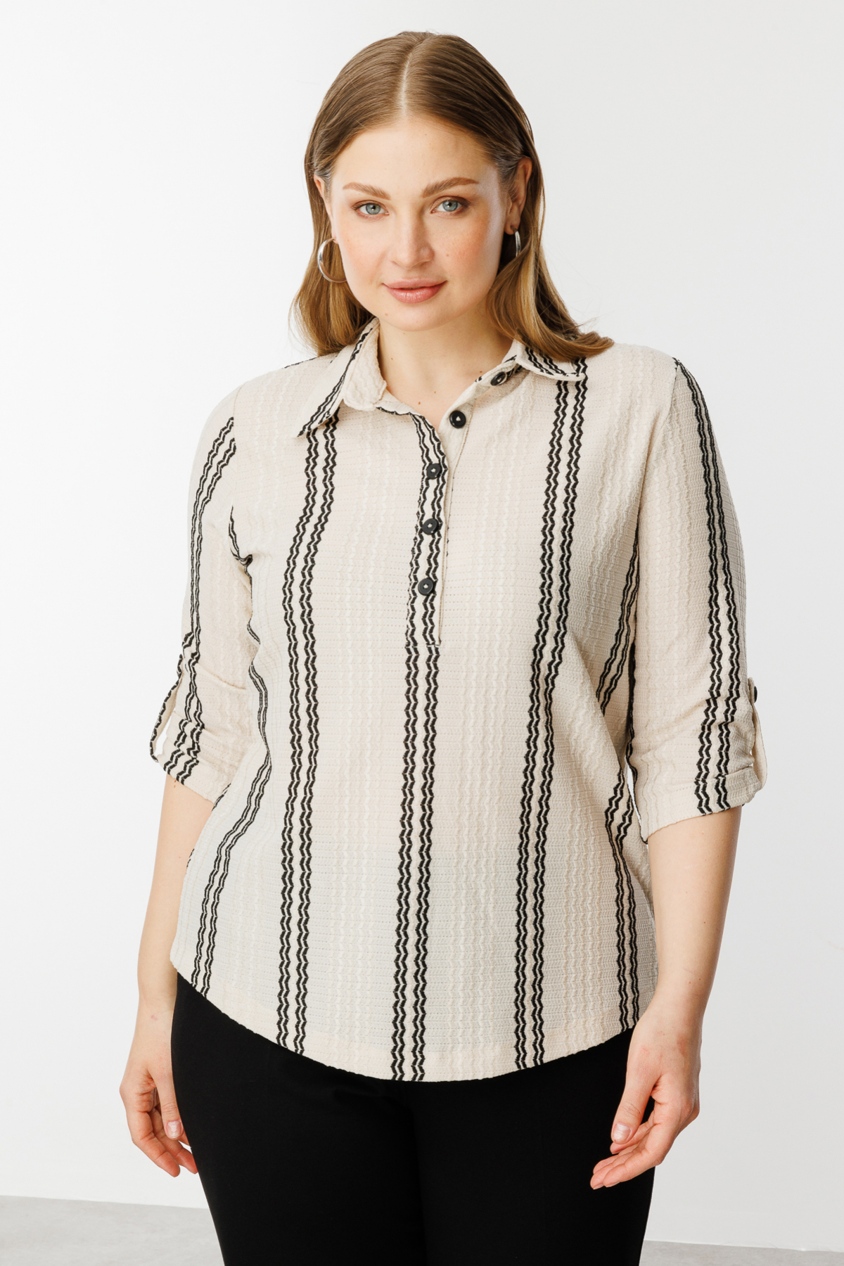 Ürün Özellikleri:Yaka kısmı düğmeli, kendinden dokulu, yarım kol, desenliÜrün Kalıbı: Büyük BedenÜrün Kalınlığı: İnceÜrün Boyu: 67 cmKumaş...