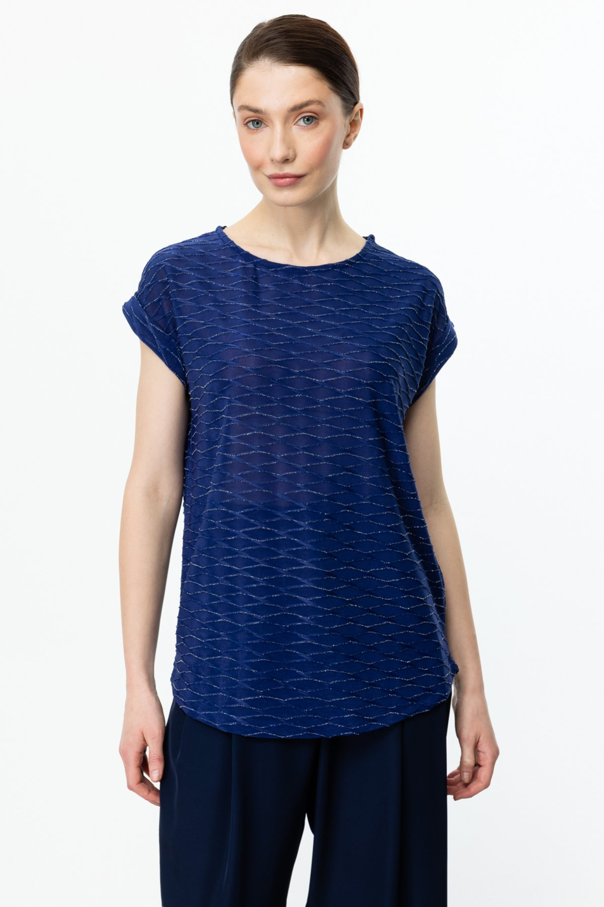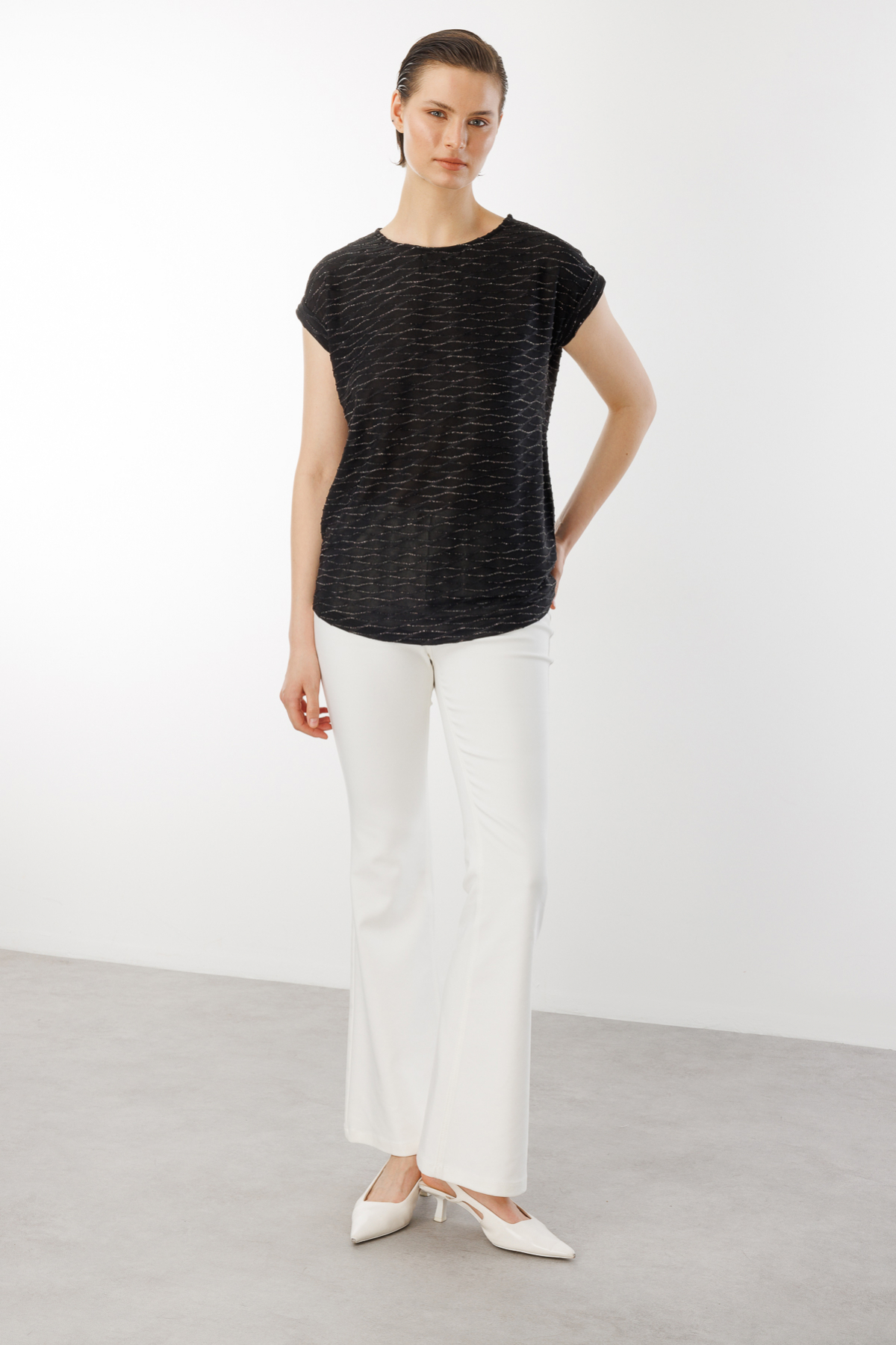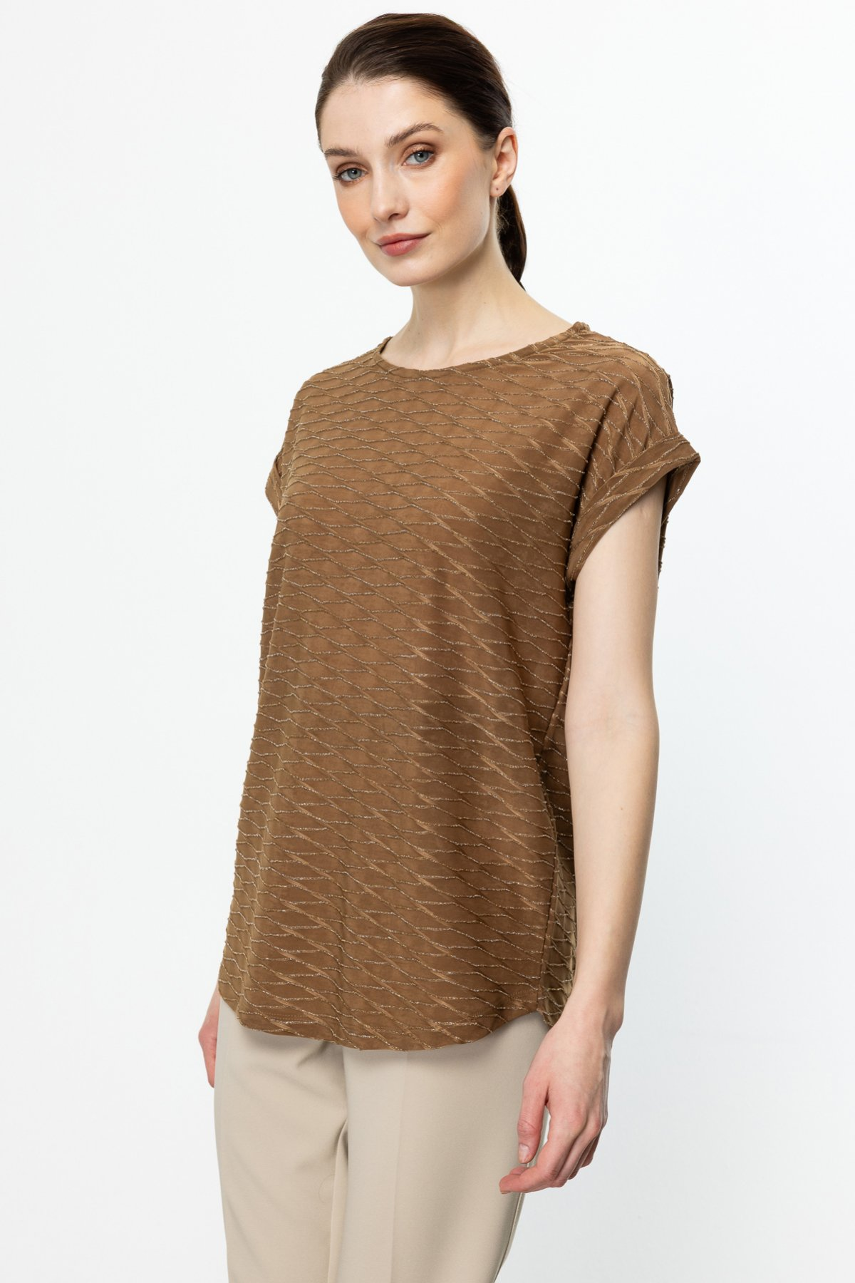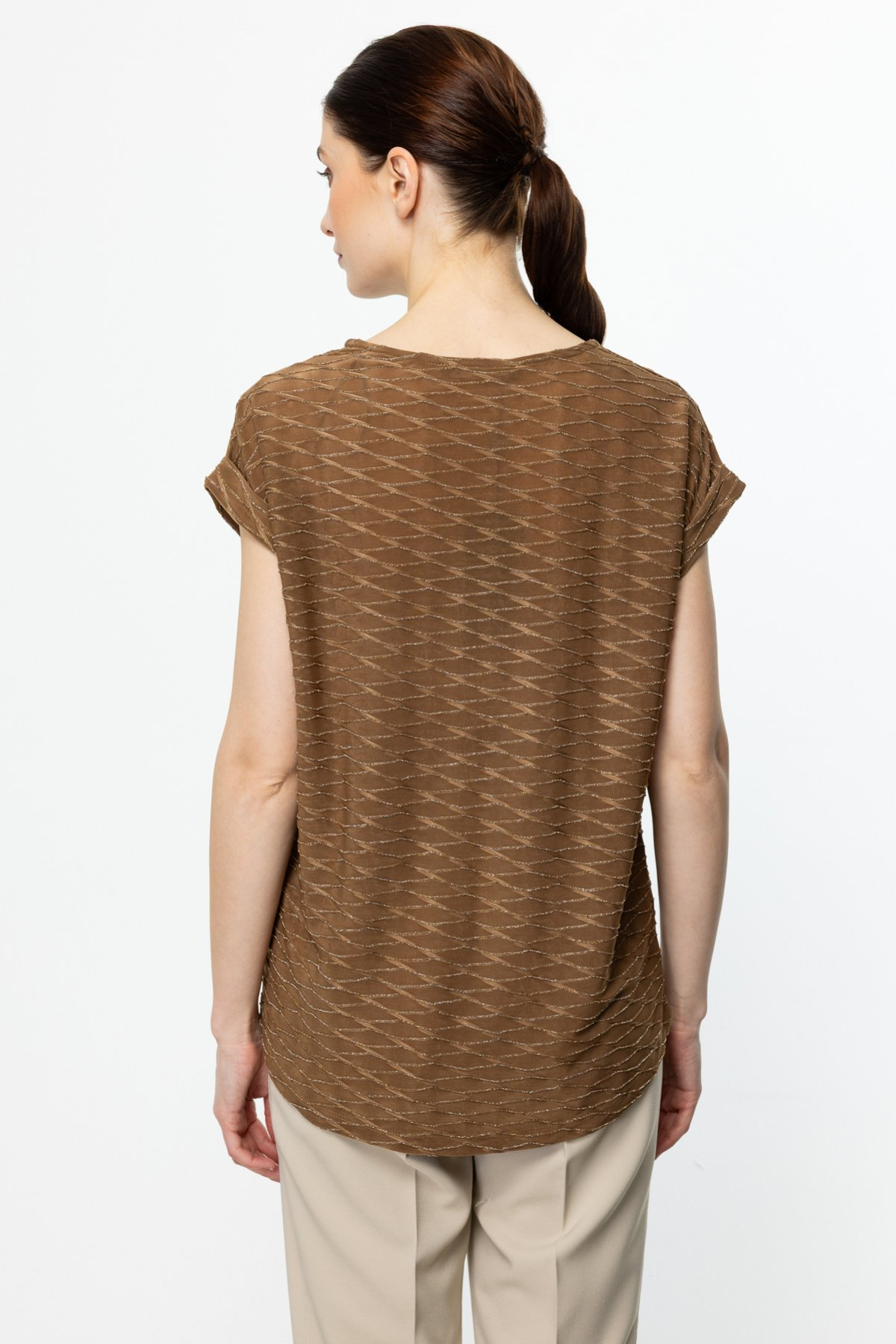Ürün Özellikleri: Sıfır yaka, kısa kollu, kendinden desenli, simli