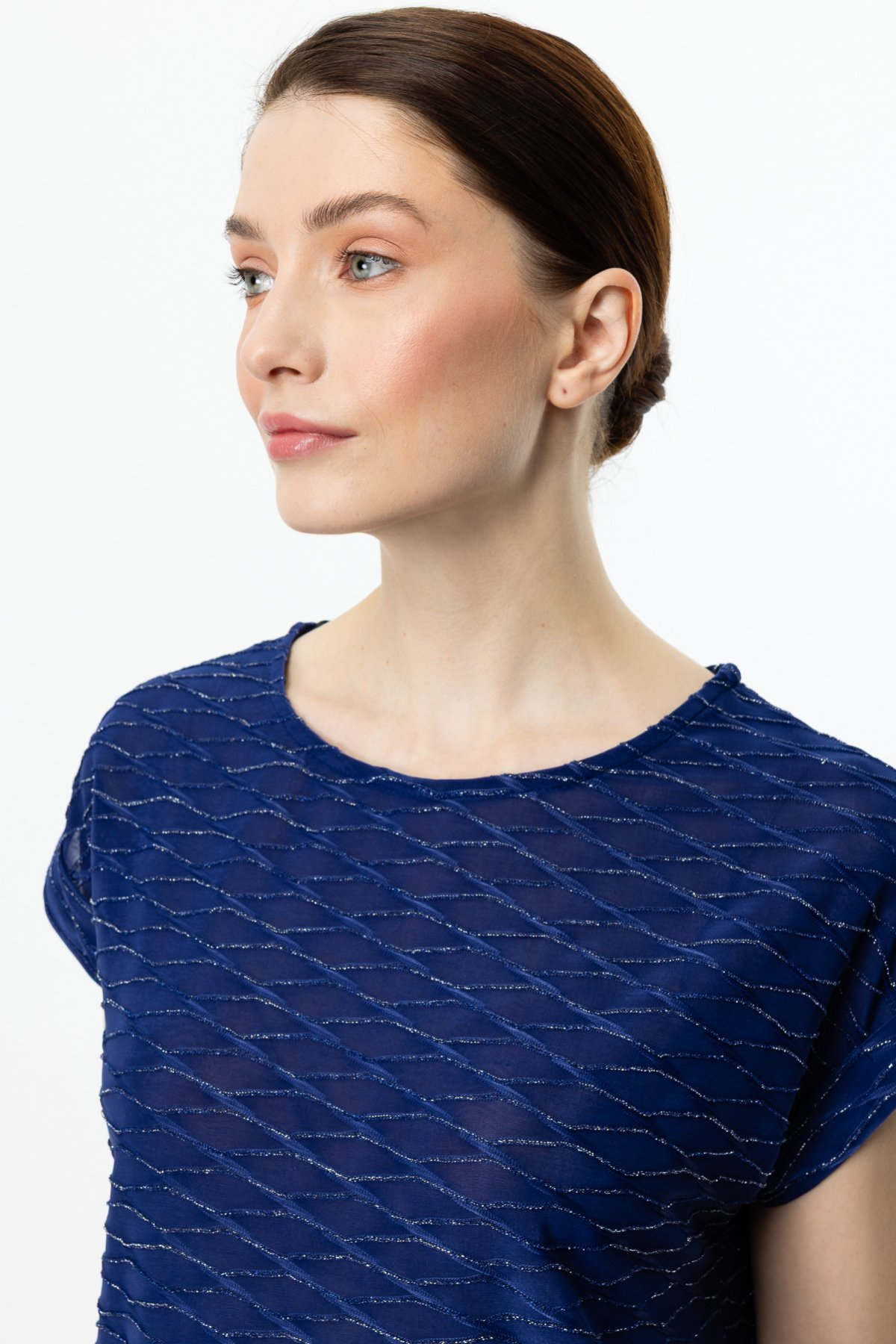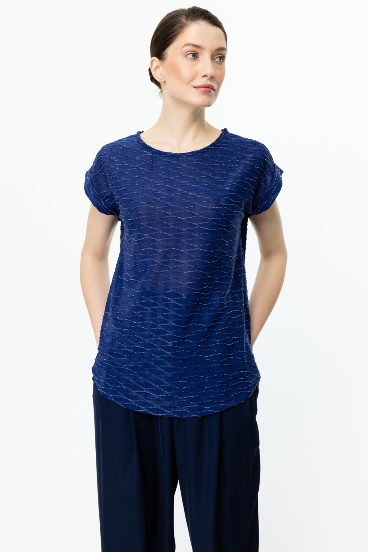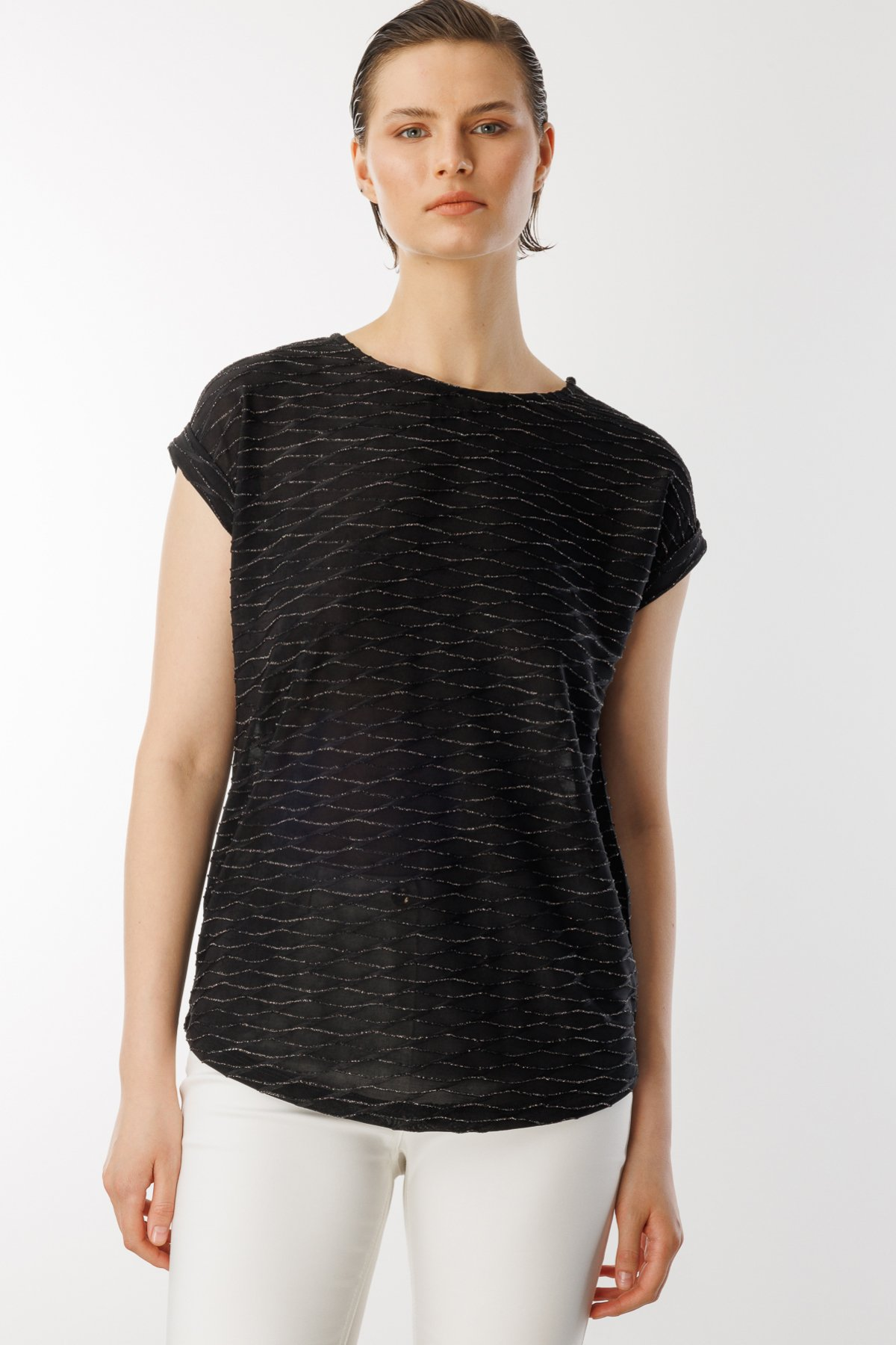 Ürün Özellikleri: Sıfır yaka, kısa kollu, kendinden desenli, simli