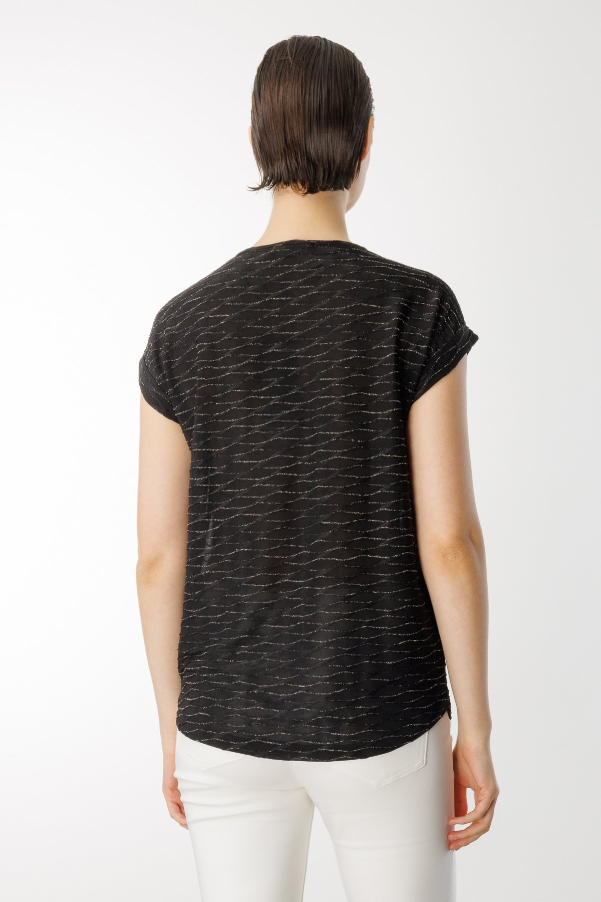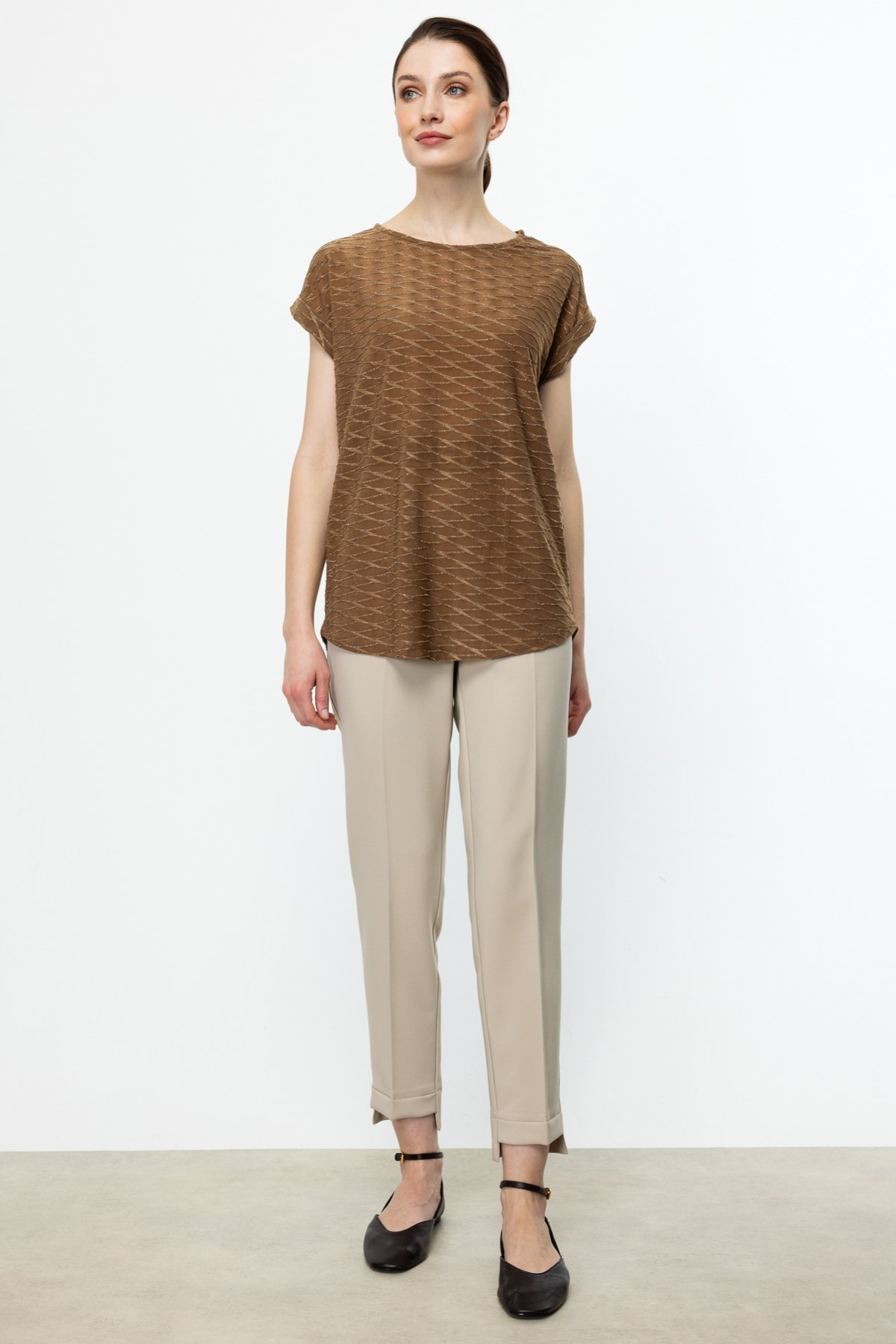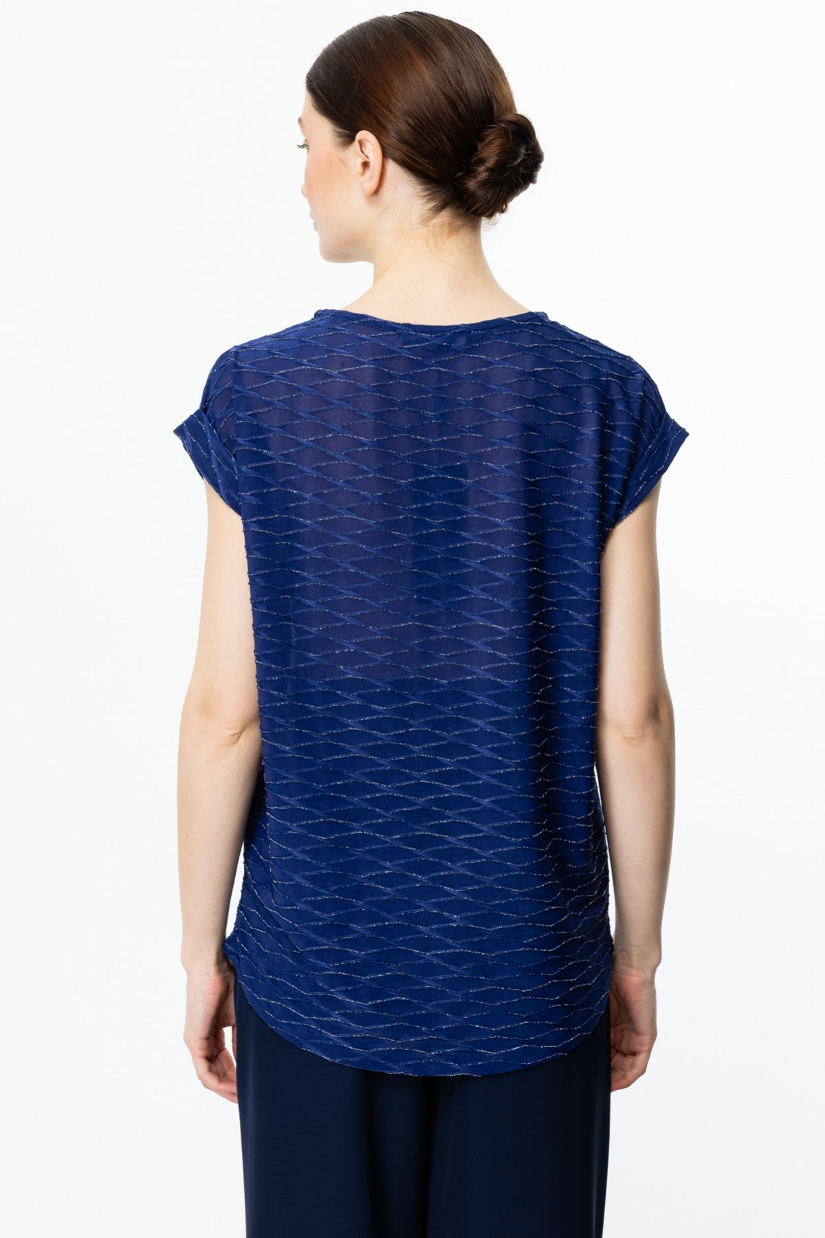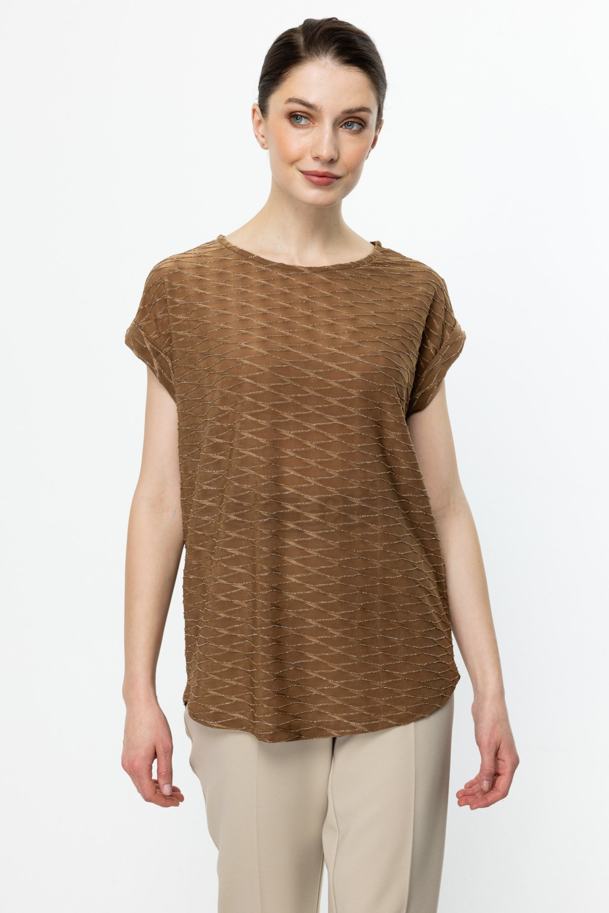 Ürün Özellikleri: Sıfır yaka, kısa kollu, kendinden desenli, simli