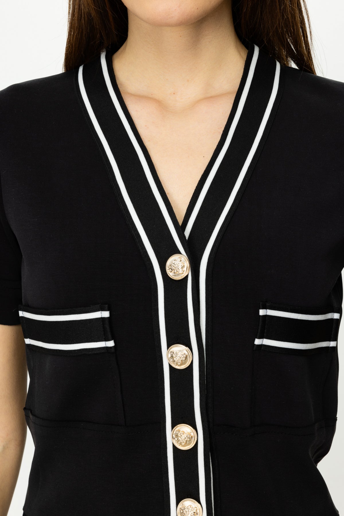 Ürün Özellikleri:V yaka, ribanalı, cepli, kısa kol, düğmeli