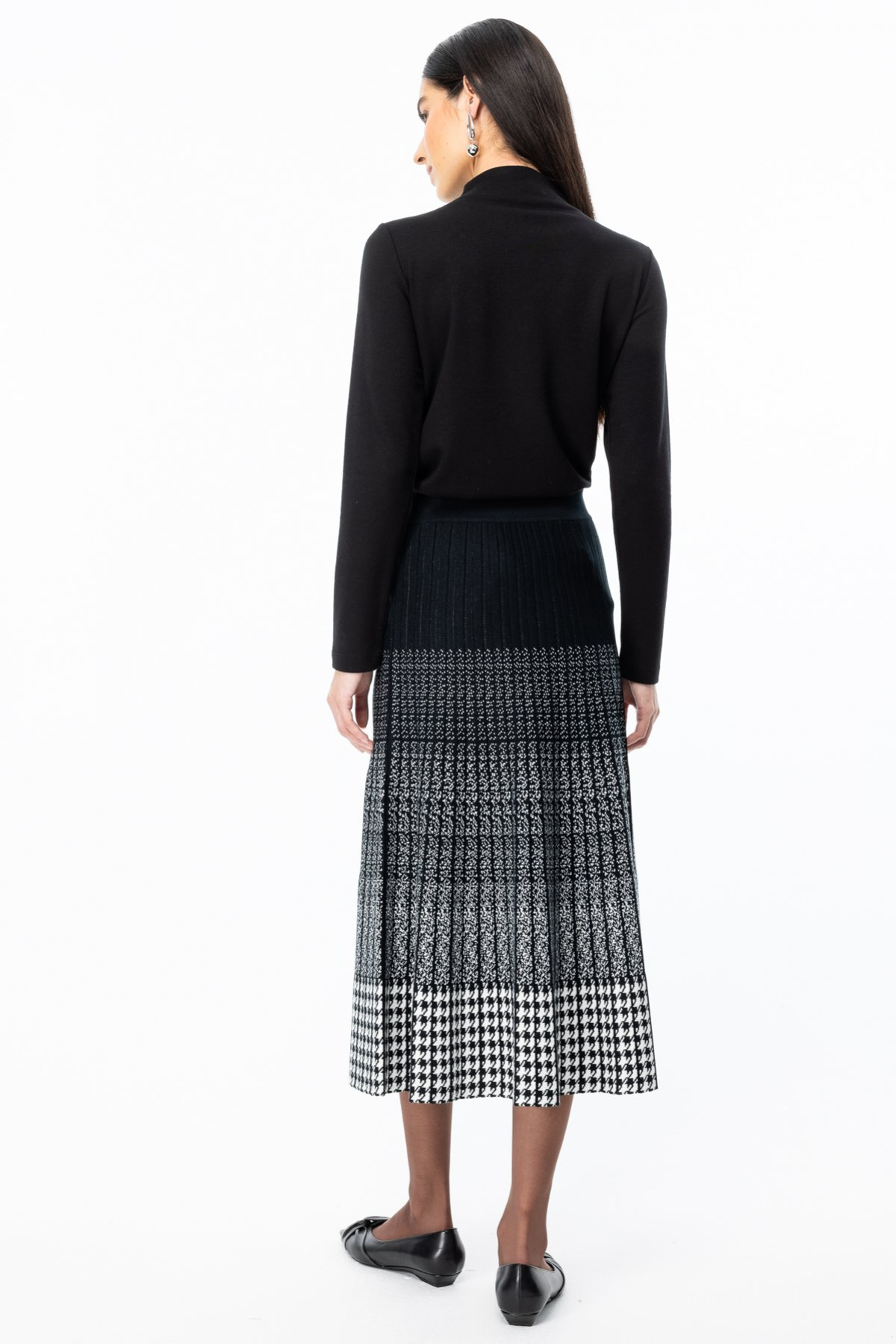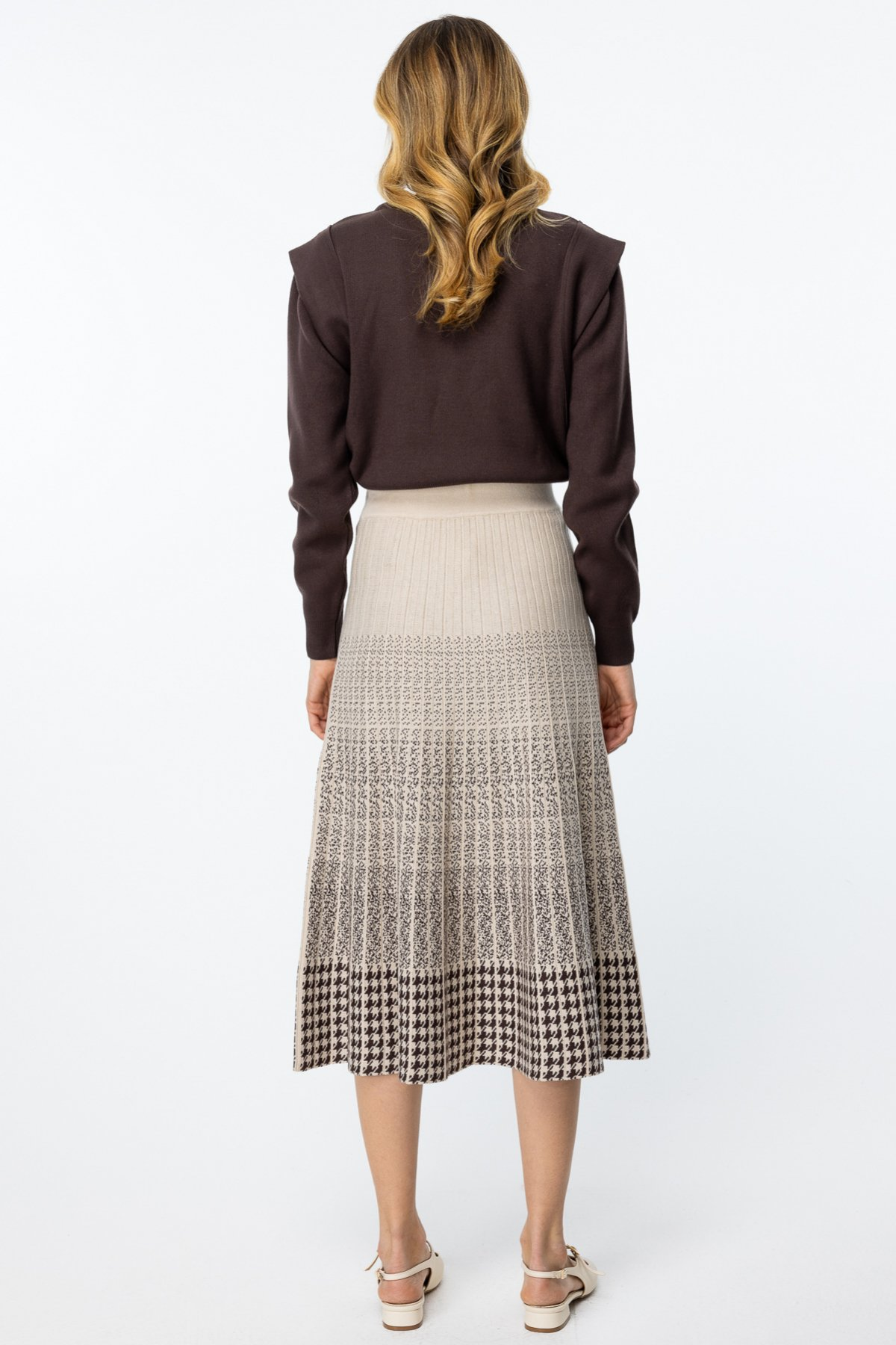 Ürün Bilgisi Desenli, pileli, midi boyÜrün Kalıbı: Tam KalıpÜrün Kalınlığı: KalınÜrün Boyu: 85 cmKumaş İçeriği: %46 modal %40 poliakrilik %14 polyamidÜrün...