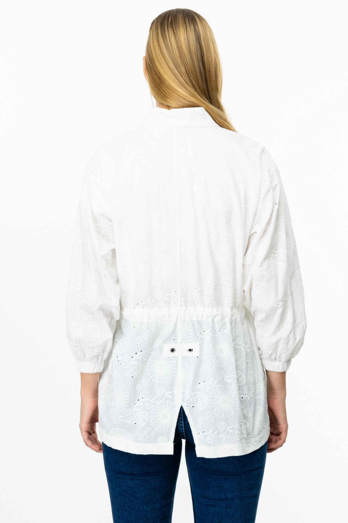 Ürün Özellikleri:İşlemeli, atarsız, yandan cepli, fermaur kapamalı, çıt çıtlı, beli büzgülü