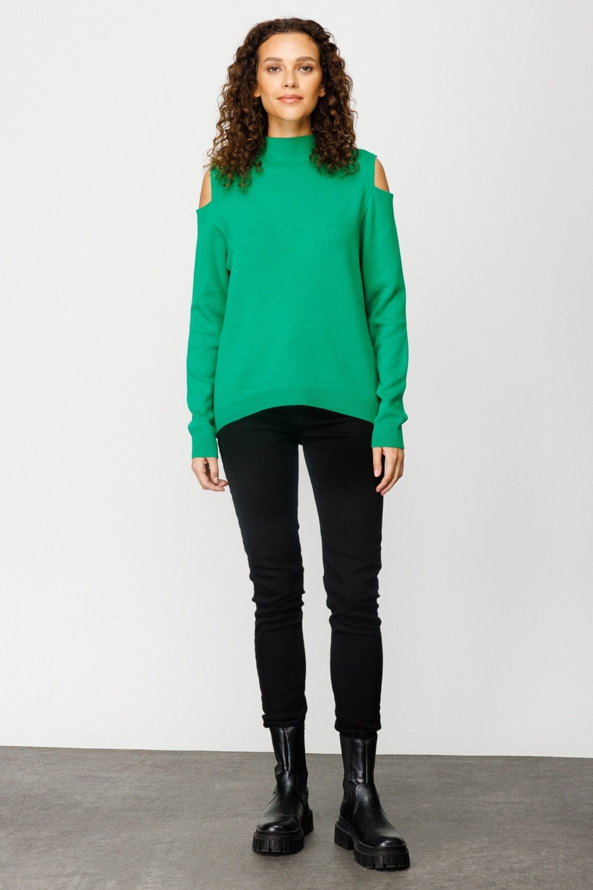 Ürün Özellikleri:; Dik yaka; Triko kumaş; Omzu pencereli; Ürün Kalıbı:Tam Kalıp; Ürün Kalınlığı:Orta; Ürün Boyu:63 cm; Kumaş...