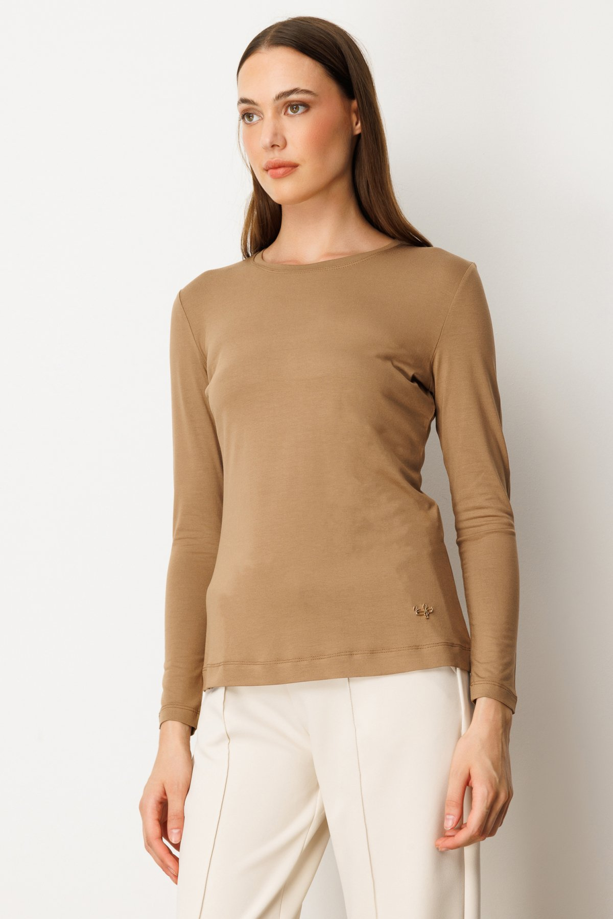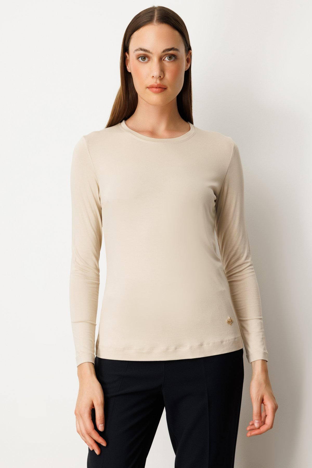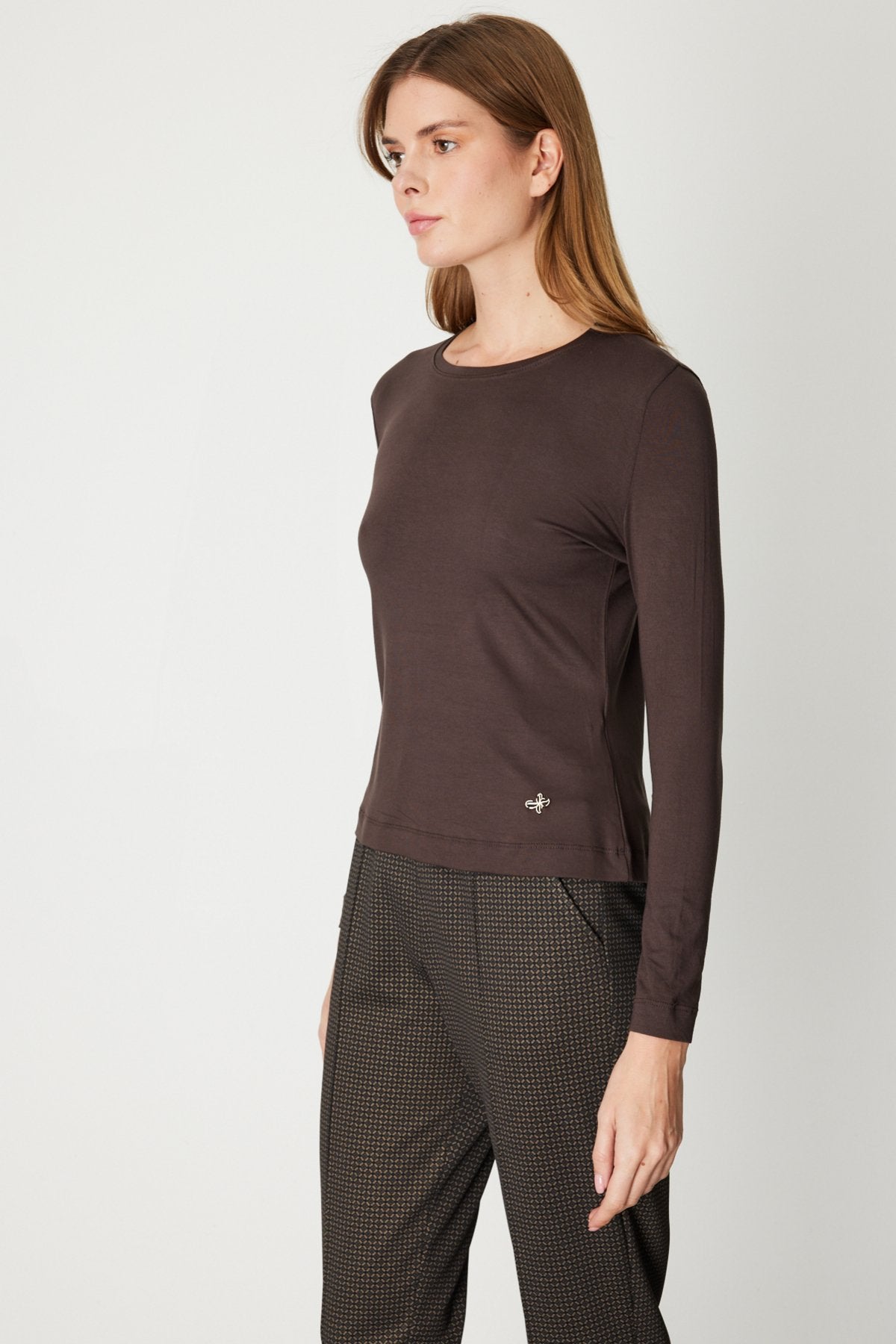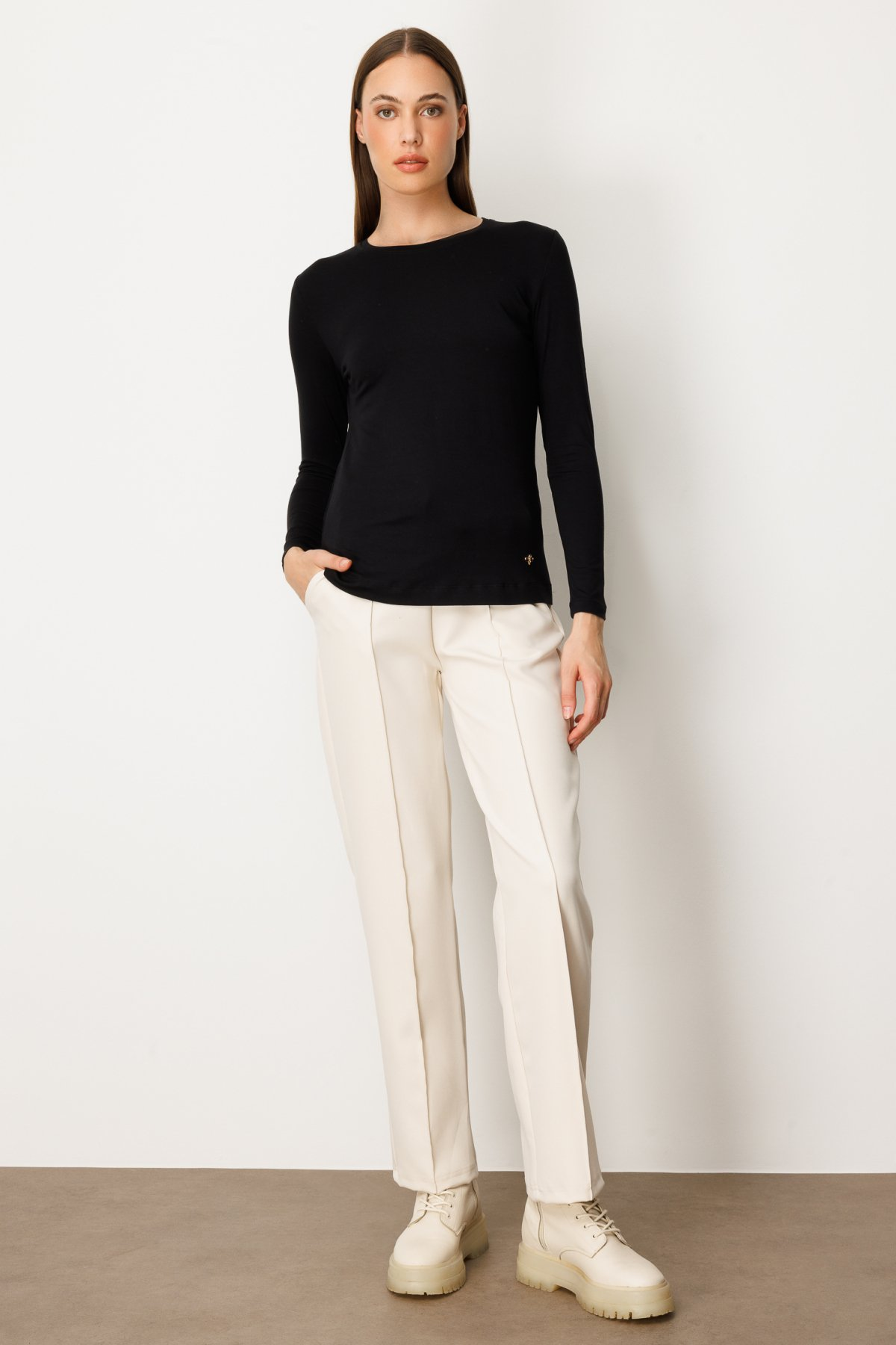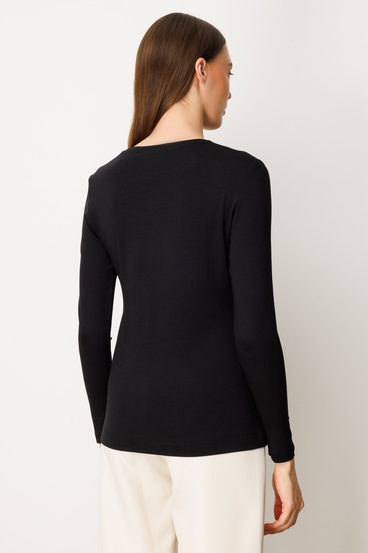 On Metal Aksesuarlı Sıfır Yaka Basic Bluz